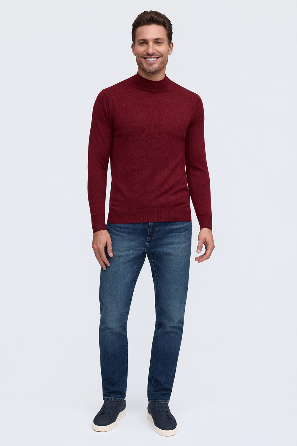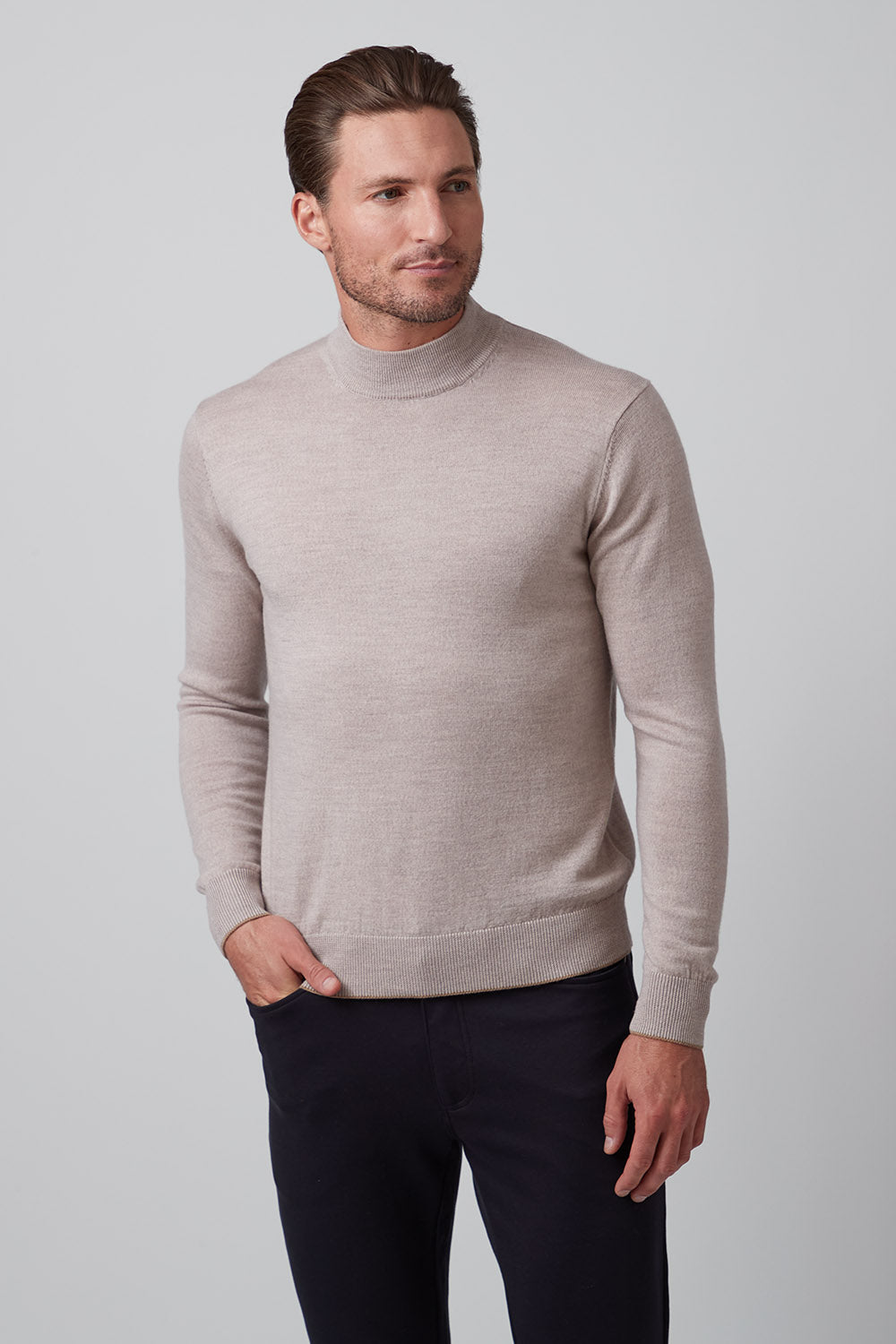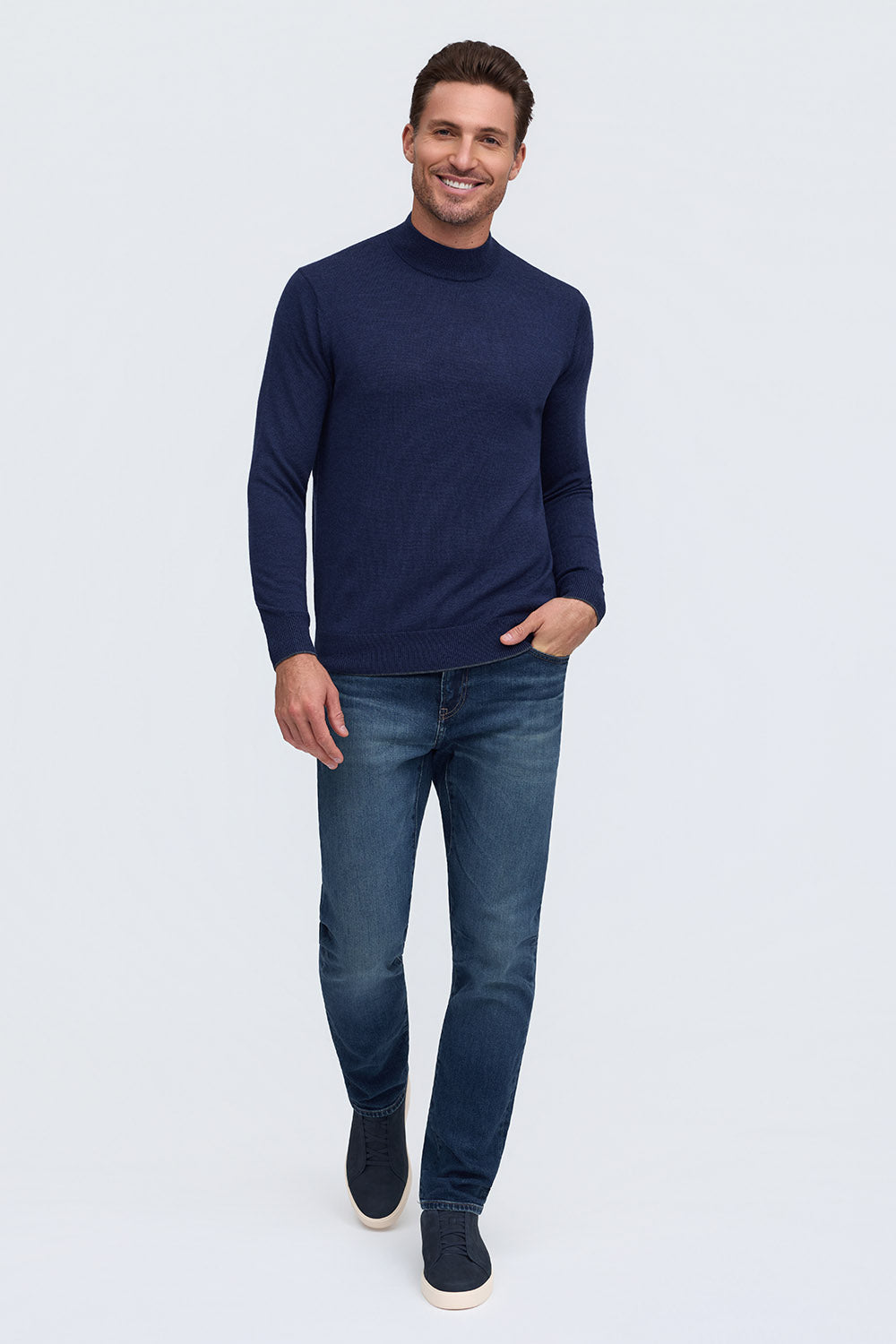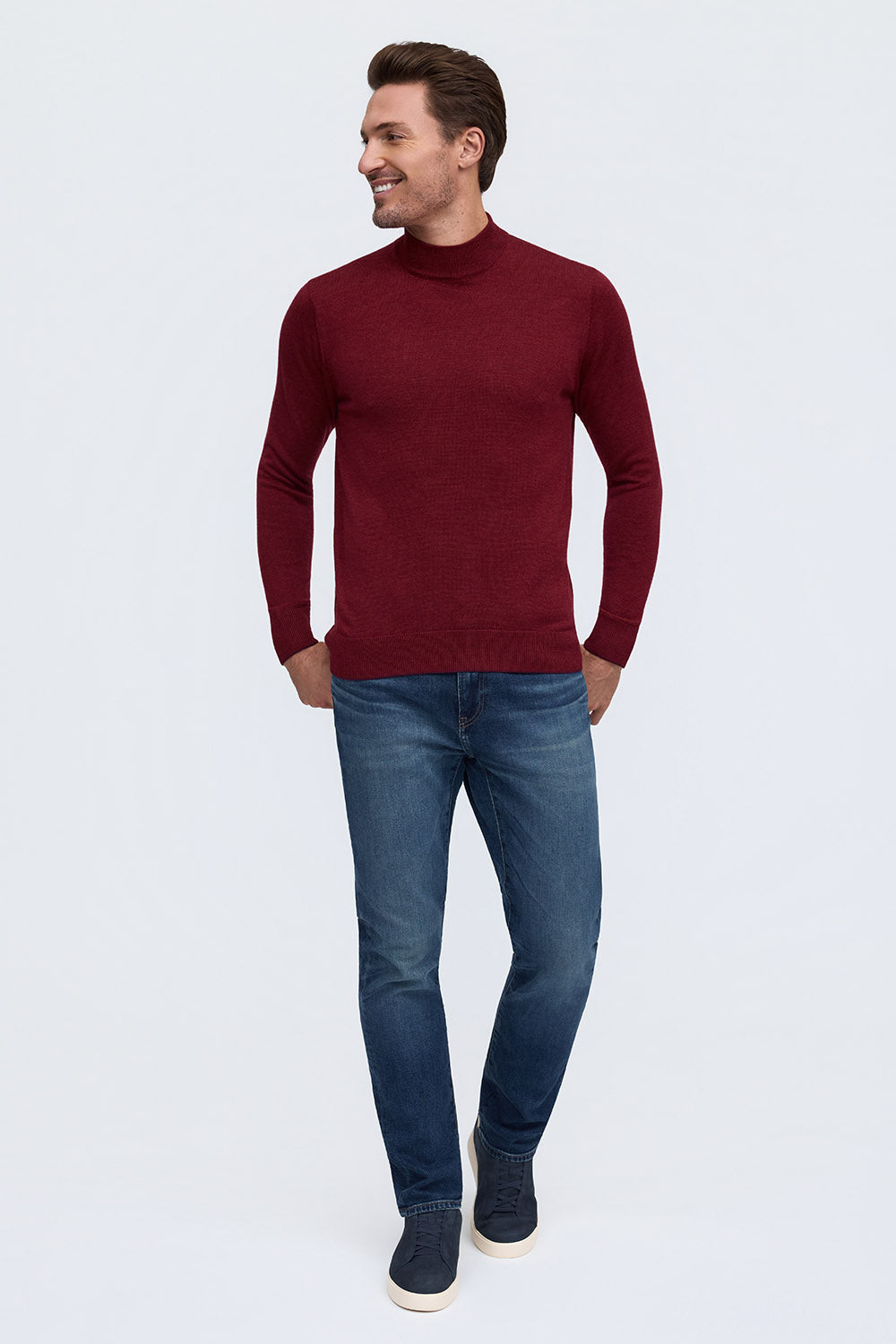 The Bode is our mock neck sweater, a modern classic with a straightforward style, whether you go casual or dressed up. Made from 100% Extrafine Merino Wool, it's comfortable yet refined and a great transition piece into the cooler weather, worn alone or as a layer. Looks great with the Rory or Calvin when you need extra warmth.