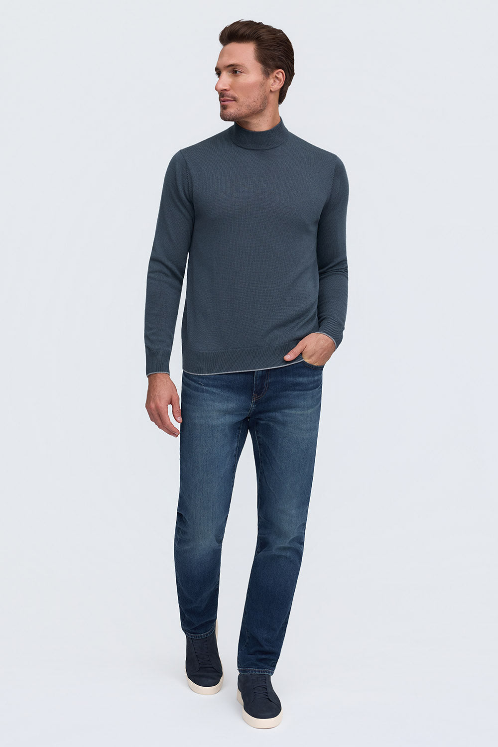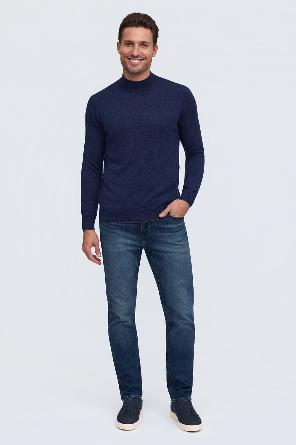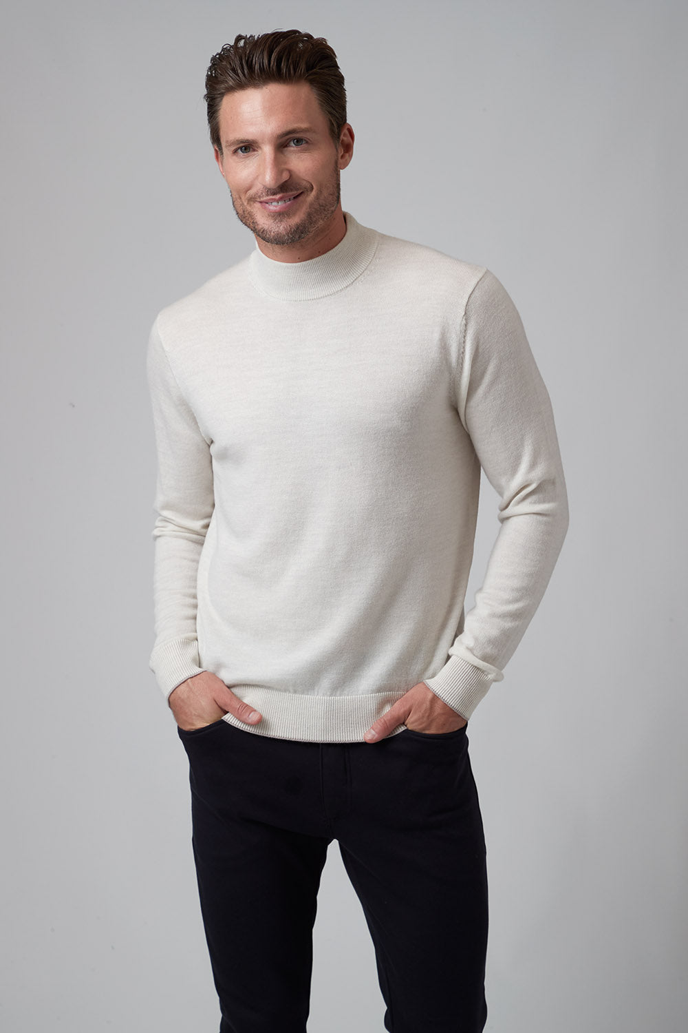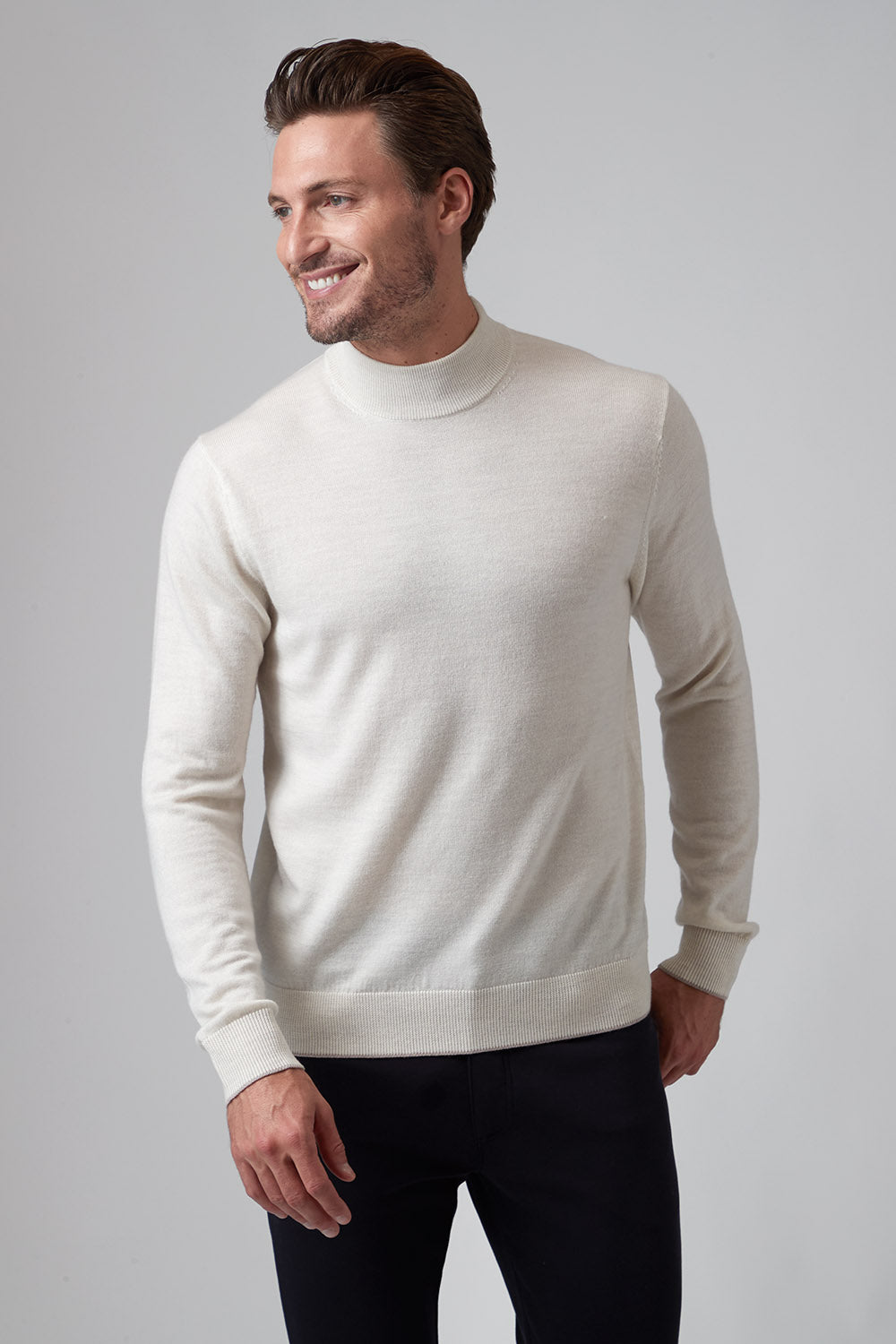 The Bode is our mock neck sweater, a modern classic with a straightforward style, whether you go casual or dressed up. Made from 100% Extrafine Merino Wool, it's comfortable yet refined and a great transition piece into the cooler weather, worn alone or as a layer. Looks great with the Rory or Calvin when you need extra warmth.