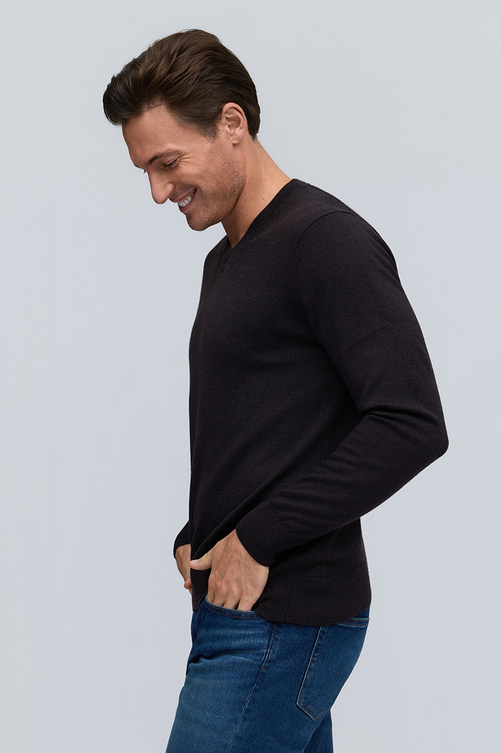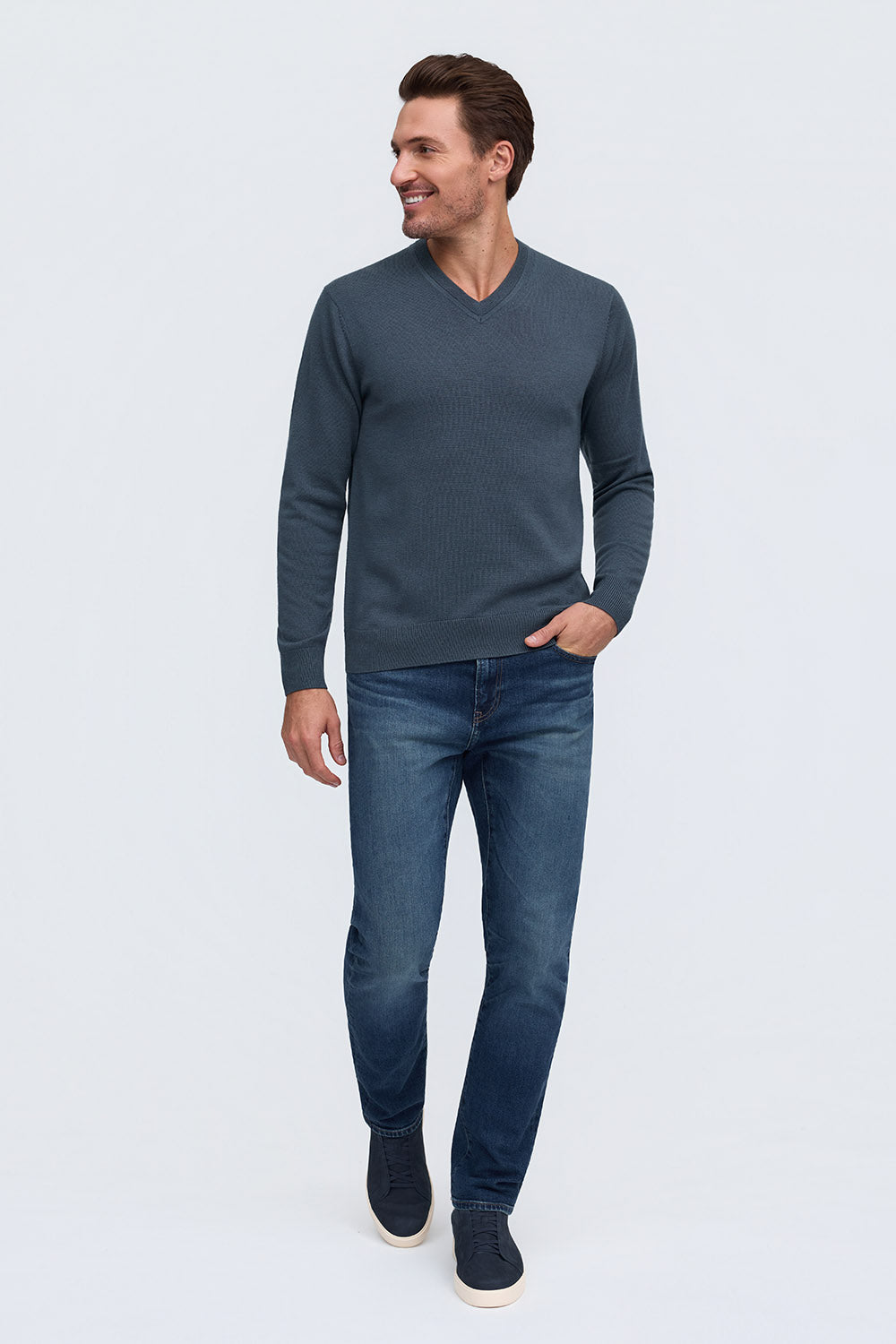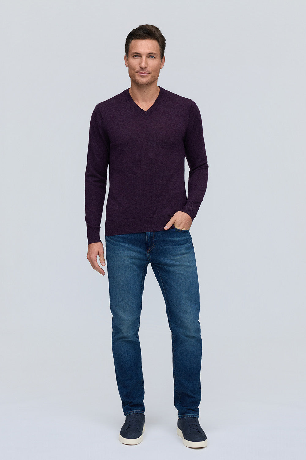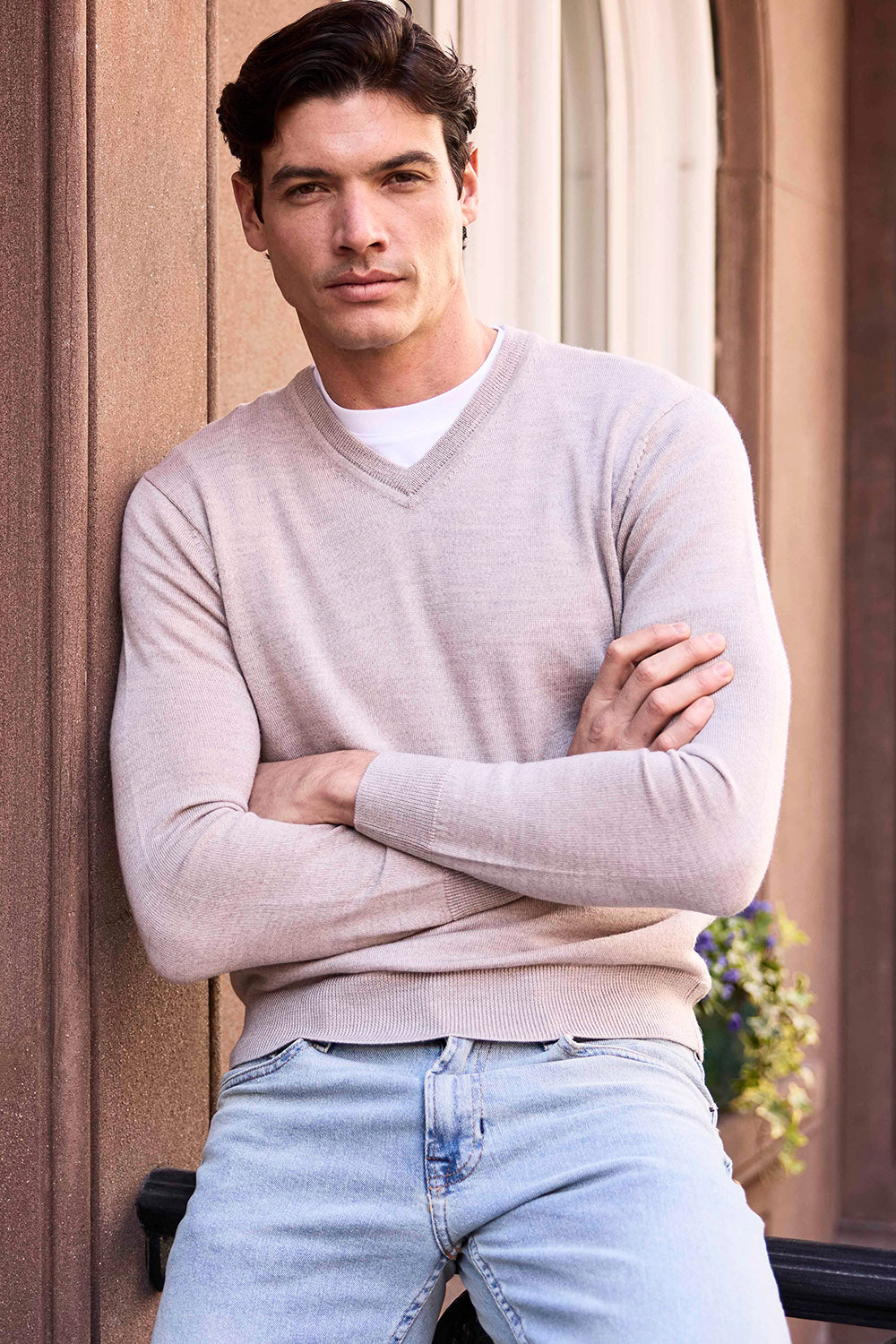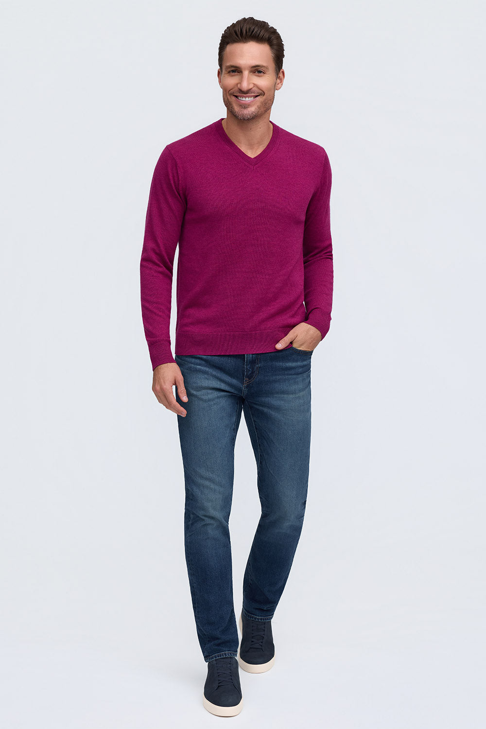 Made from 100% Extrafine Merino Wool this best-selling luxury v-neck sweater has a lightweight feel that is an all-year-round must-have. Available in an array of shades, The Bronson will not only add color to your wardrobe but also a refined sophistication.