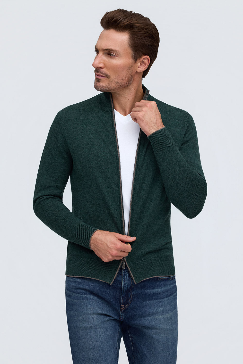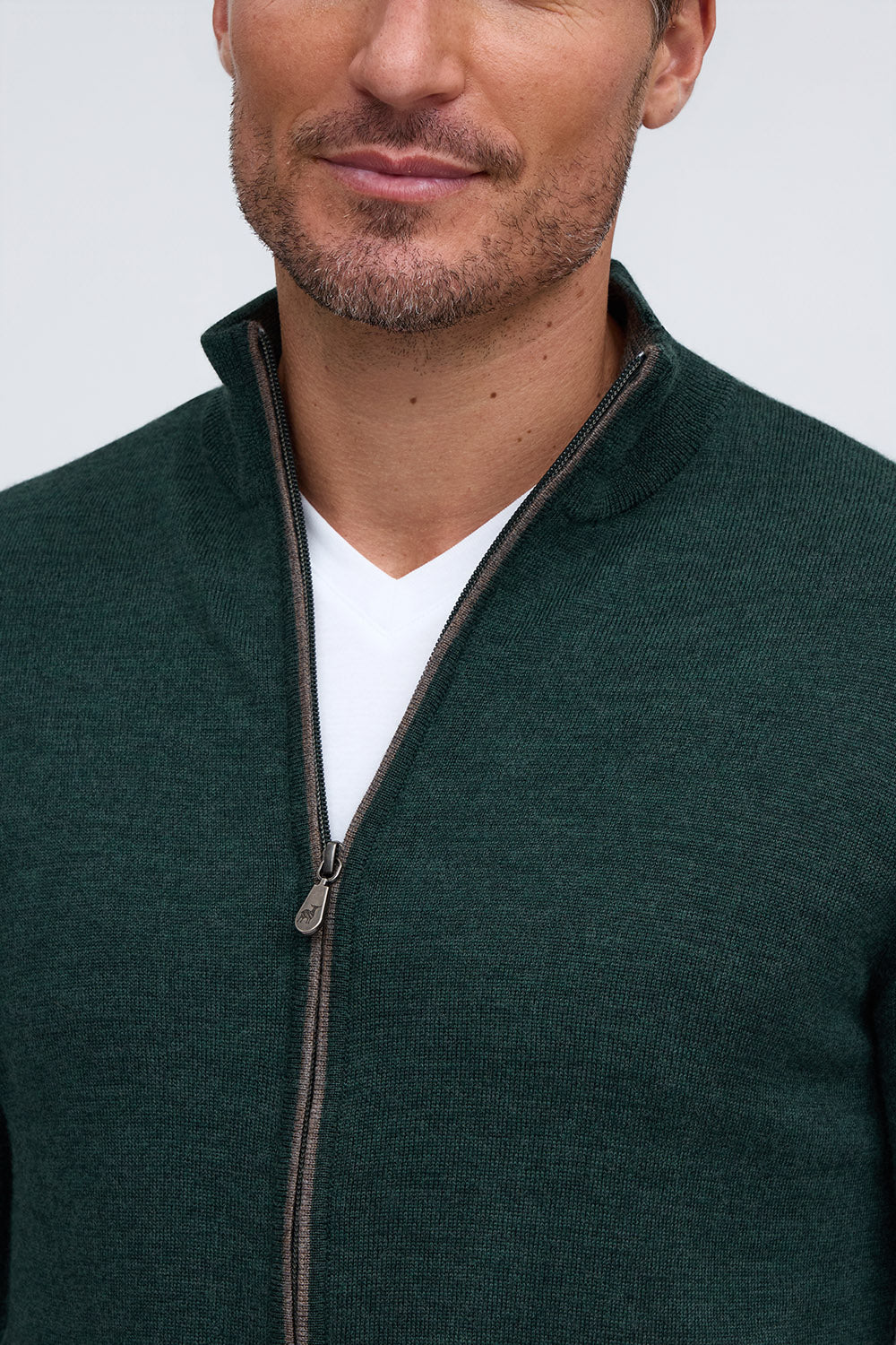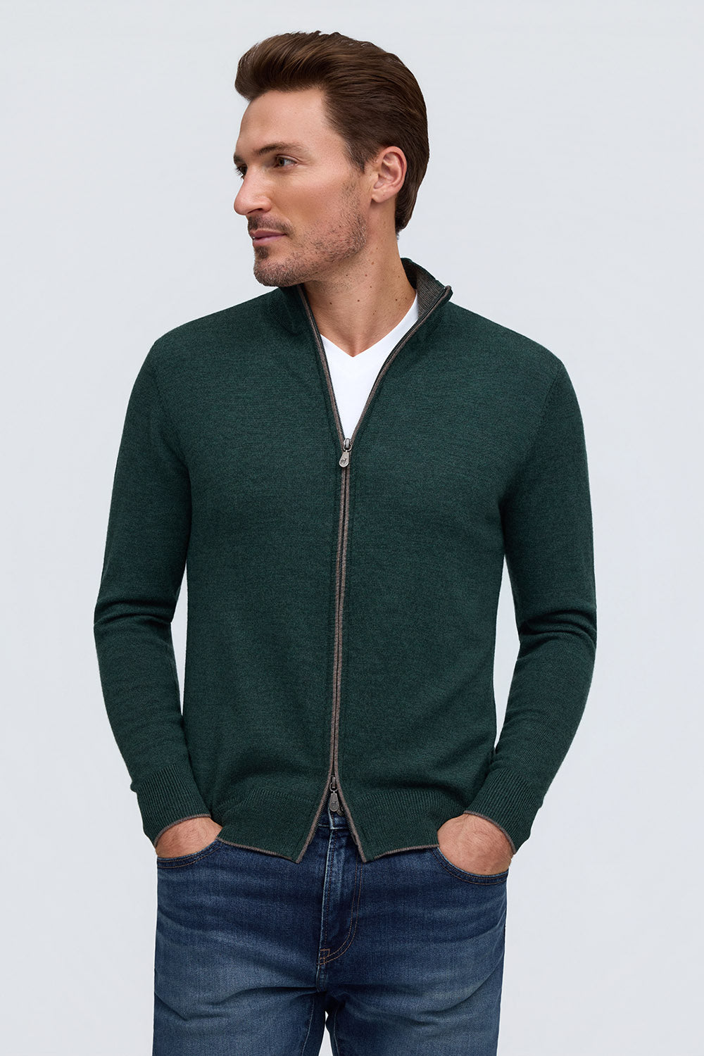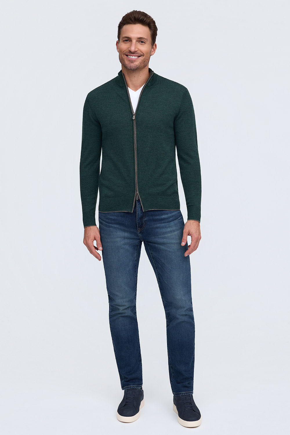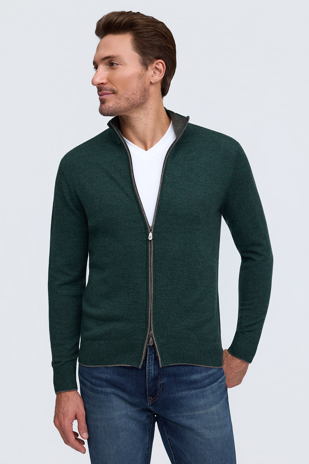 Expertly crafted from high-quality 100% Extrafine Merino Wool, The Matteo is the perfect layering piece to wear from season to season. It pairs perfectly with any of our shirts from the Aqua Cotton Collection. Finished details include tonal trim down the placket, hem, and cuff, with a two-way zip front and mock collar.