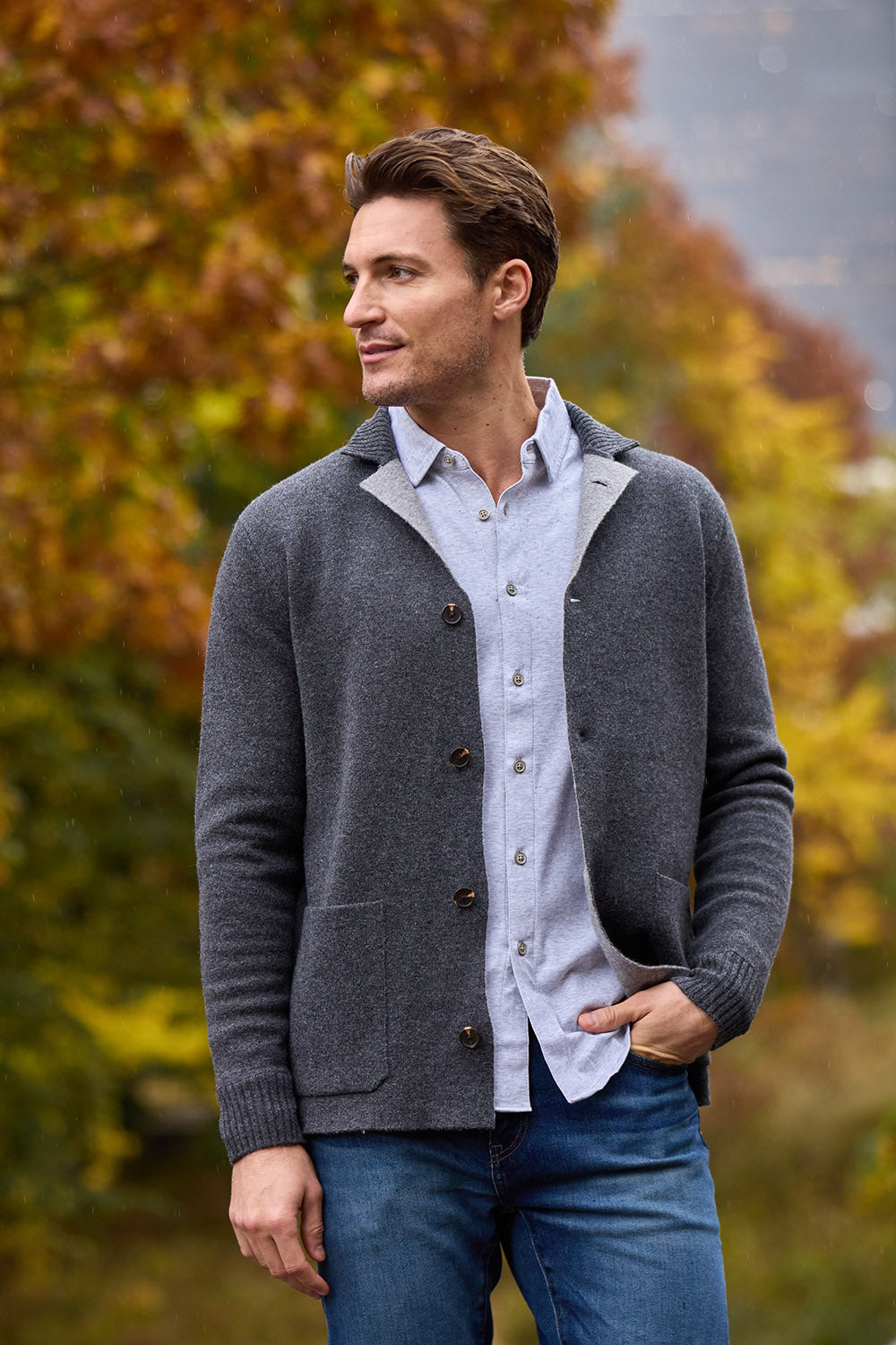 The Kamden, a dignified cashmere blend double-faced jacket, is one-of-a-kind, featuring a button-front placket and patch pockets. Perfect for all seasons and a staple in your wardrobe, The Kamden is ideal for everyday wear, effortlessly combining sophistication, comfort and luxury.