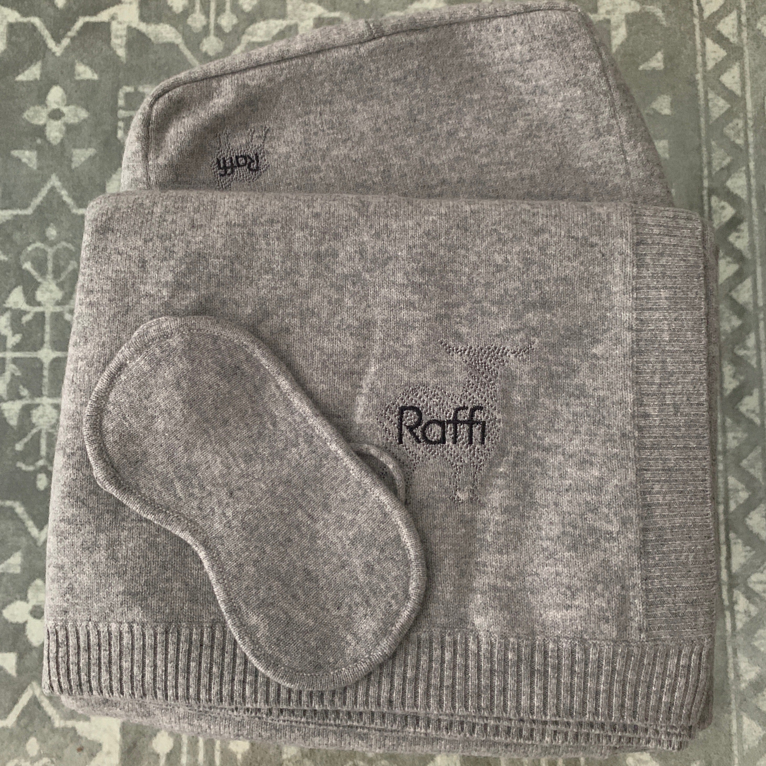 Travel in luxury and comfort. Our 100% cashmere travel pack comes with an eye mask, a blanket (58 1/2" x 36 1/4") and case that perfectly fits an airplane pillow. The travel pack is a perfect gift to yourself or a loved one to make every flight as enjoyable and luxurious as possible.