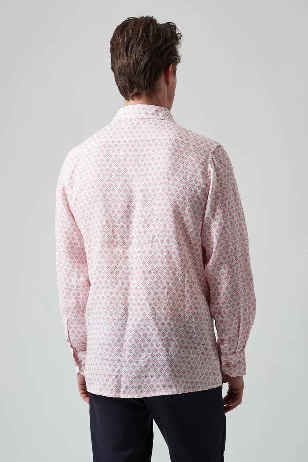 Embrace innovation and style with our uniquely designed 100% linen shirt, where the metaphor "Think outside the box" comes to life. The KENNON features a distinctive jacquard print in a rich berry color, setting it apart from the ordinary and inviting you to break free from the conventional. Versatile and timeless, our premium linen shirt is a reliable choice for staying cool in warm weather. At the same time, the fabric's soft touch adds an extra layer of comfort to your everyday attire.