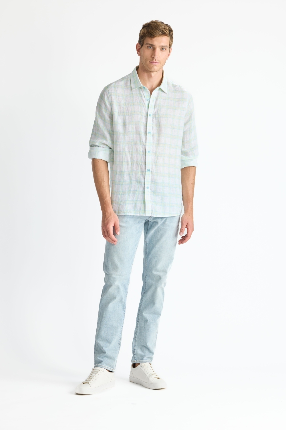 In time for Spring, The Kingston is our classic plaid button-down shirt designed to elevate your wardrobe. Crafted from breathable linen, it ensures a comfortable and airy feel, making it the perfect choice for warmer days. Its versatility shines through effortlessly – pair it with jeans or shorts for a laid-back, casual vibe, or wear it with slacks for a more polished look.