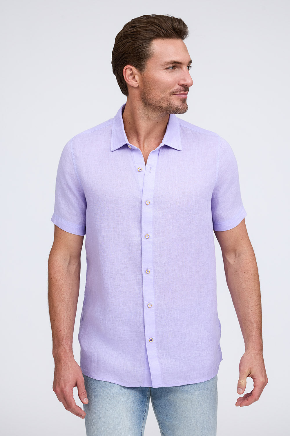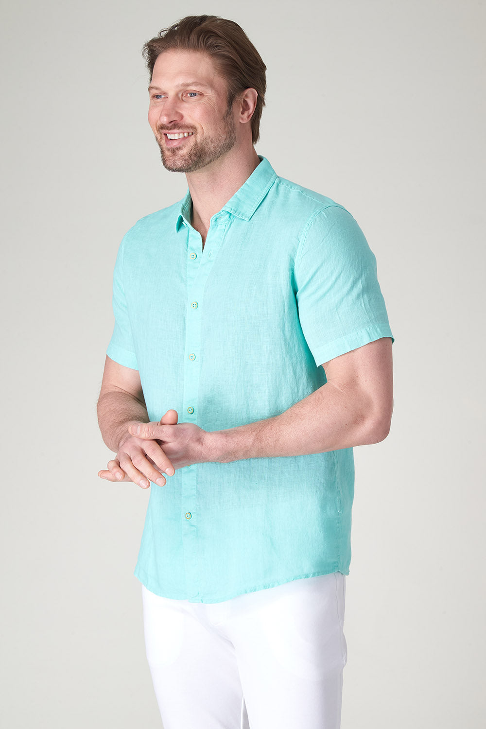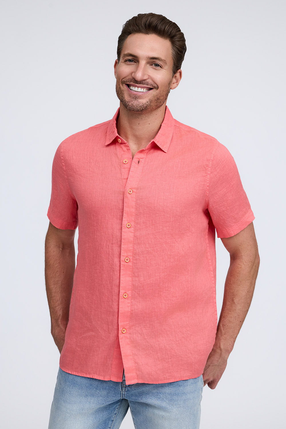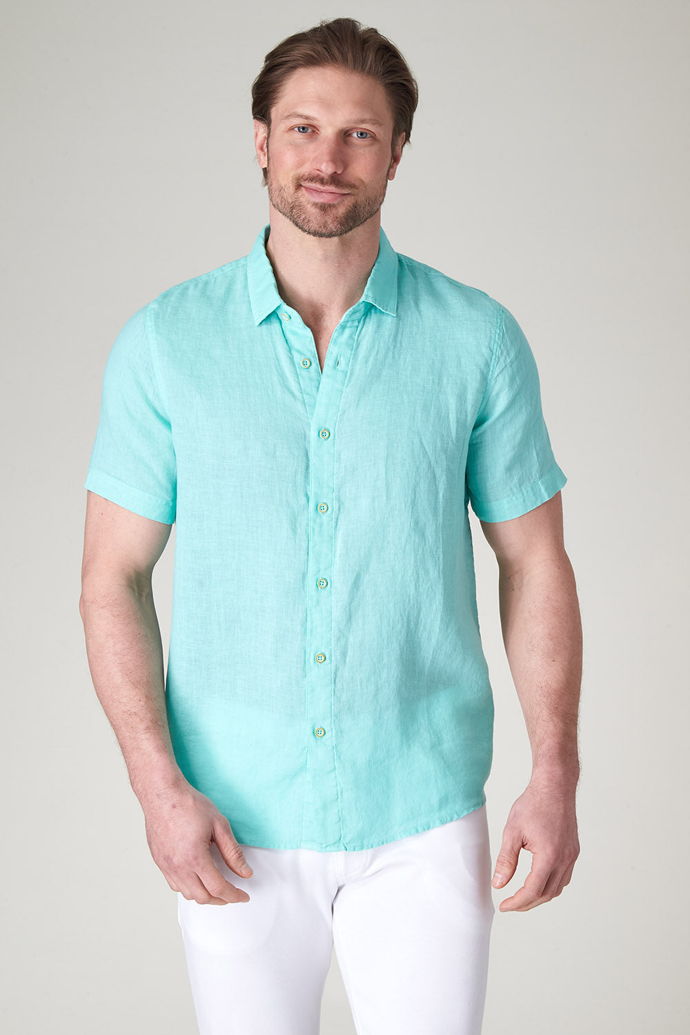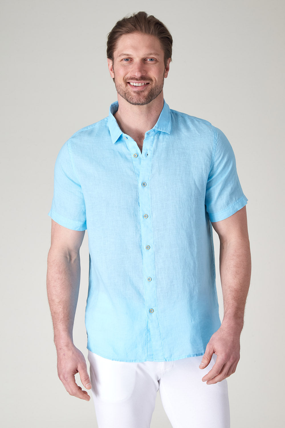 Get that laid-back, breezy feeling when you slip on The Bryce, our sun-baked 100% pure linen shirt. This easy-to-care, easy-to-wear shirt maintains its shape, color, and comfortable feel, making it the perfect shirt for wherever the summer takes you. Tropical inspired color palate.