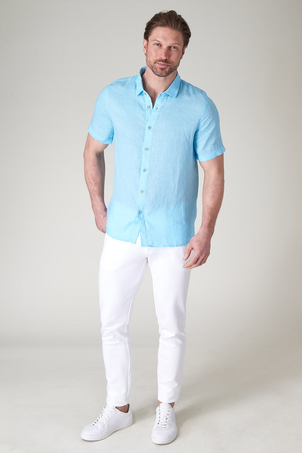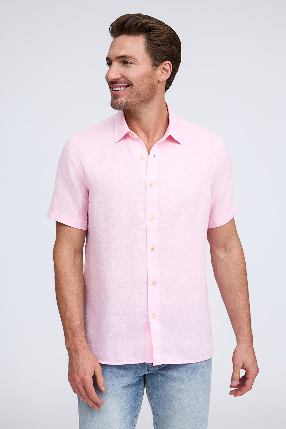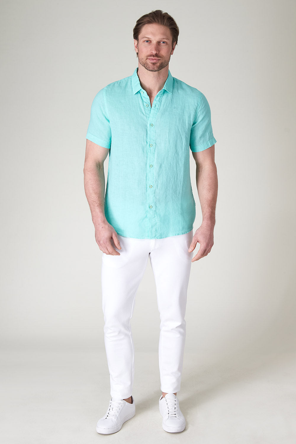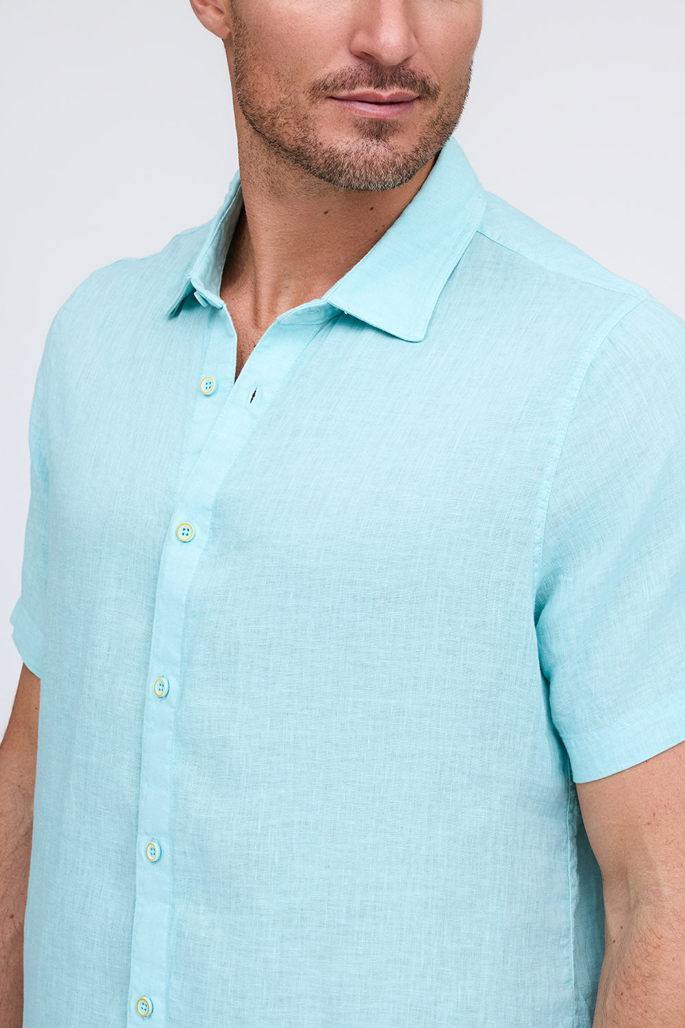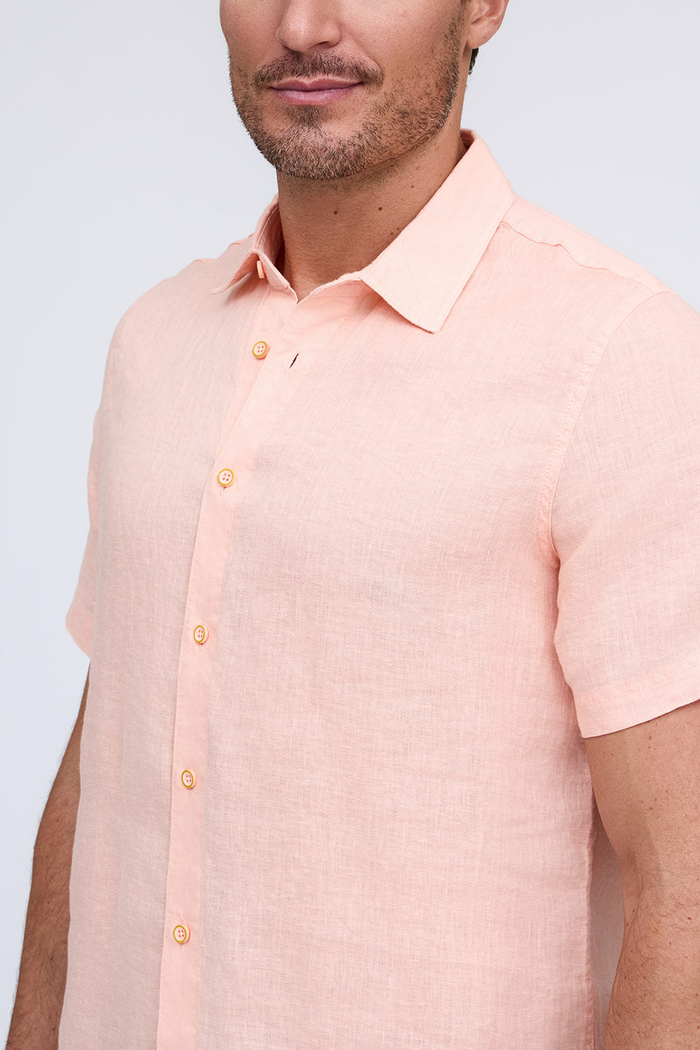 Get that laid-back, breezy feeling when you slip on The Bryce, our sun-baked 100% pure linen shirt. This easy-to-care, easy-to-wear shirt maintains its shape, color, and comfortable feel, making it the perfect shirt for wherever the summer takes you. Tropical inspired color palate.