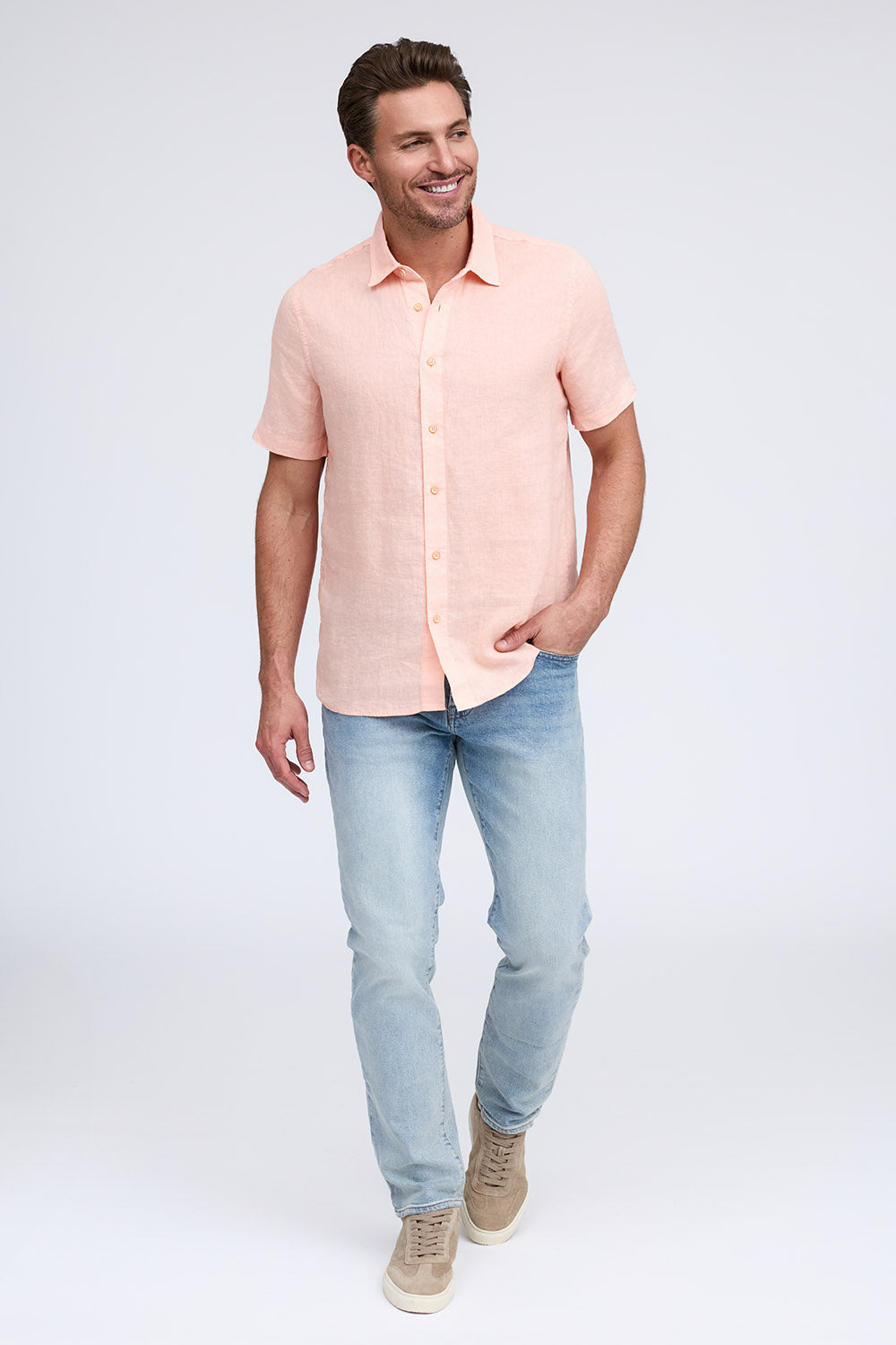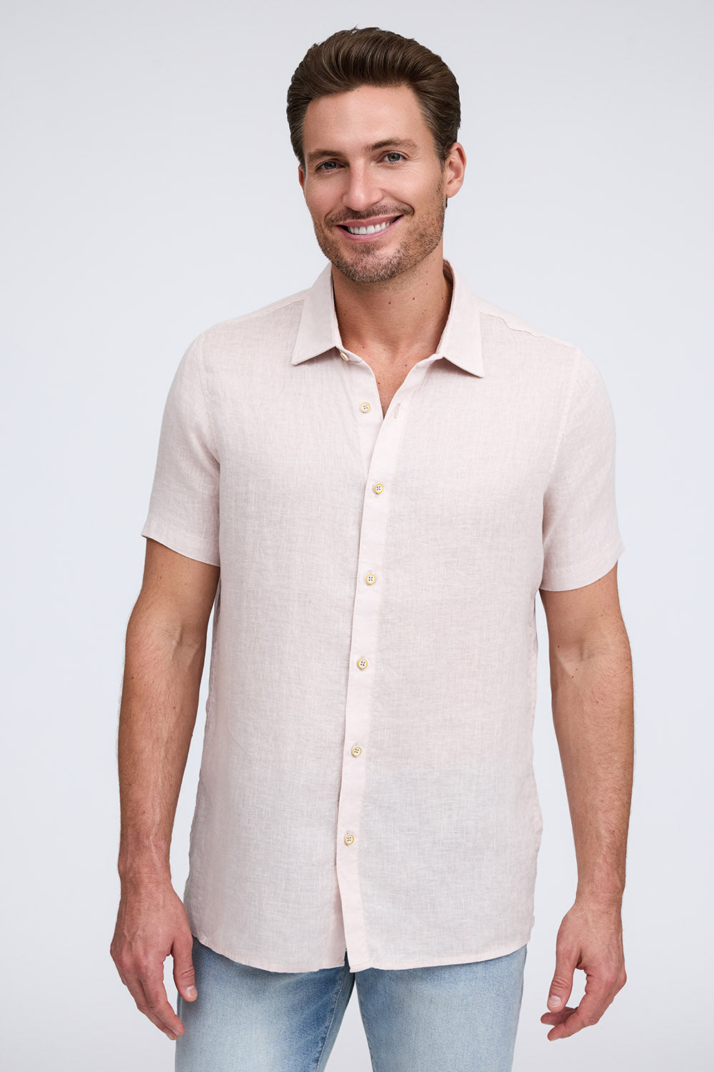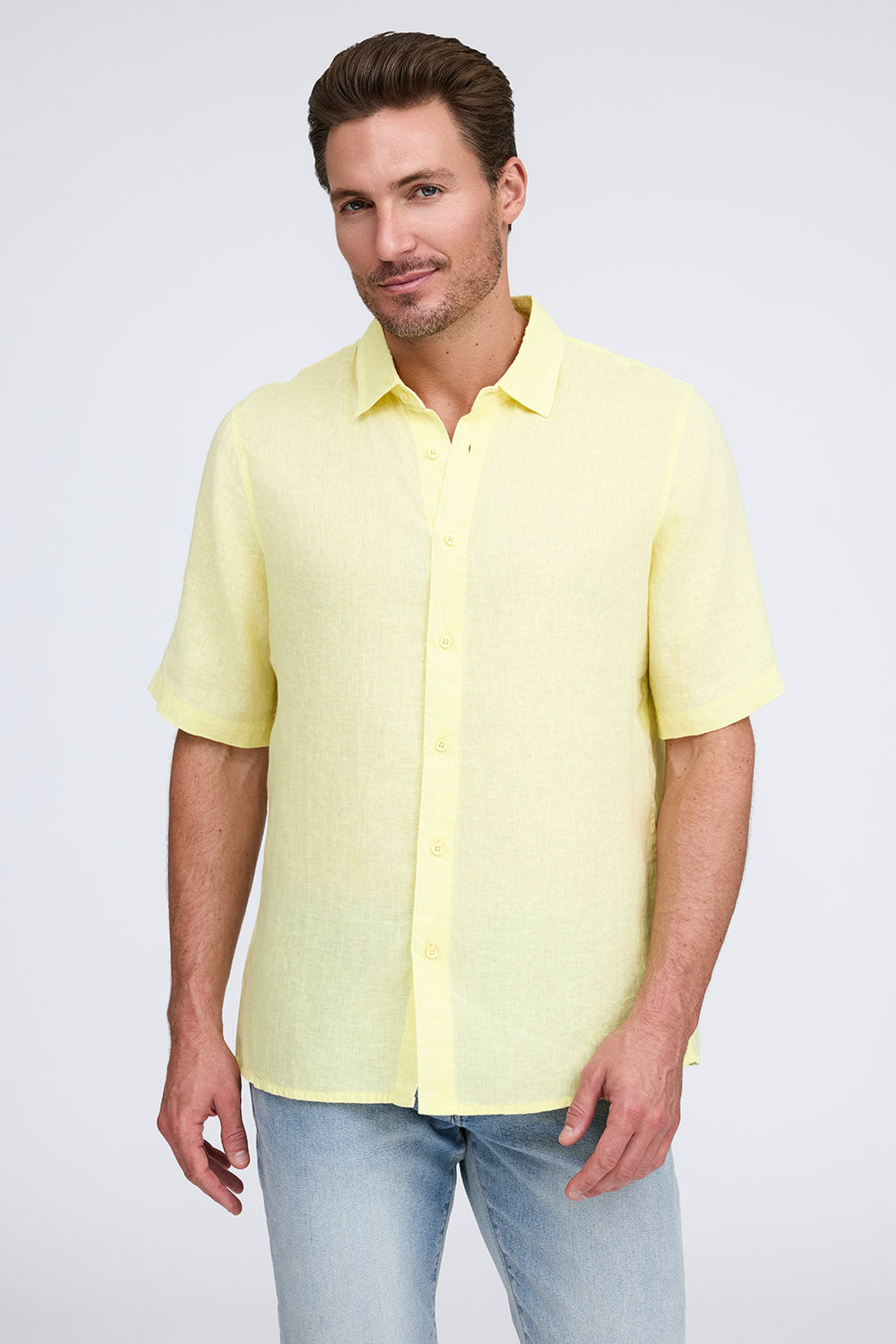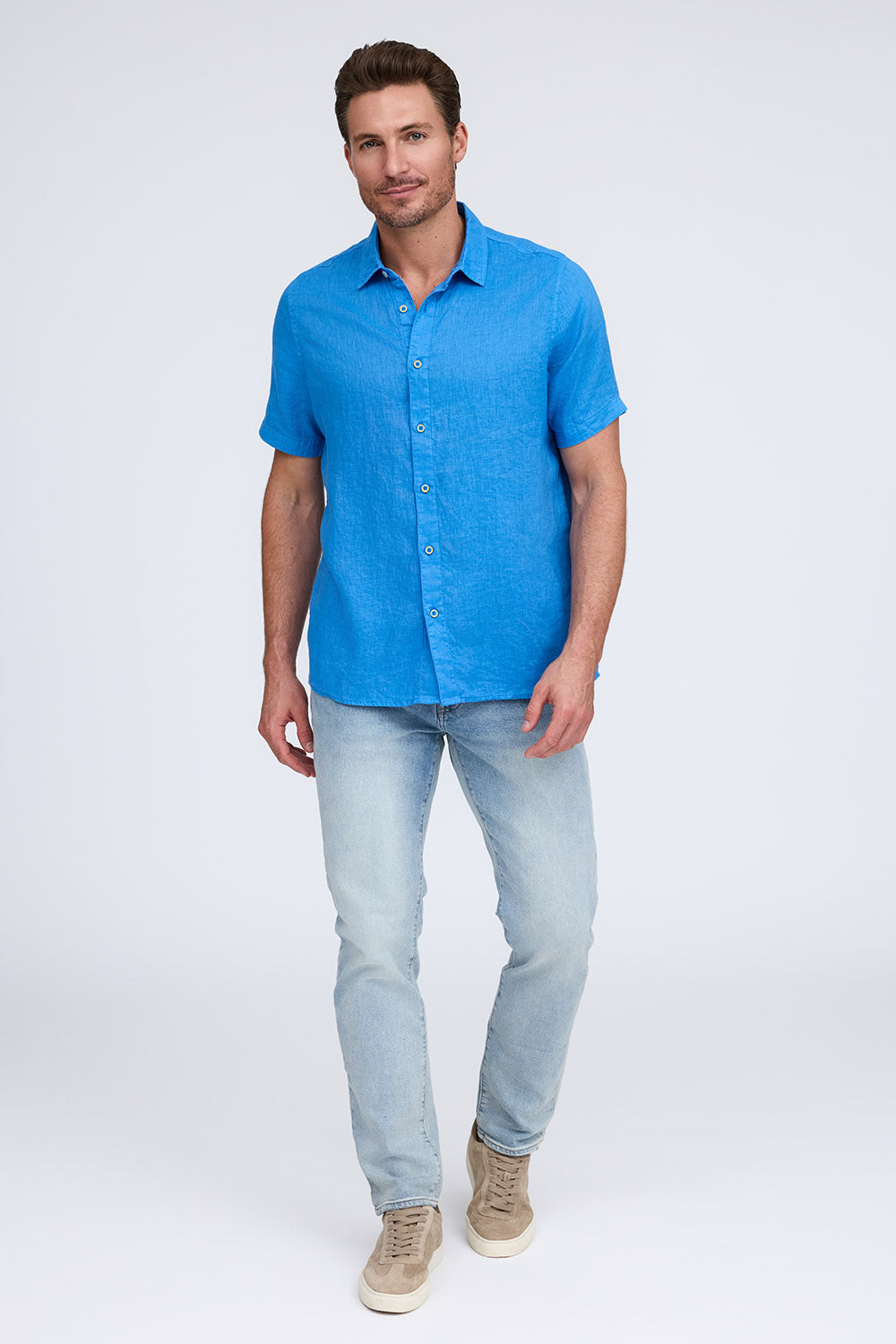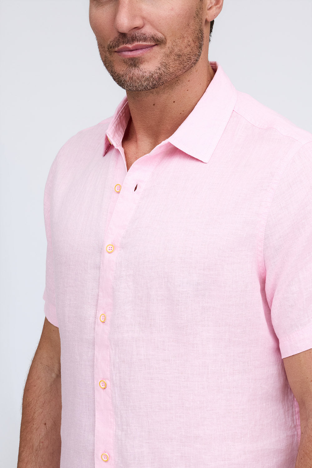 Get that laid-back, breezy feeling when you slip on The Bryce, our sun-baked 100% pure linen shirt. This easy-to-care, easy-to-wear shirt maintains its shape, color, and comfortable feel, making it the perfect shirt for wherever the summer takes you. Tropical inspired color palate.
