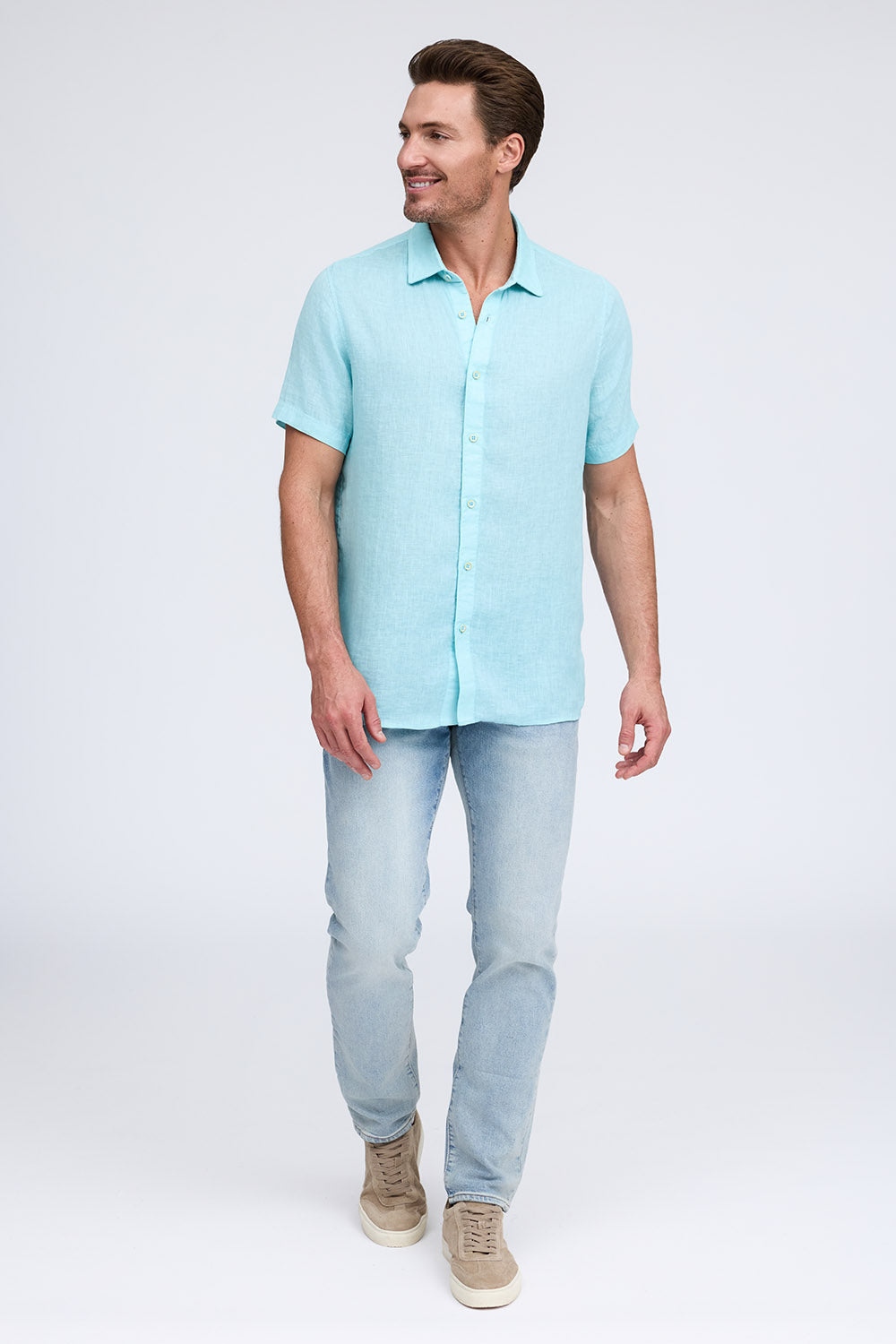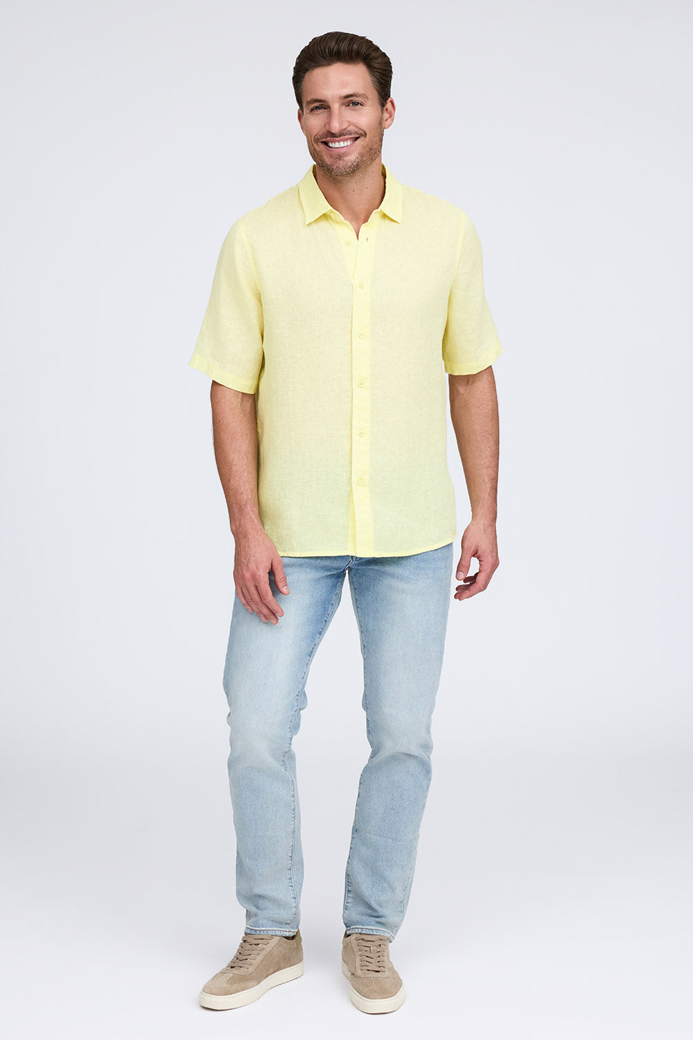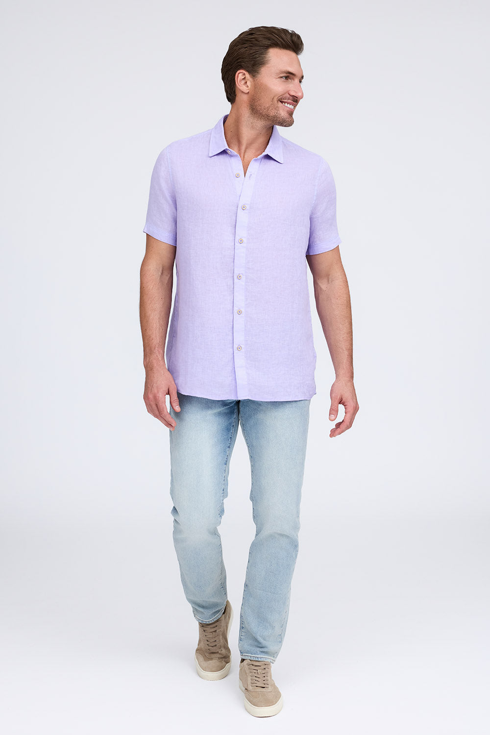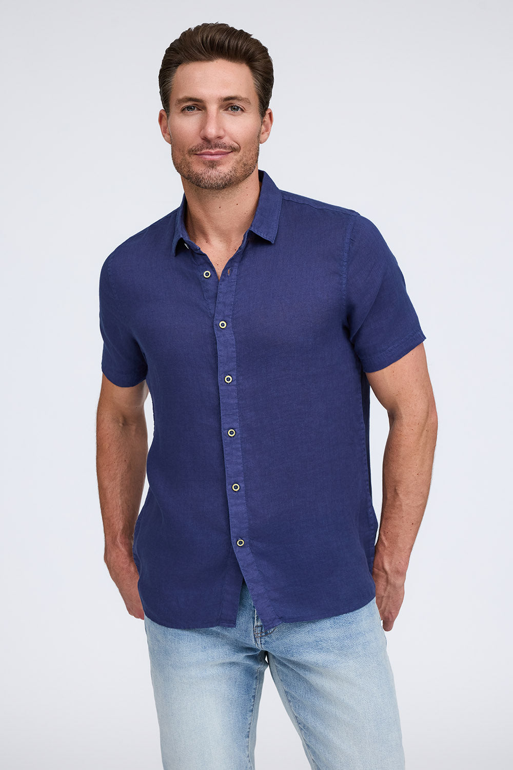 Get that laid-back, breezy feeling when you slip on The Bryce, our sun-baked 100% pure linen shirt. This easy-to-care, easy-to-wear shirt maintains its shape, color, and comfortable feel, making it the perfect shirt for wherever the summer takes you. Tropical inspired color palate.
