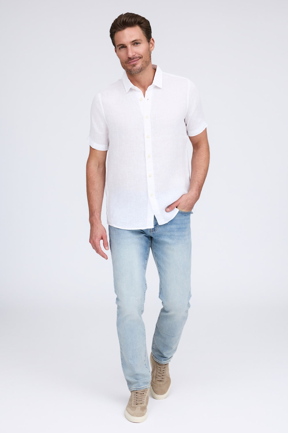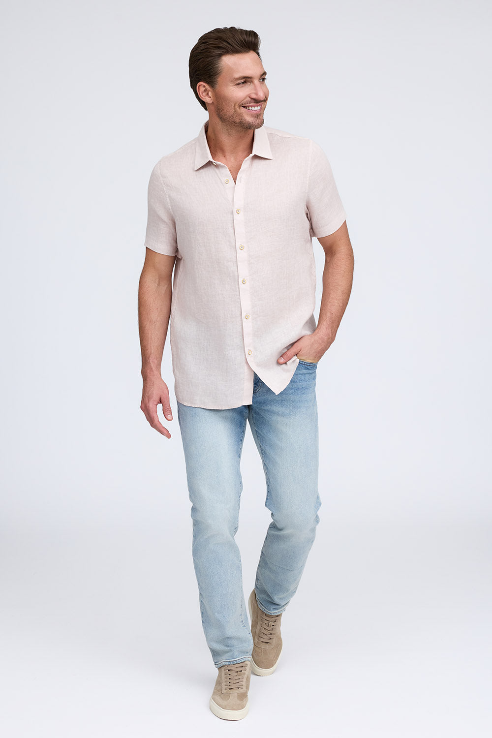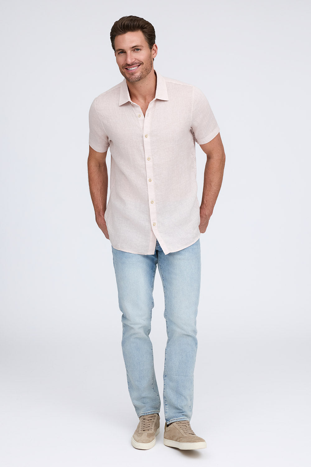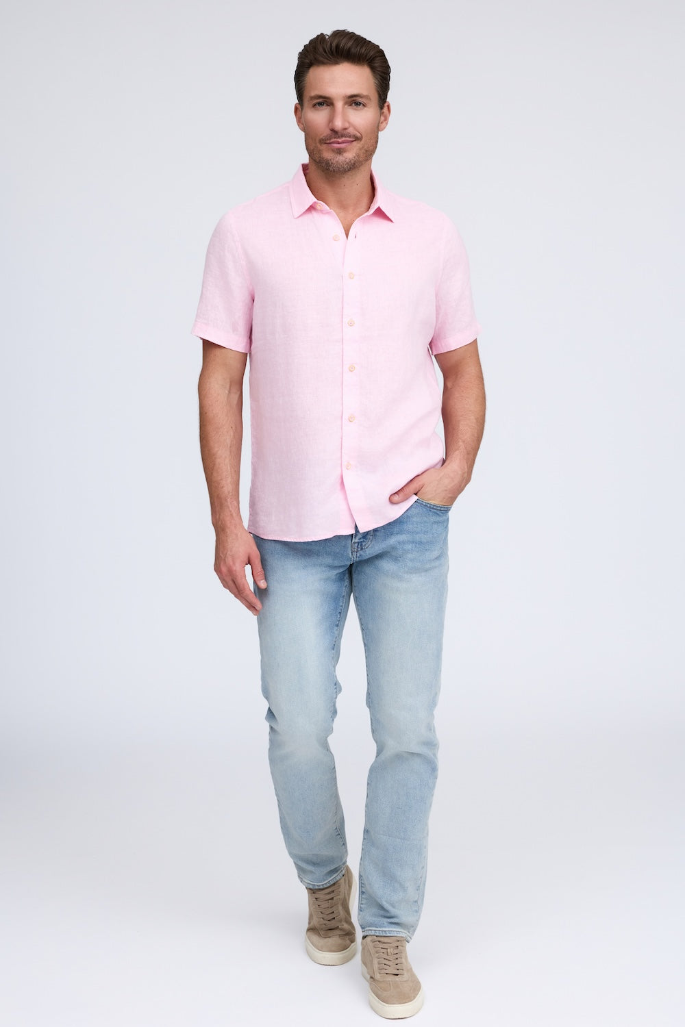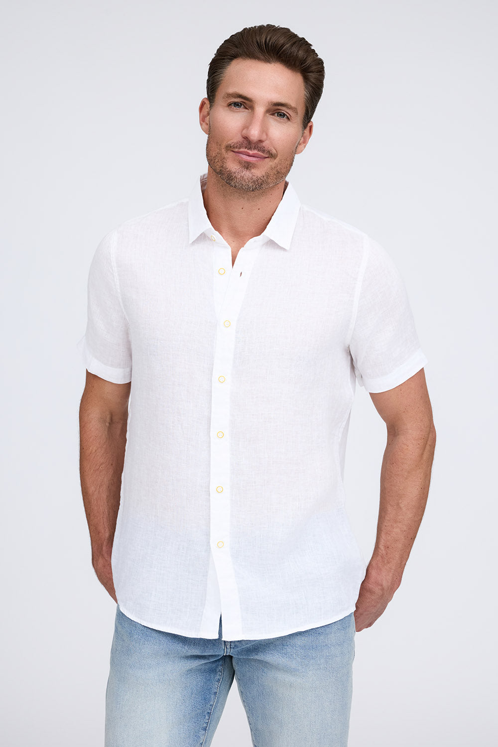 Get that laid-back, breezy feeling when you slip on The Bryce, our sun-baked 100% pure linen shirt. This easy-to-care, easy-to-wear shirt maintains its shape, color, and comfortable feel, making it the perfect shirt for wherever the summer takes you. Tropical inspired color palate.