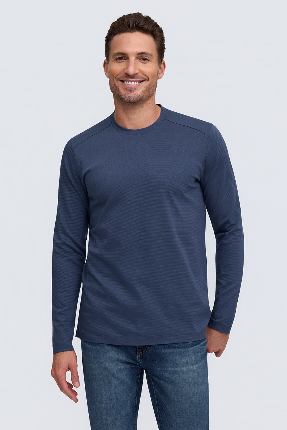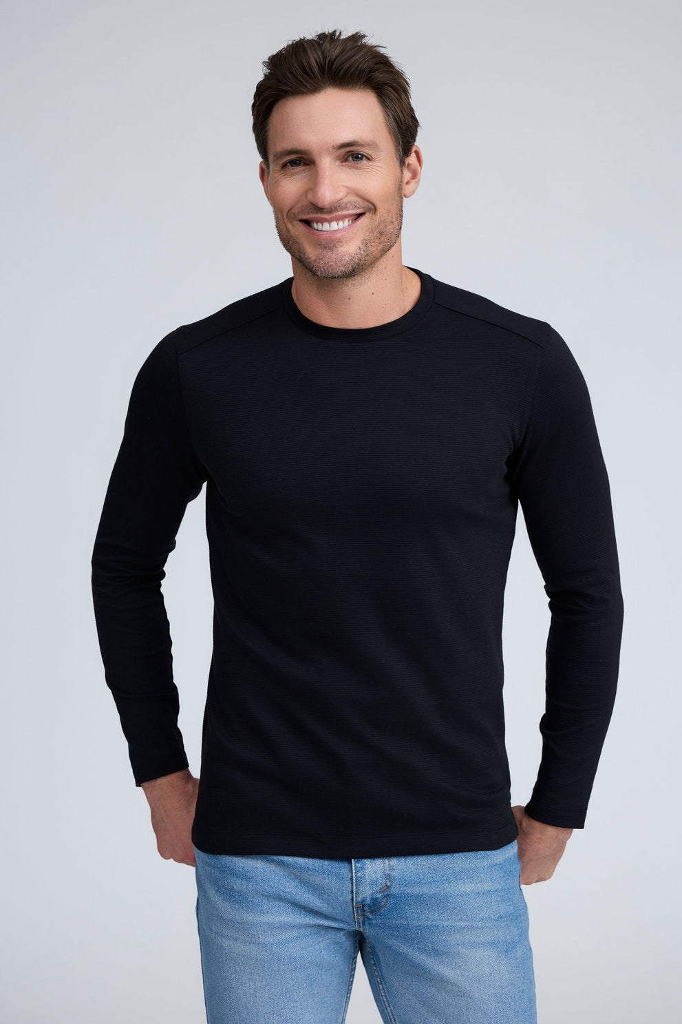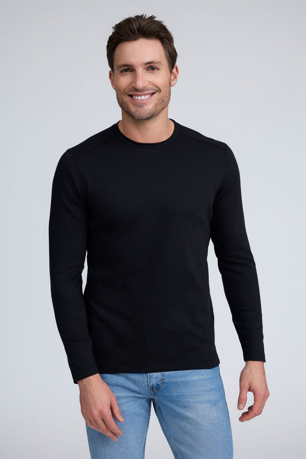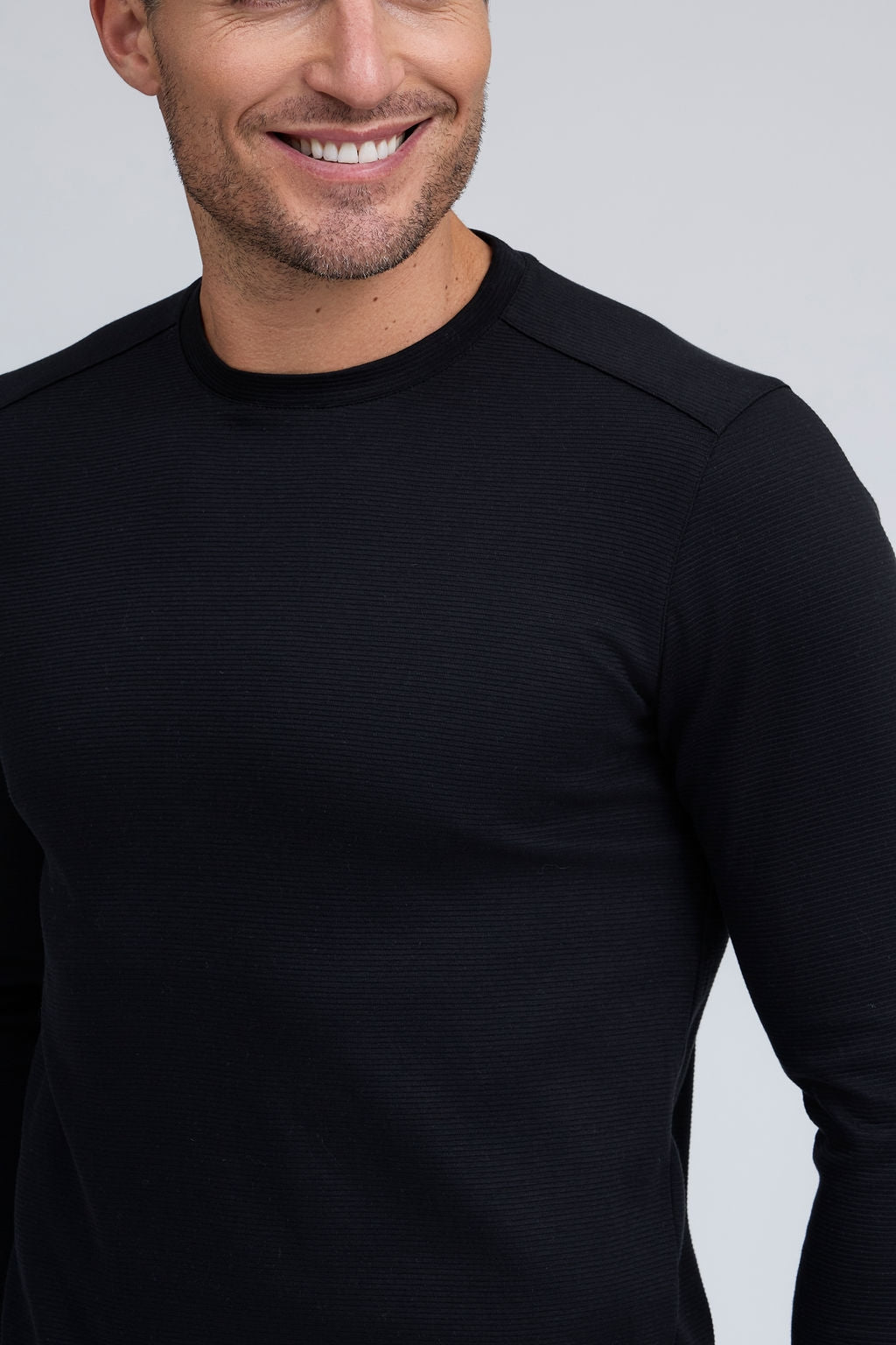 Move with confidence in The Kai, our essential long-sleeve crew neck designed with subtle tonal horizontal stripes for a refined, modern look. Whether worn solo or layered on cooler days, this versatile piece offers the perfect blend of comfort and sophistication.