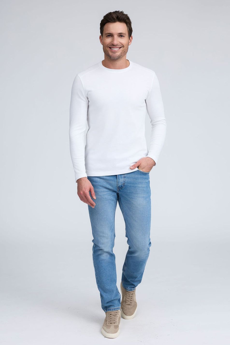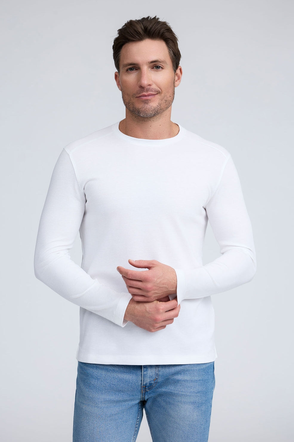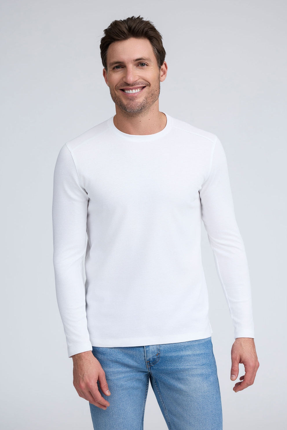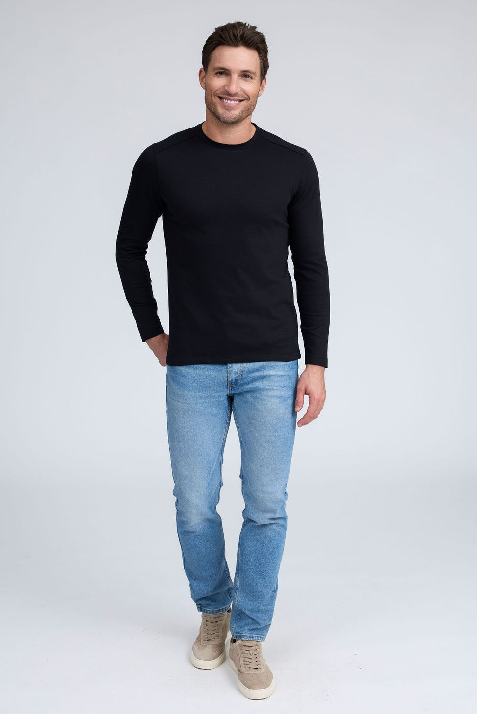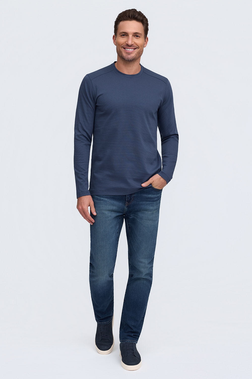 Move with confidence in The Kai, our essential long-sleeve crew neck designed with subtle tonal horizontal stripes for a refined, modern look. Whether worn solo or layered on cooler days, this versatile piece offers the perfect blend of comfort and sophistication.