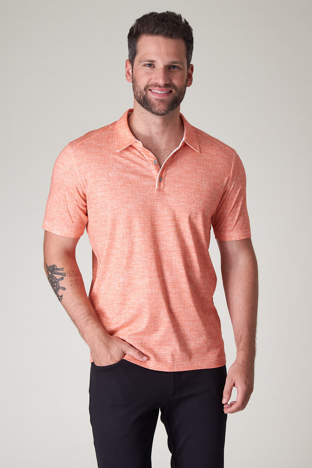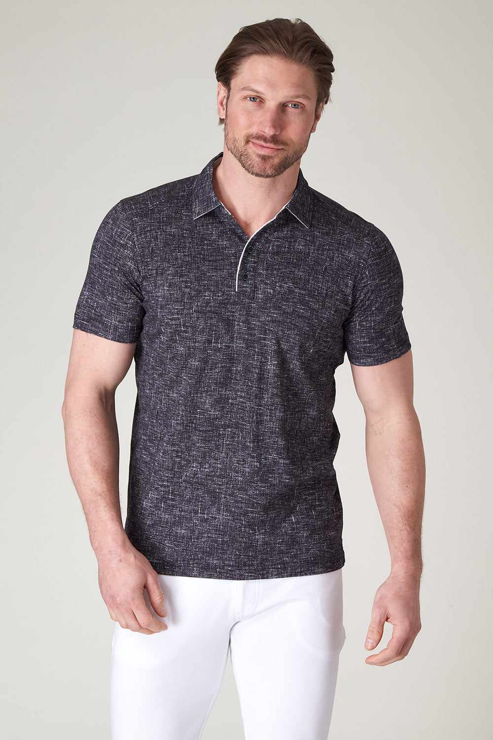 We enhanced The Wesley with a distinctive two-button open collar with subtle piping for a modern take on the classic polo. This denim-inspired print in our signature 100% Aqua Cotton, gives you the perfect blend of quality, comfort, and design; it's no wonder it's one of our best-selling styles.