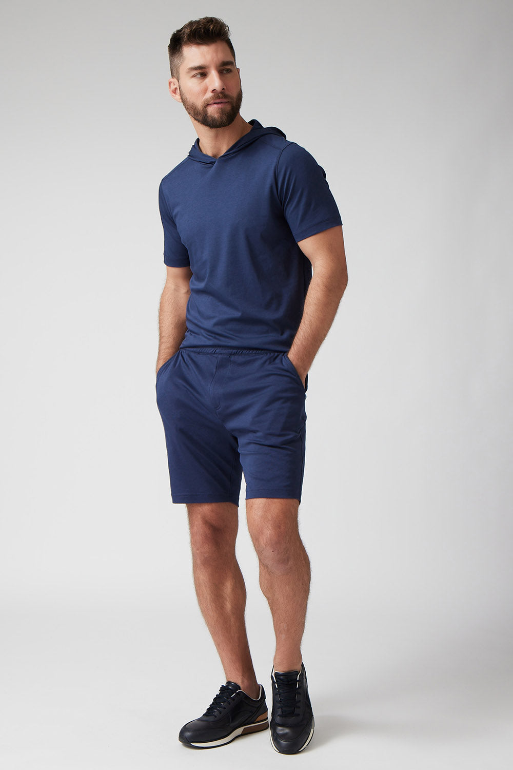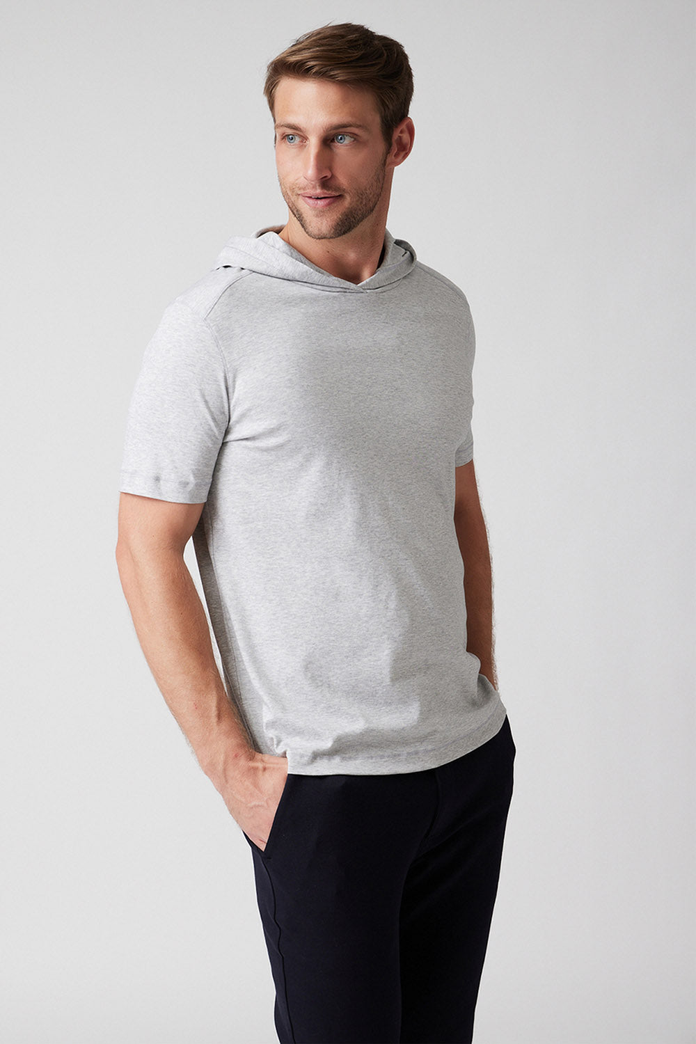 Enjoy your free time in our ultra-soft luxury cotton short-sleeve pull-over hoodie. Wear as an alternative to a t-shirt or layered when you need a little warmth on a cool day. The Roman pairs well with The Andrew or Jake for a great look, whether hanging out, working out, or just lounging.