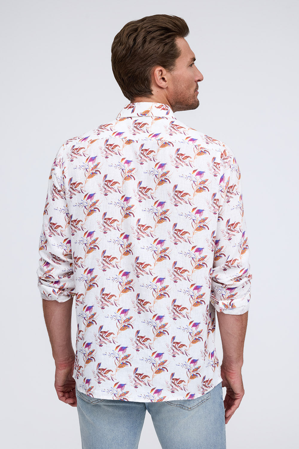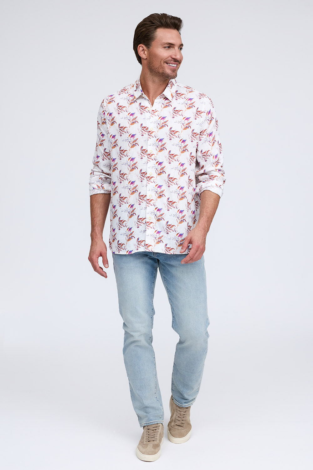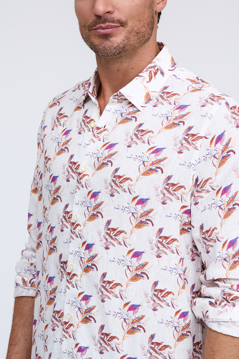Strikingly unique - the Arlington is your new staple for standout everyday style. Made from a light, airy linen blend, this button-front long sleeve shirt features a vibrant, colorful leaf print that adds energy and flair. With its easy fit and bold design, the Arlington makes a confident statement, bringing a lively burst of character to any wardrobe.