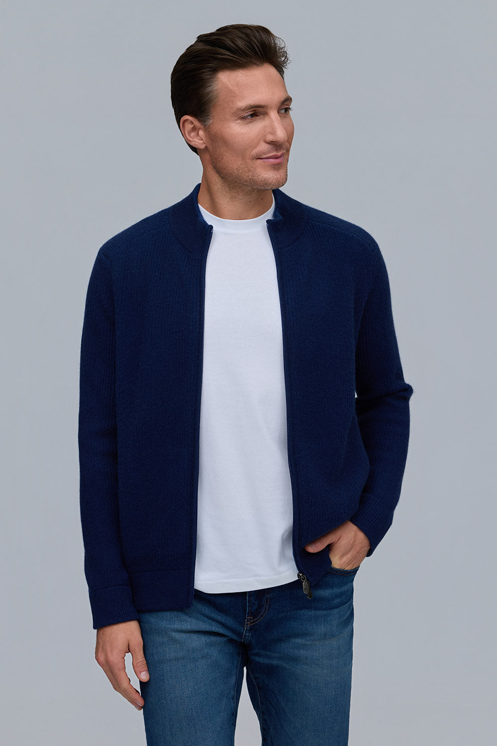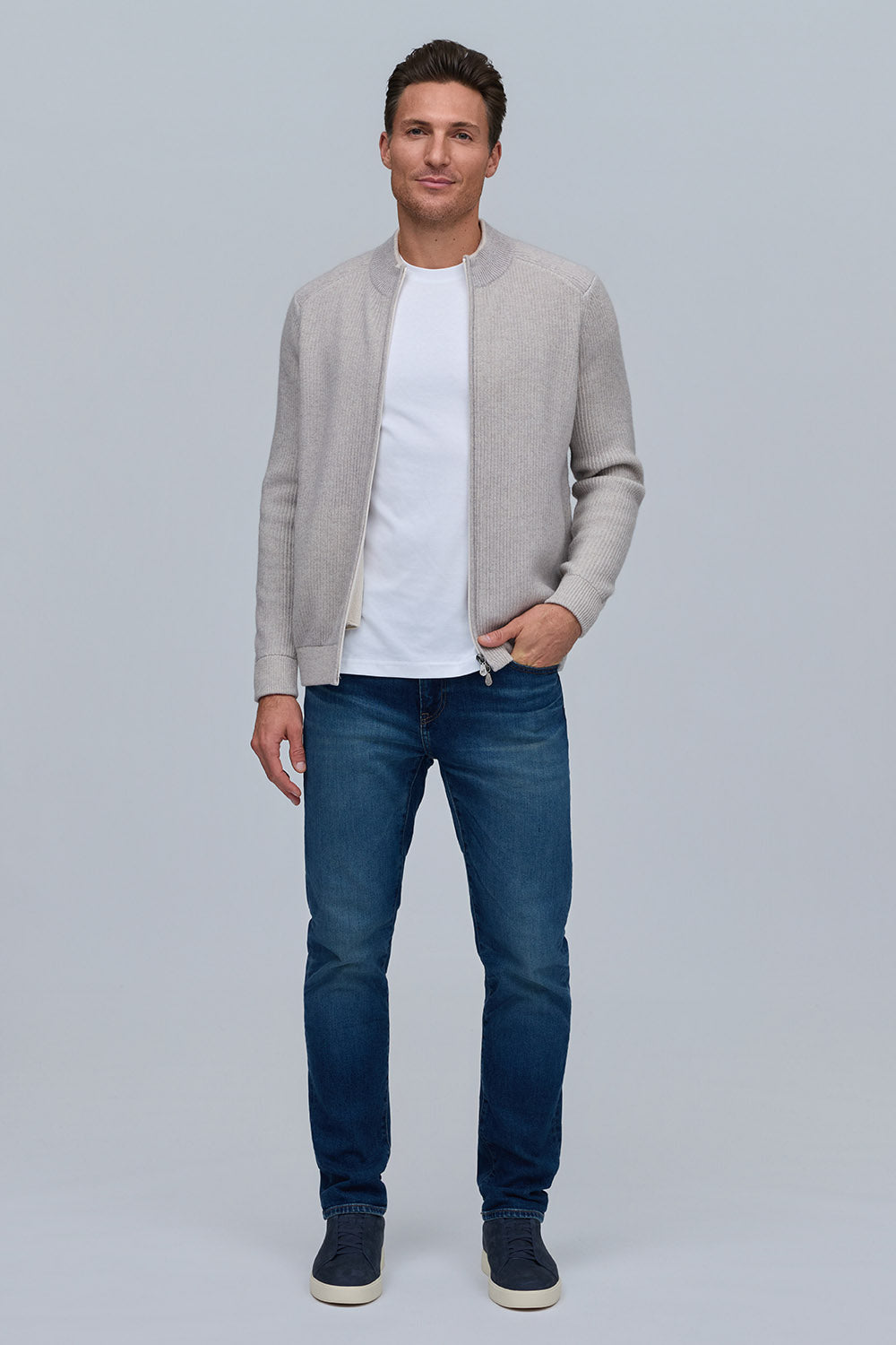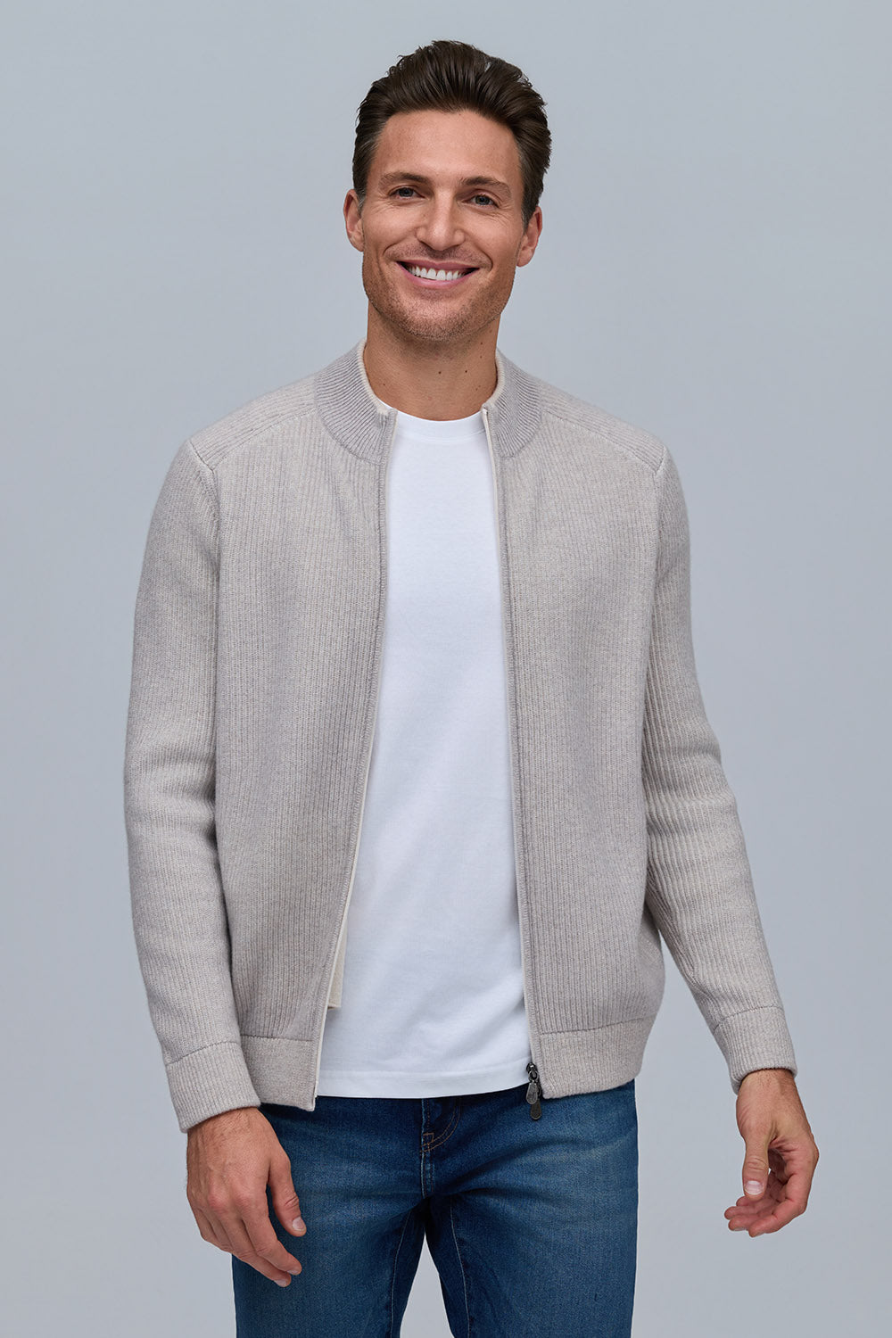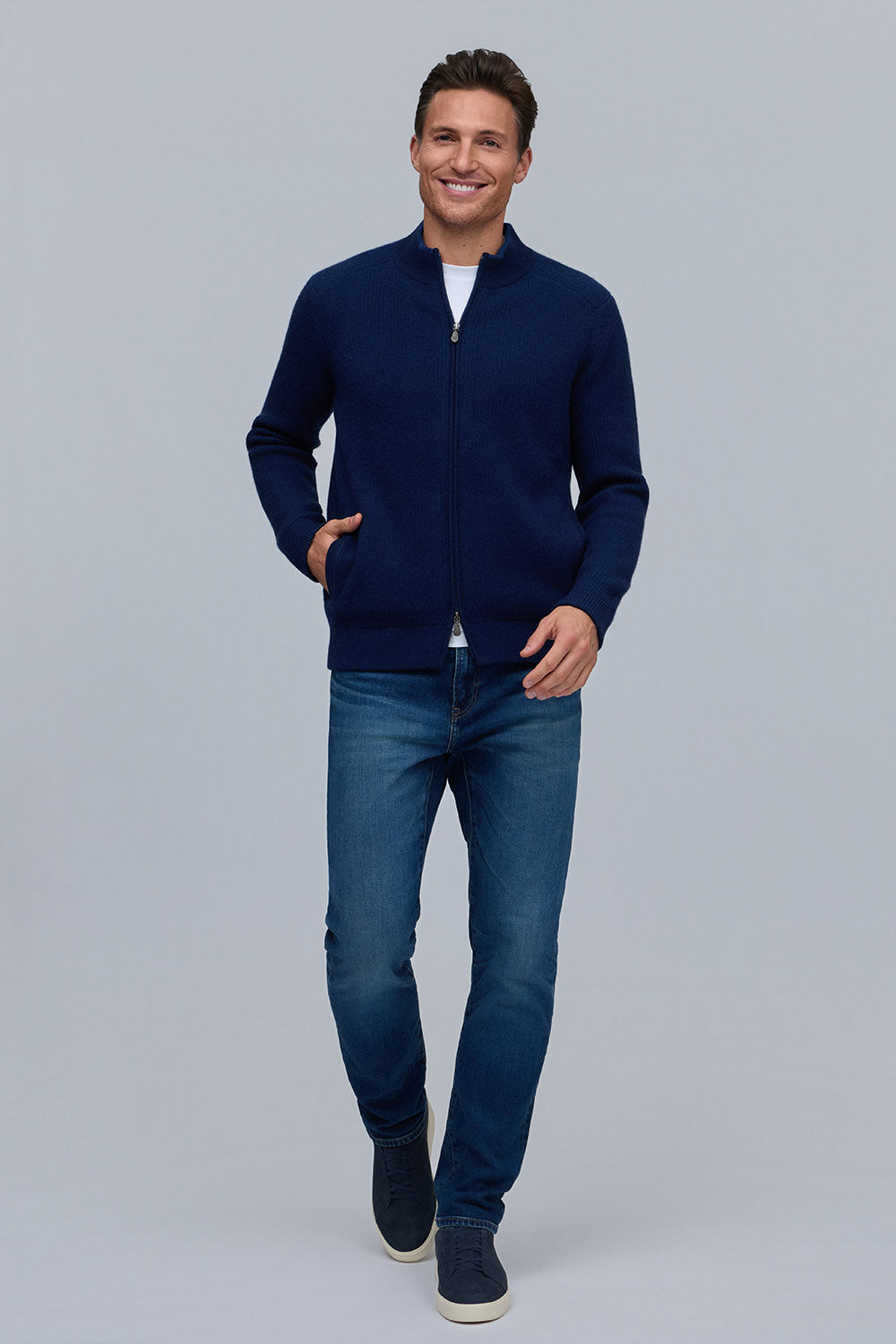 Crafted from a rich 90% wool, 10% cashmere blend, the Vanise English rib jacket offers exceptional warmth and softness. Featuring a full-zip front and refined ribbed texture, it combines timeless style with modern versatility. Available in classic cloud and navy, it pairs seamlessly with the matching Solace hat and Reno scarf for a complete, elevated look.