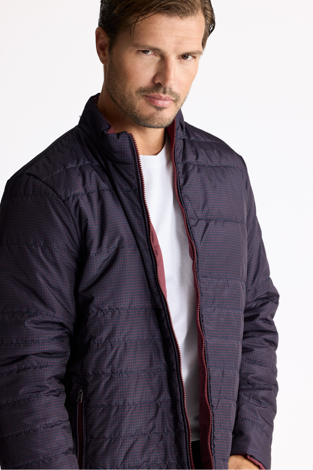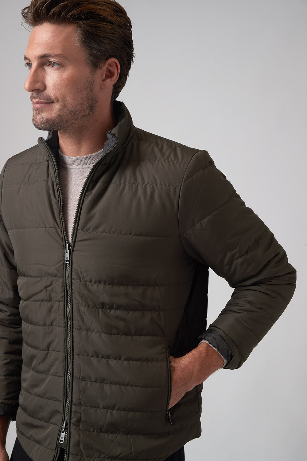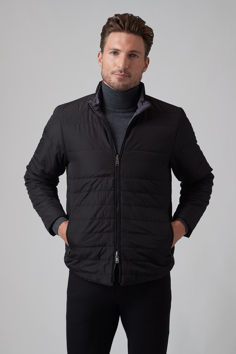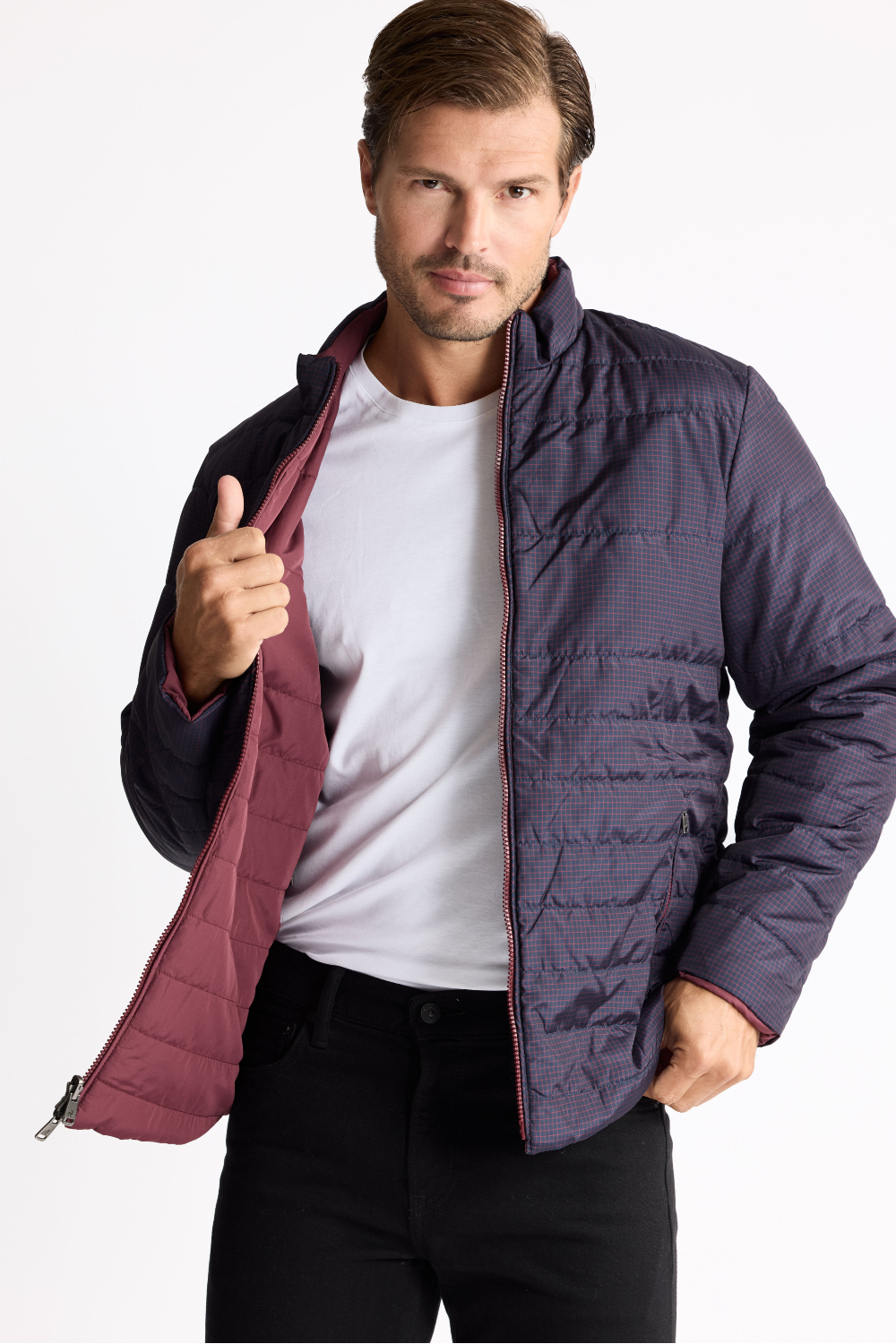 The Chris is the perfect grab-and-go jacket for cooler days. Reversible and made from water-resistant quilted pongee fabric, this jacket is designed with a sleek silhouette that will keep you warm and dry. It features a two-way front zipper and zipped side pockets for all your essentials.