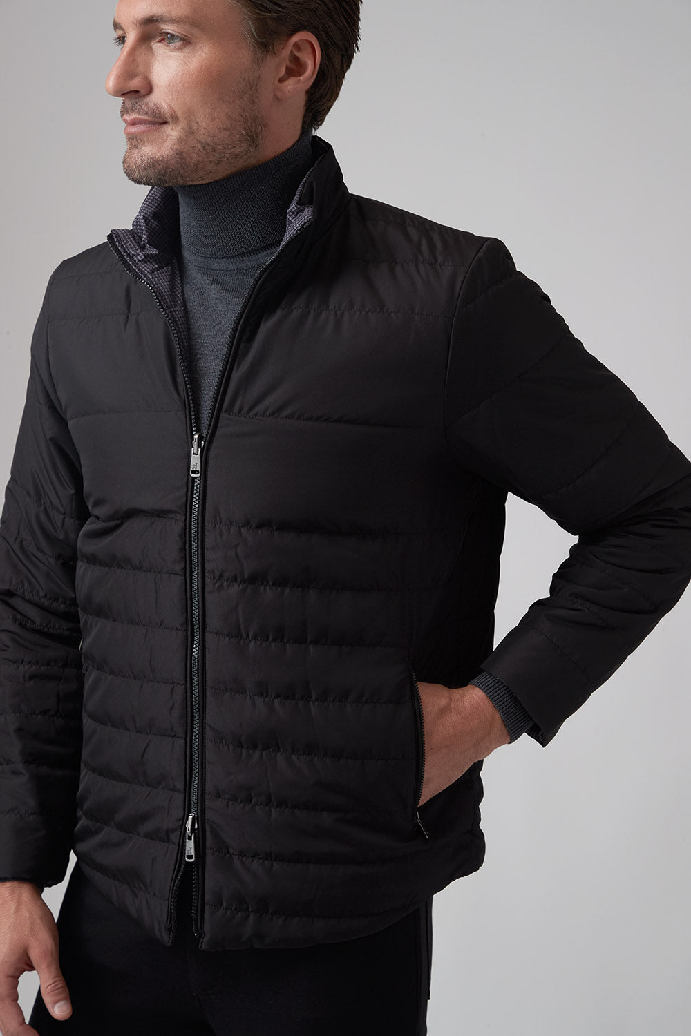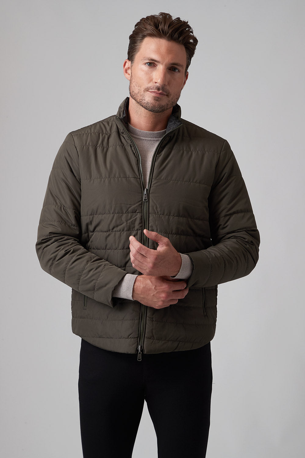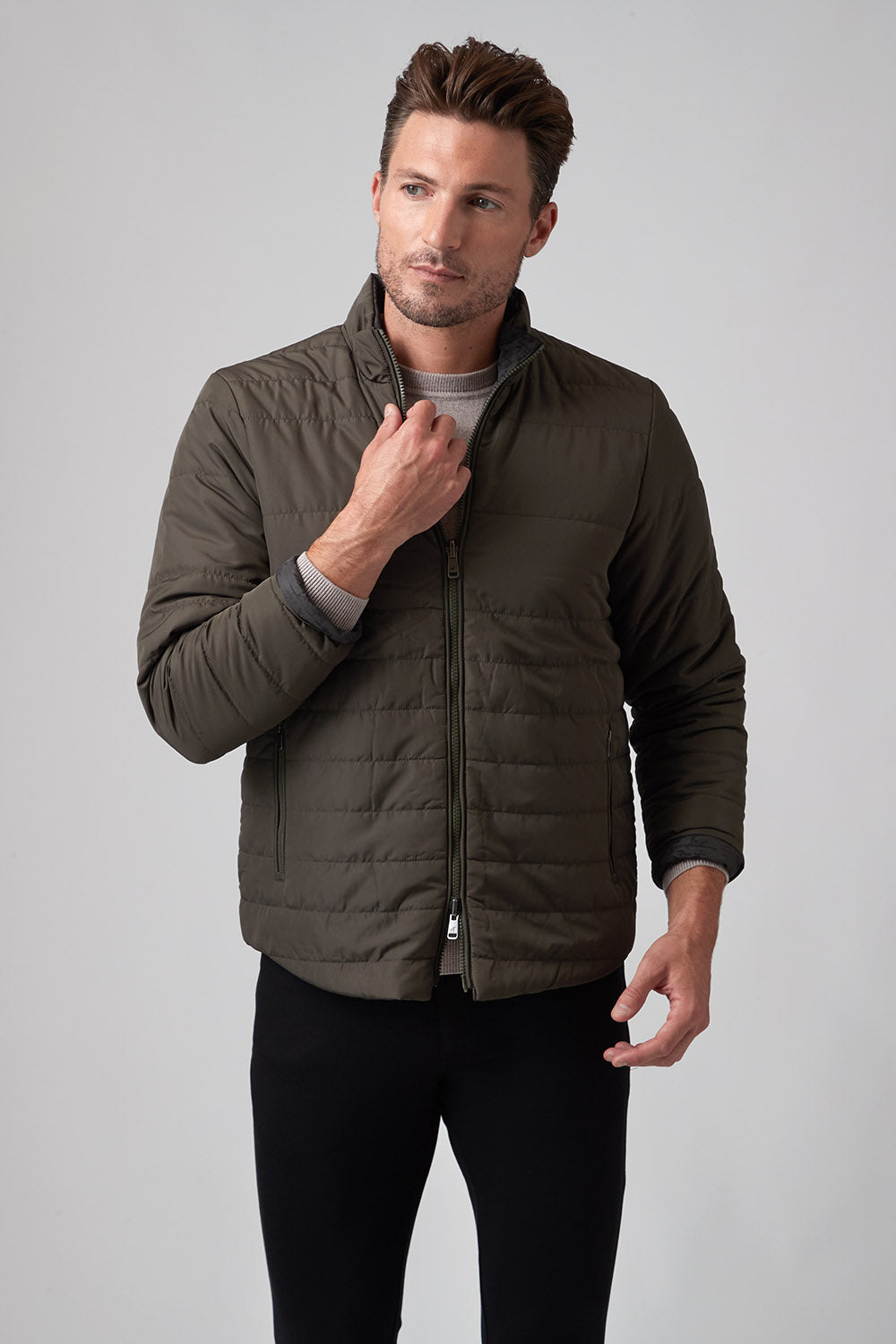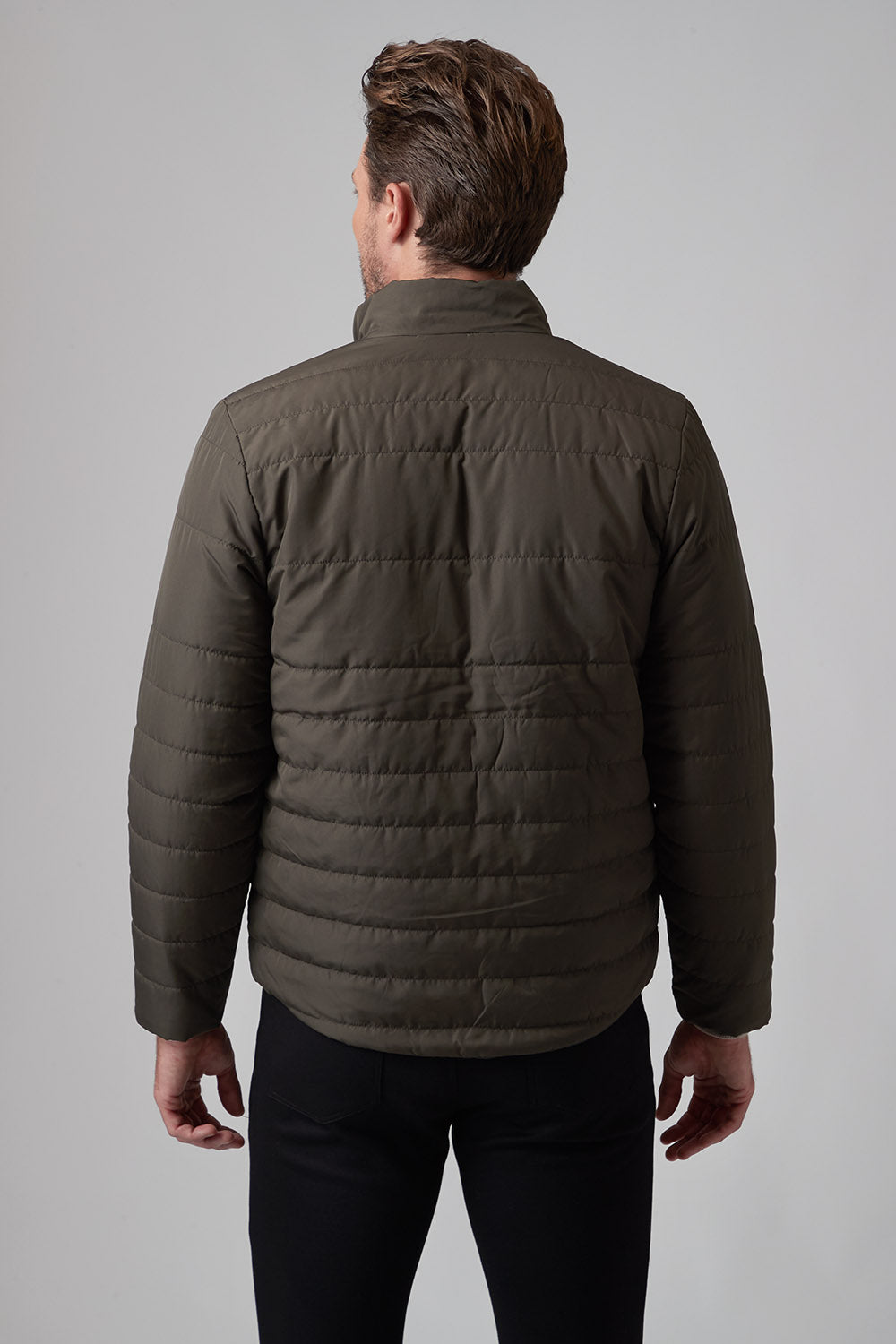 The Chris is the perfect grab-and-go jacket for cooler days. Reversible and made from water-resistant quilted pongee fabric, this jacket is designed with a sleek silhouette that will keep you warm and dry. It features a two-way front zipper and zipped side pockets for all your essentials.