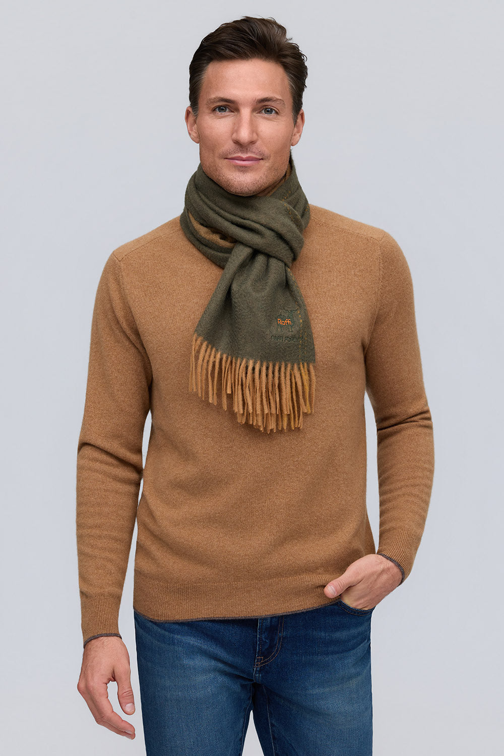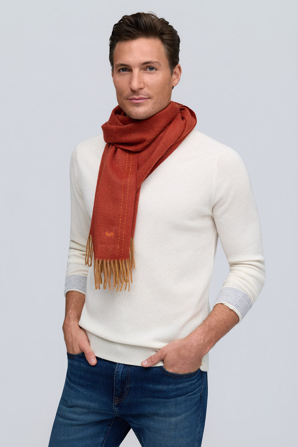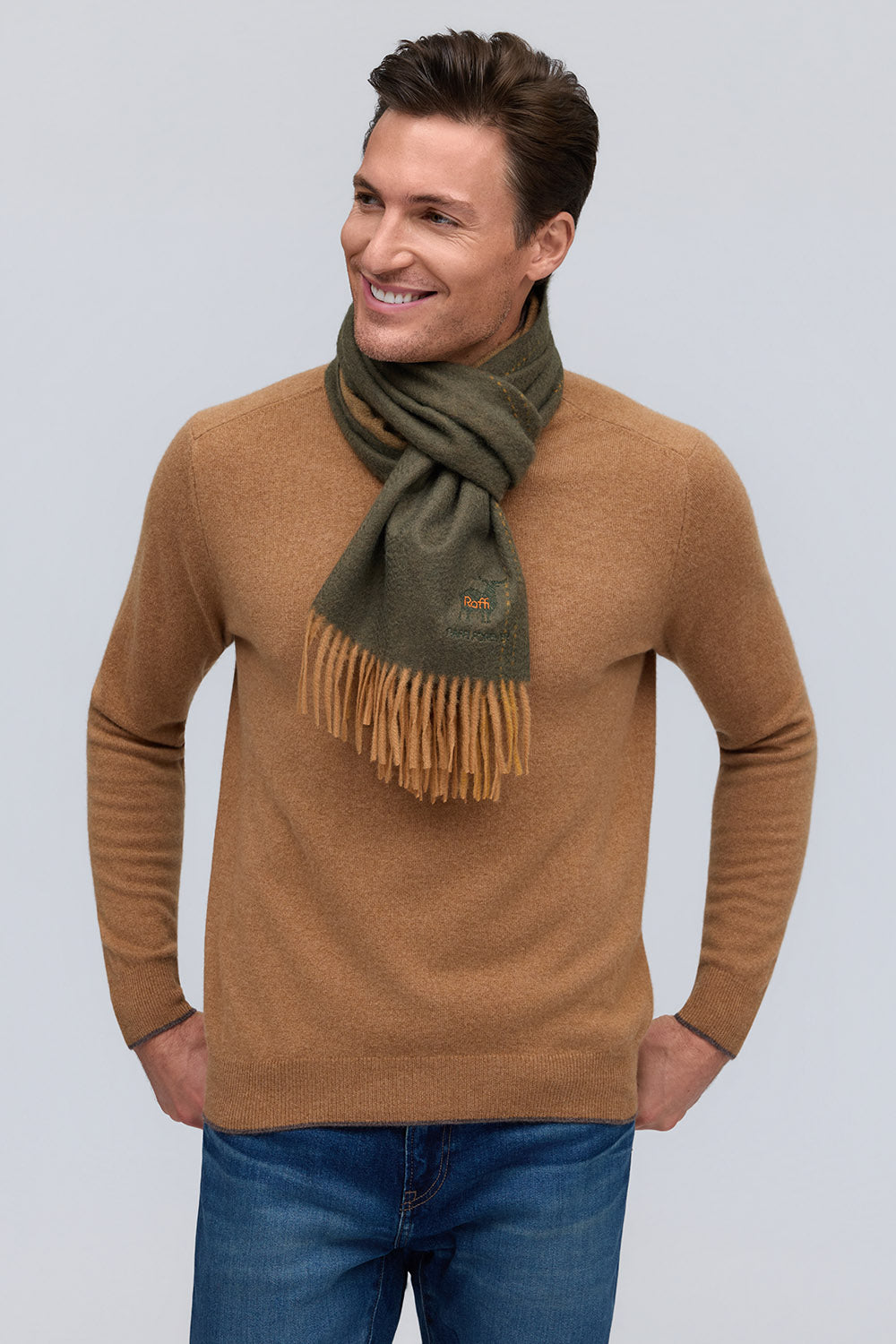 Crafted from double-faced 100% cashmere, this scarf delivers exceptional softness and warmth. Featuring two complementary tones, classic fringe, and an embroidered Raffi Forever logo, it’s a timeless luxury accessory.