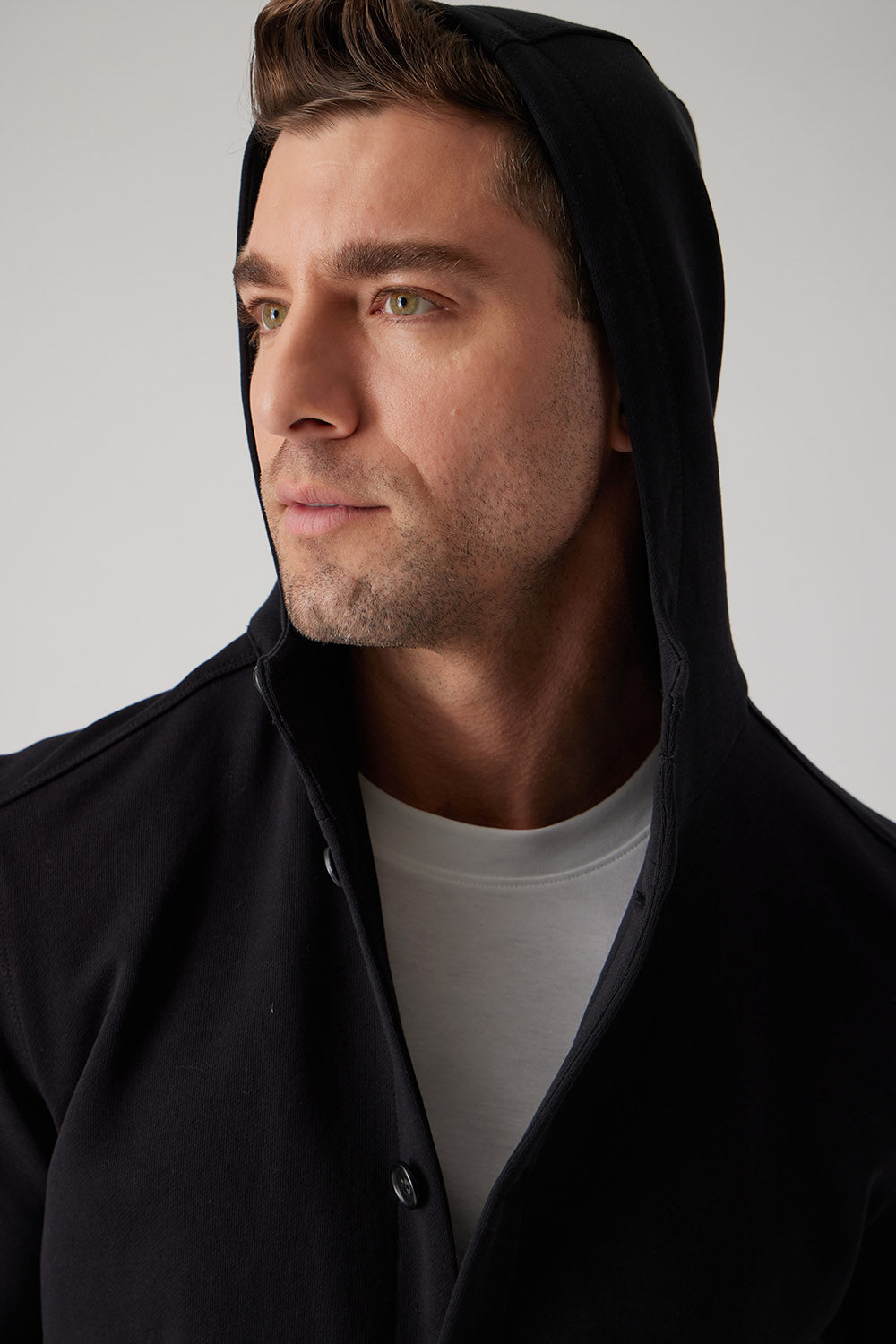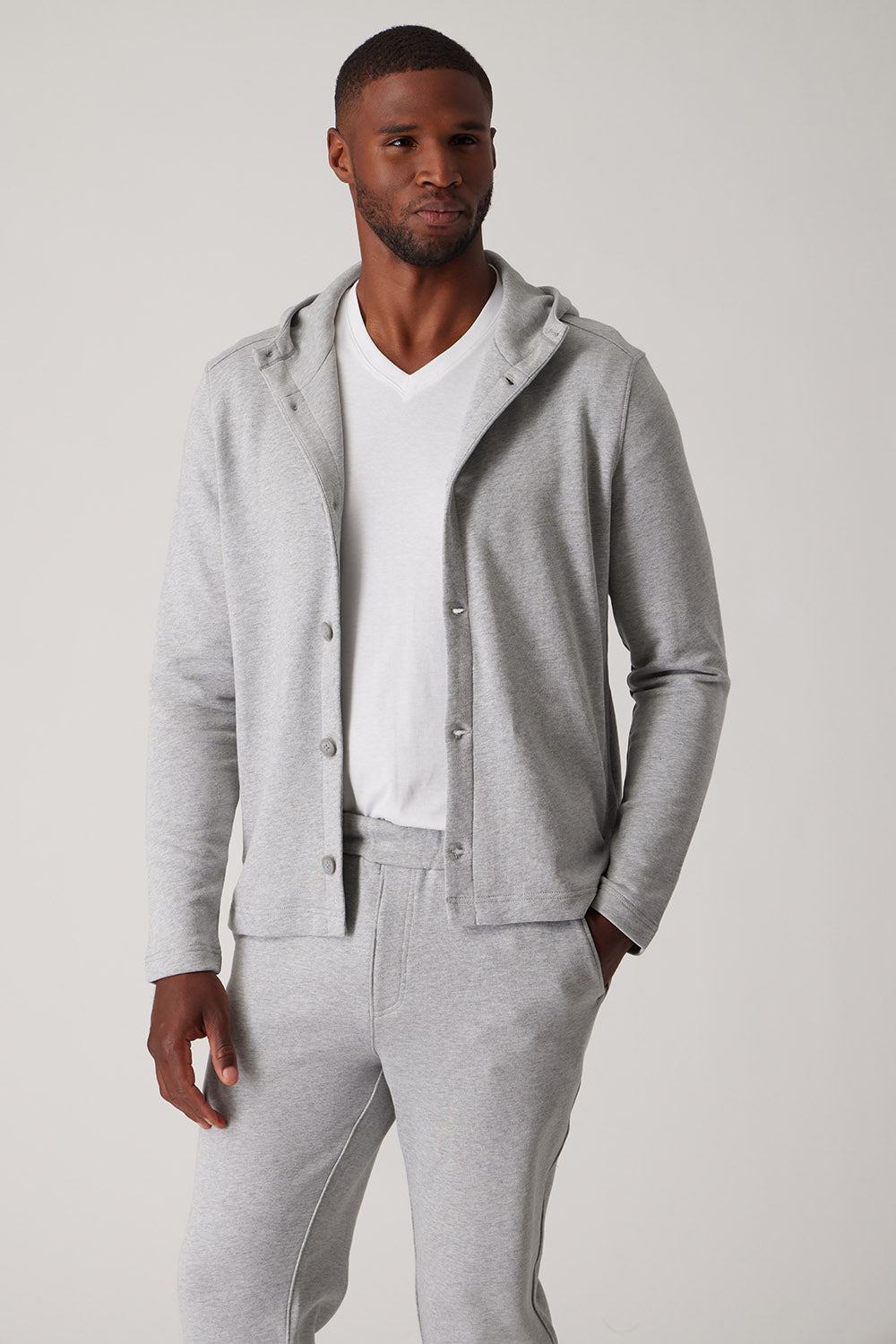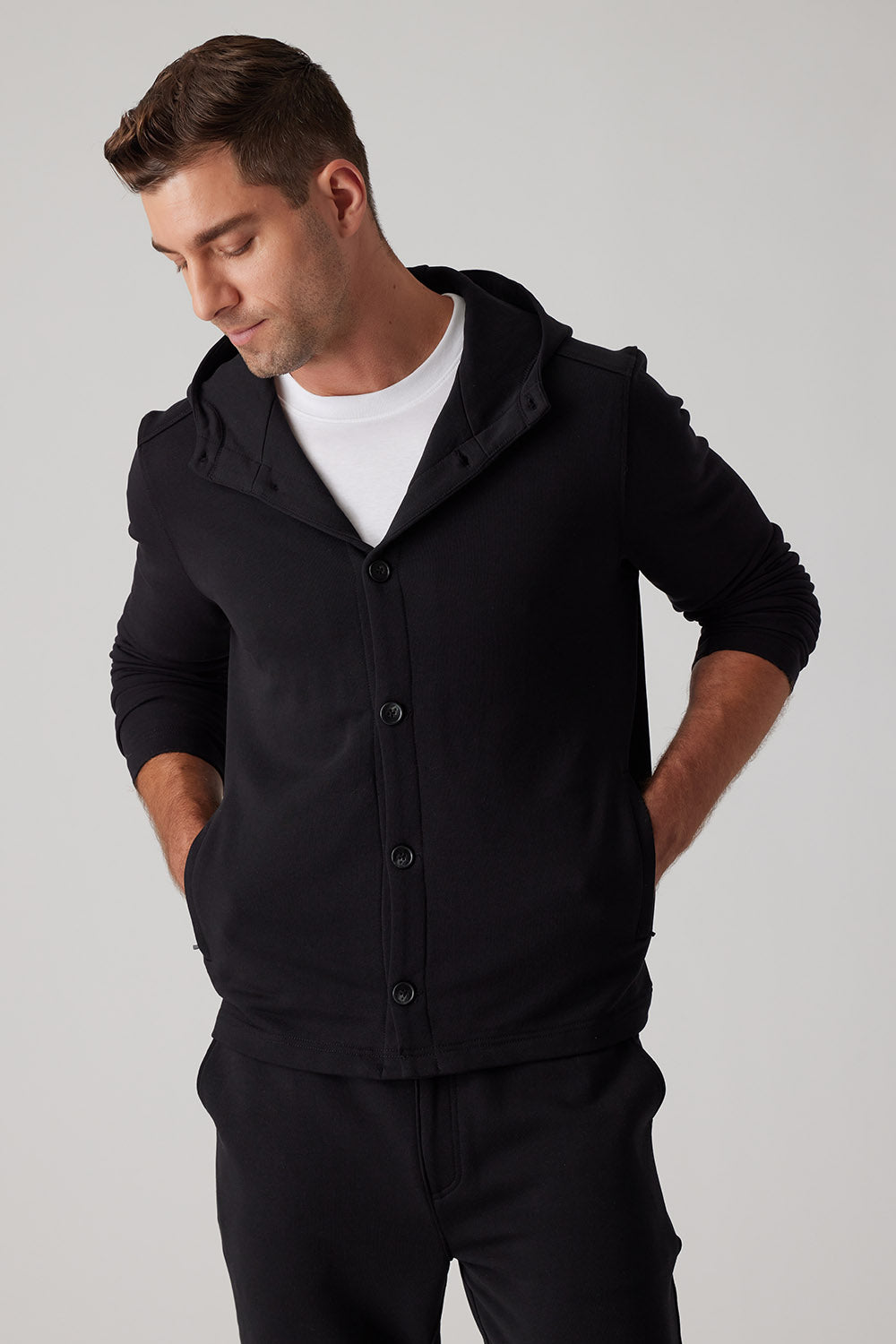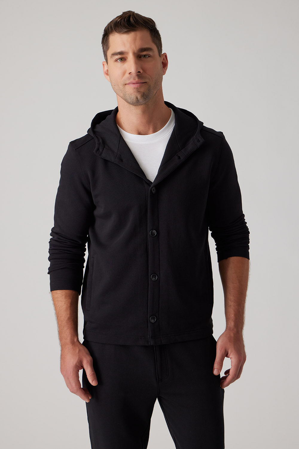 Made from our high-quality 100% Aqua Cotton terry material, The Daniel provides comfortable softness while maintaining its structure for an impeccable fit. With full button closure and zip-side pockets, this hoodie will be your go-to jacket for casual days running errands or after the gym. Complete your outfit with the David cotton terry pants and one of our Aqua Cotton tees.