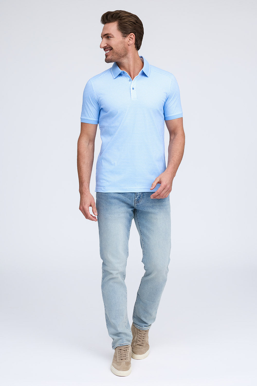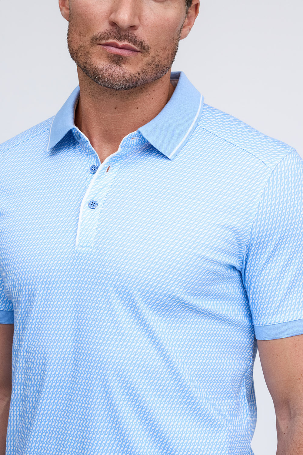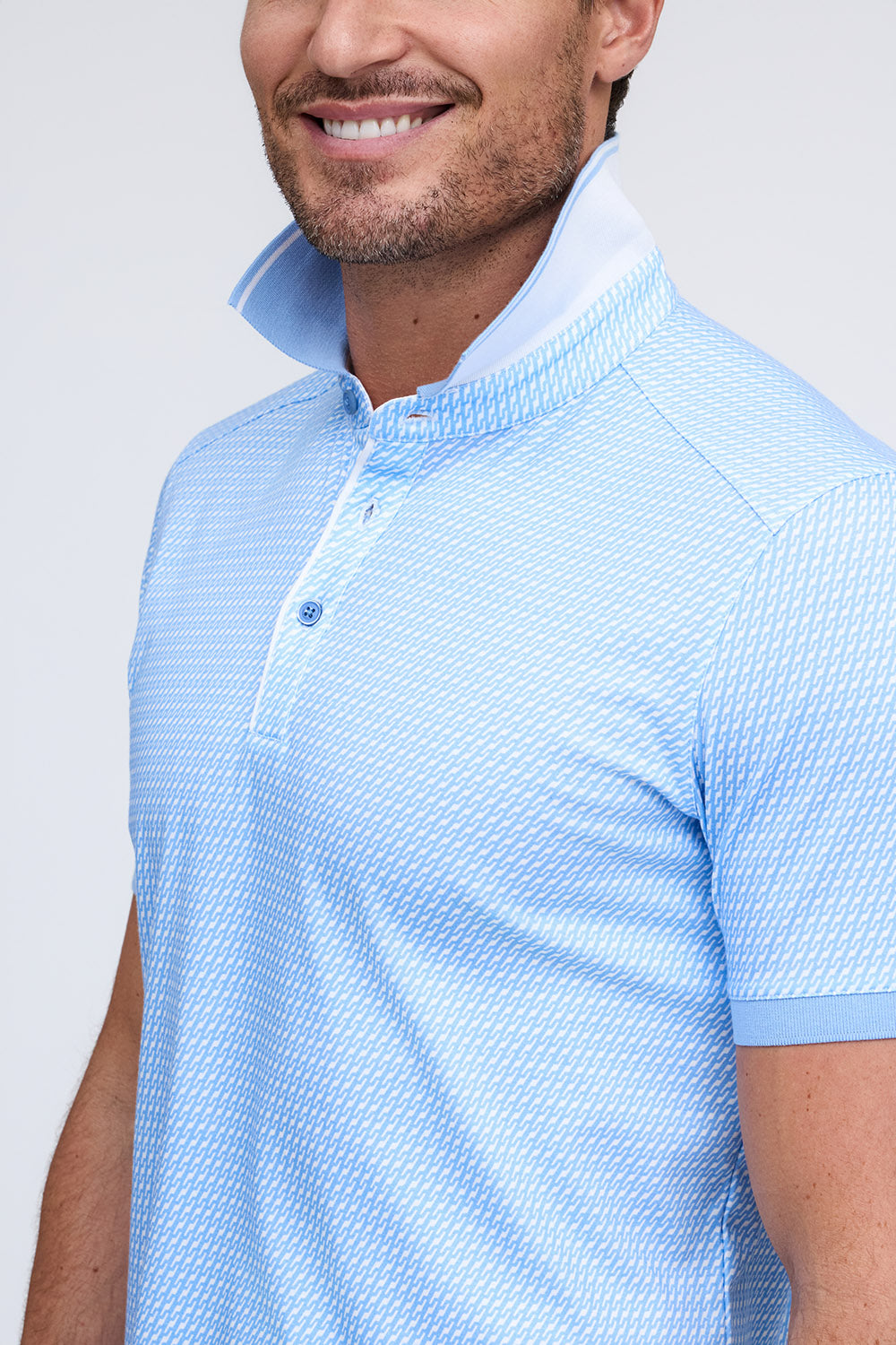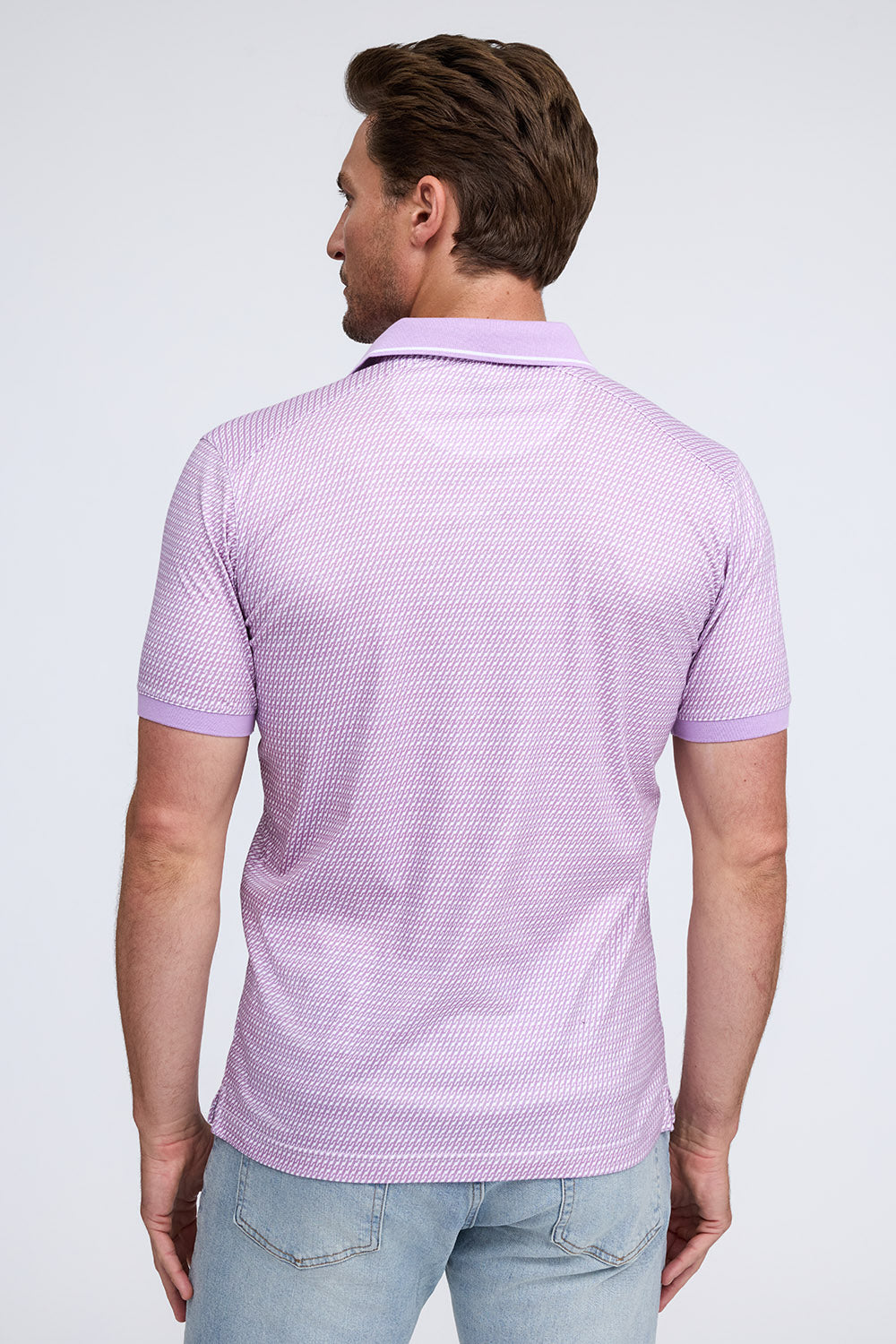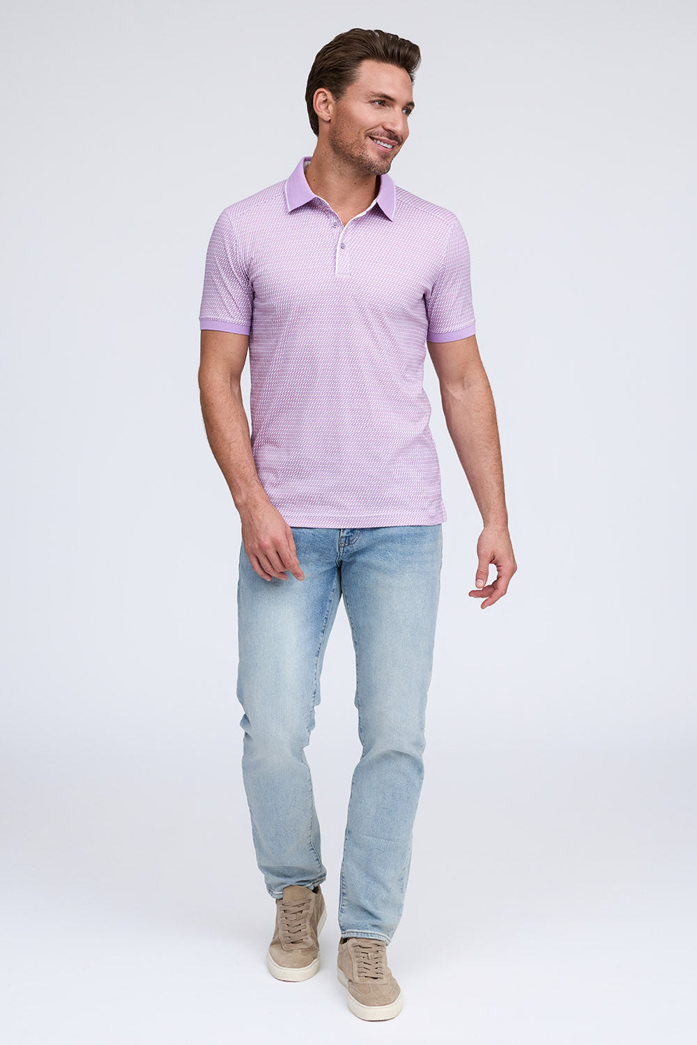 The Denver is a 100% Aqua Cotton jacquard printed polo, available in soft lilac and refreshing water colors. With white detailing on the collar and trim, this shirt delivers a crisp, clean, and elevated look, perfect for adding a touch of sophistication to your wardrobe.
