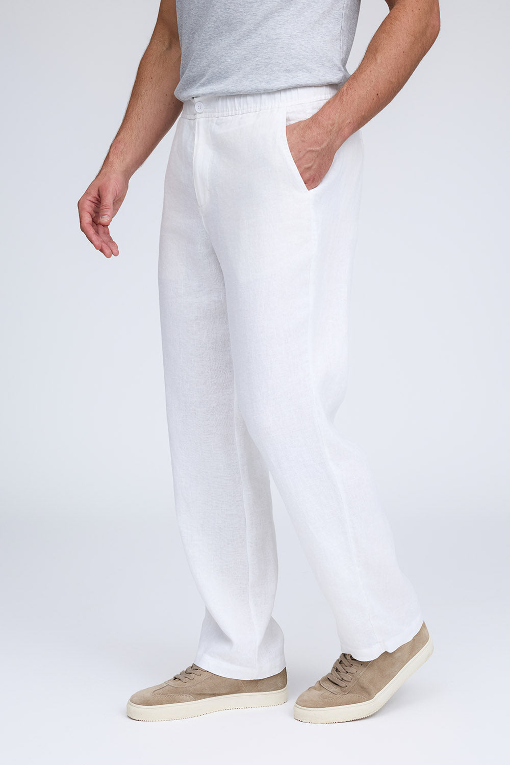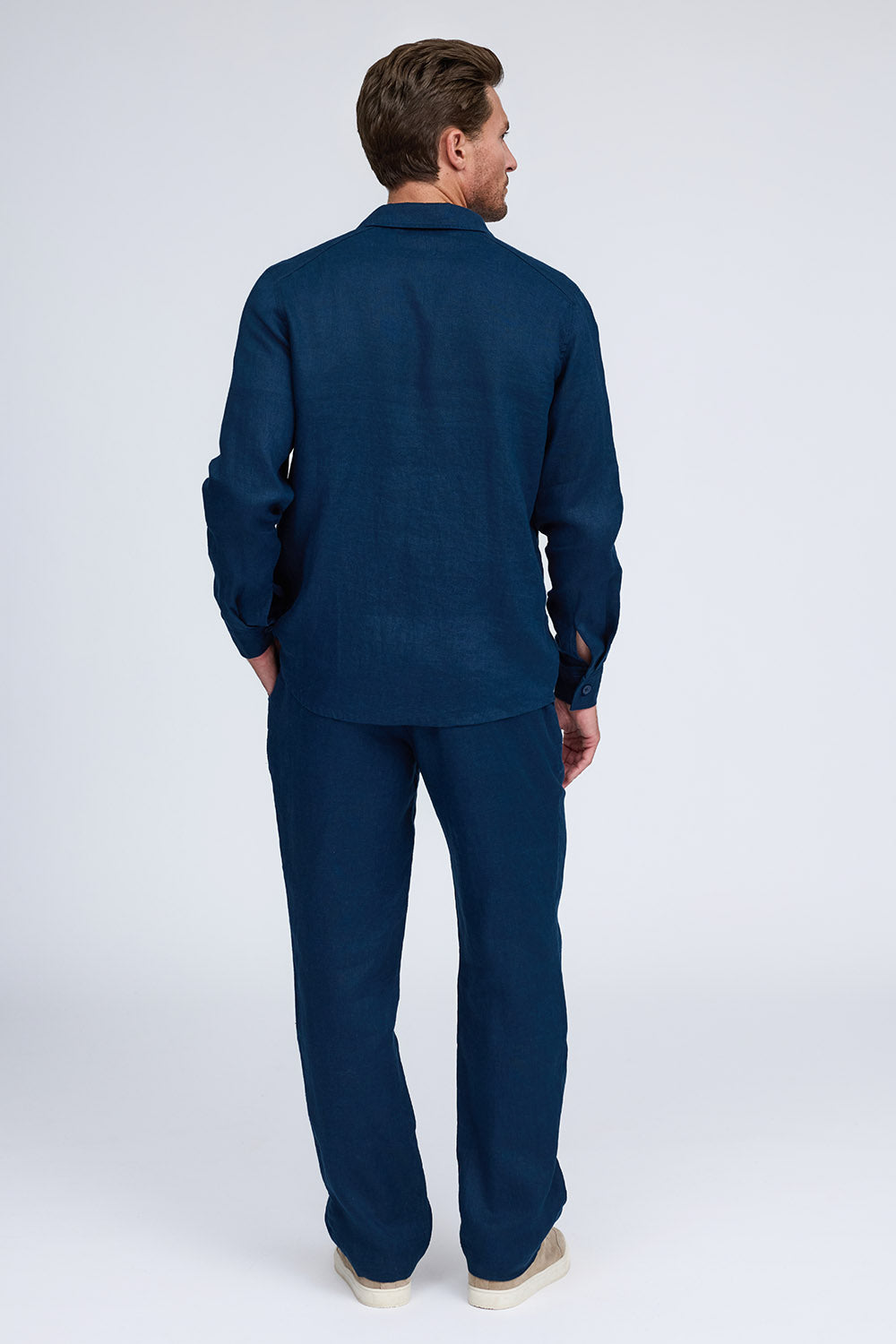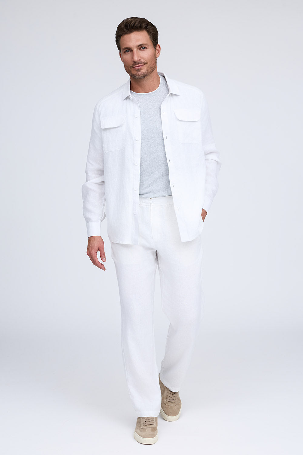 Airy and light, The Diego linen pant is the must have piece for Spring and Summer. Ideal for any occasion, it combines comfort with style, offered in white, flax and midnight. Pair it with The Thad shirt jacket for a laid-back yet elevated look that is cool and stylish.