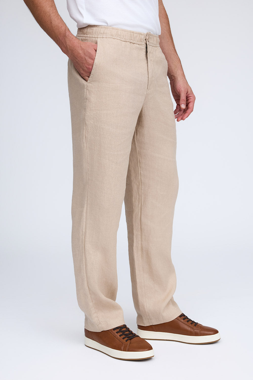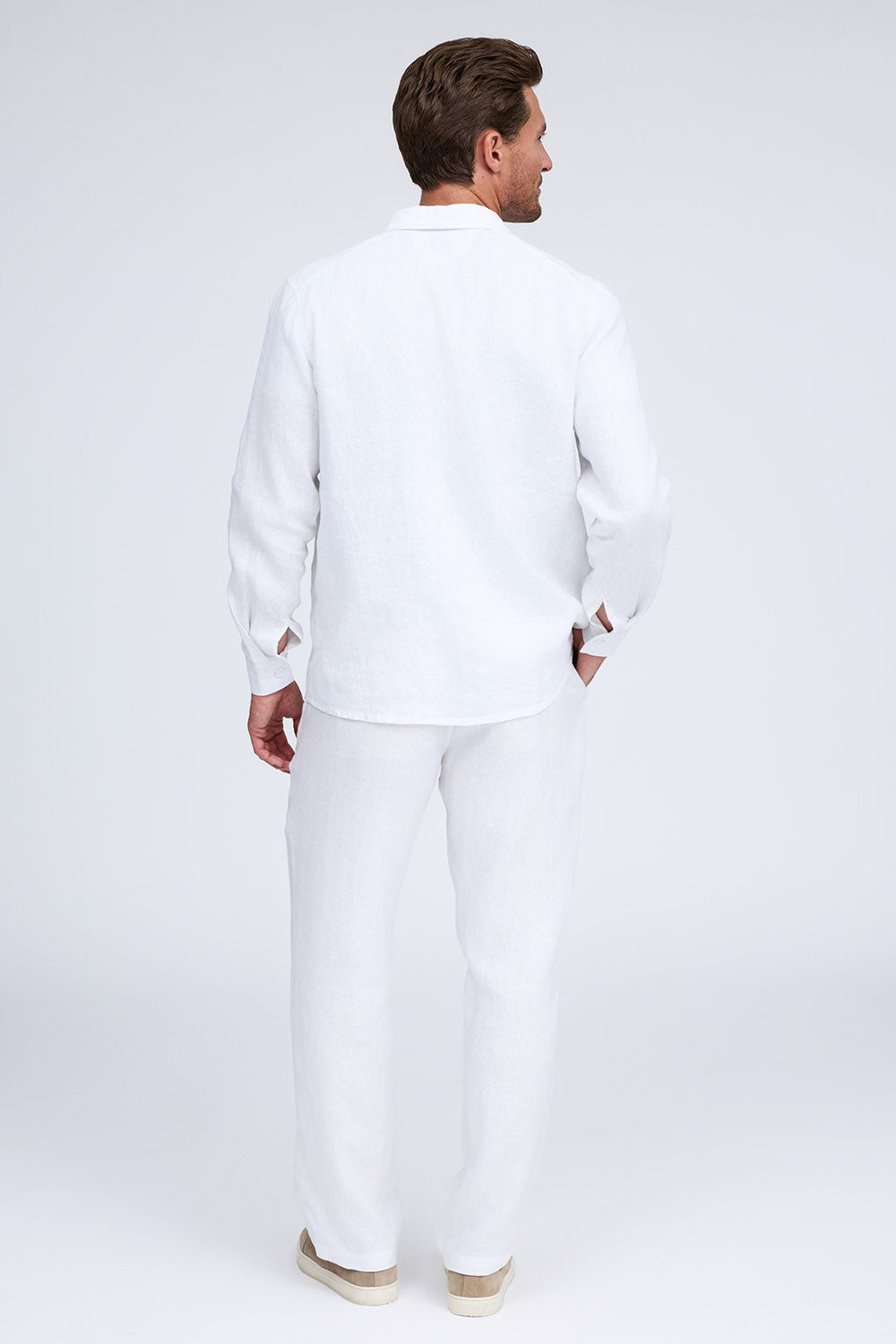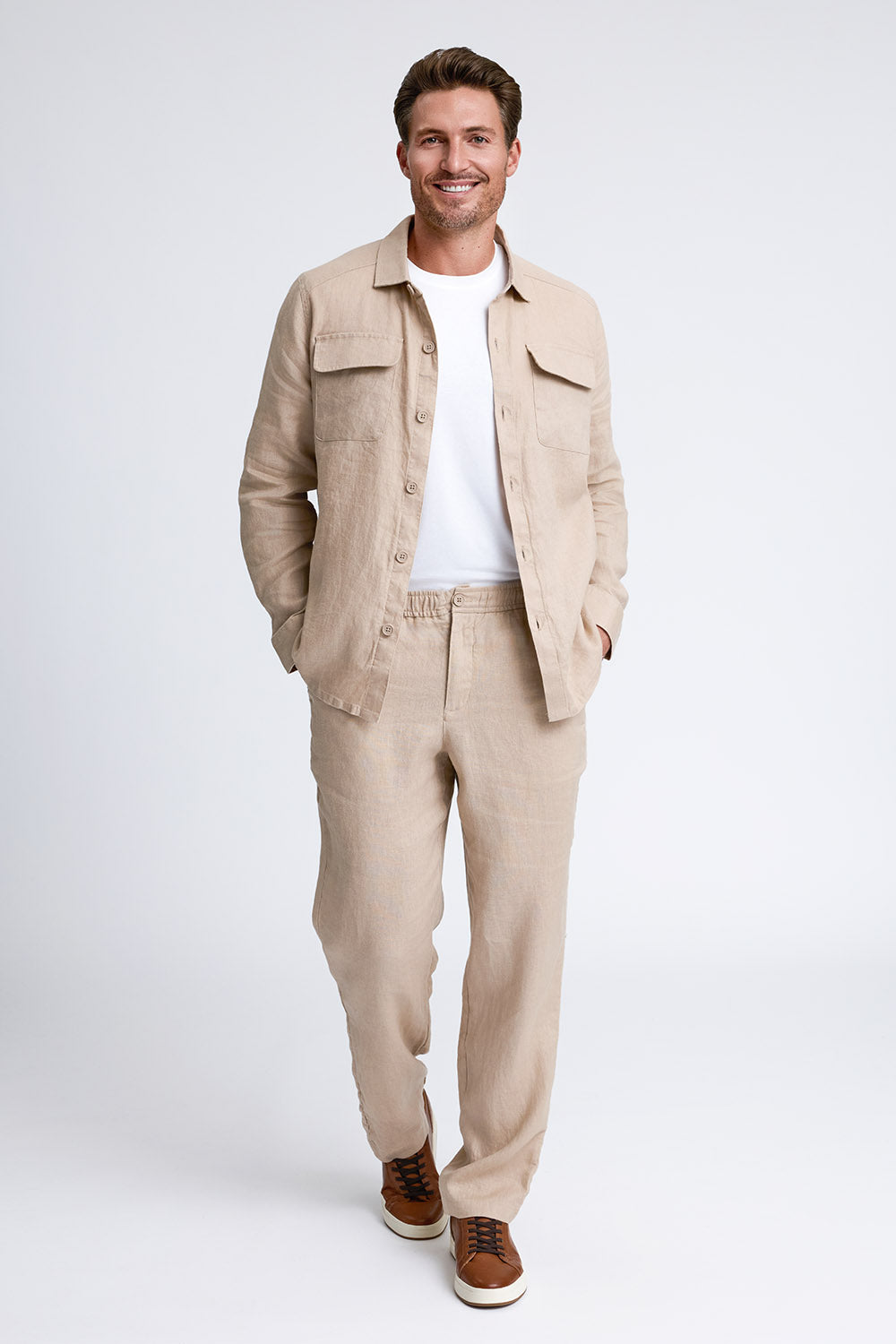 Airy and light, The Diego linen pant is the must have piece for Spring and Summer. Ideal for any occasion, it combines comfort with style, offered in white, flax and midnight. Pair it with The Thad shirt jacket for a laid-back yet elevated look that is cool and stylish.