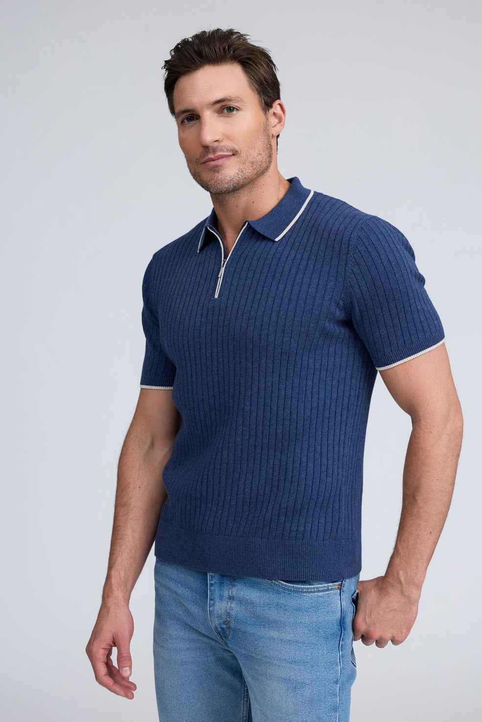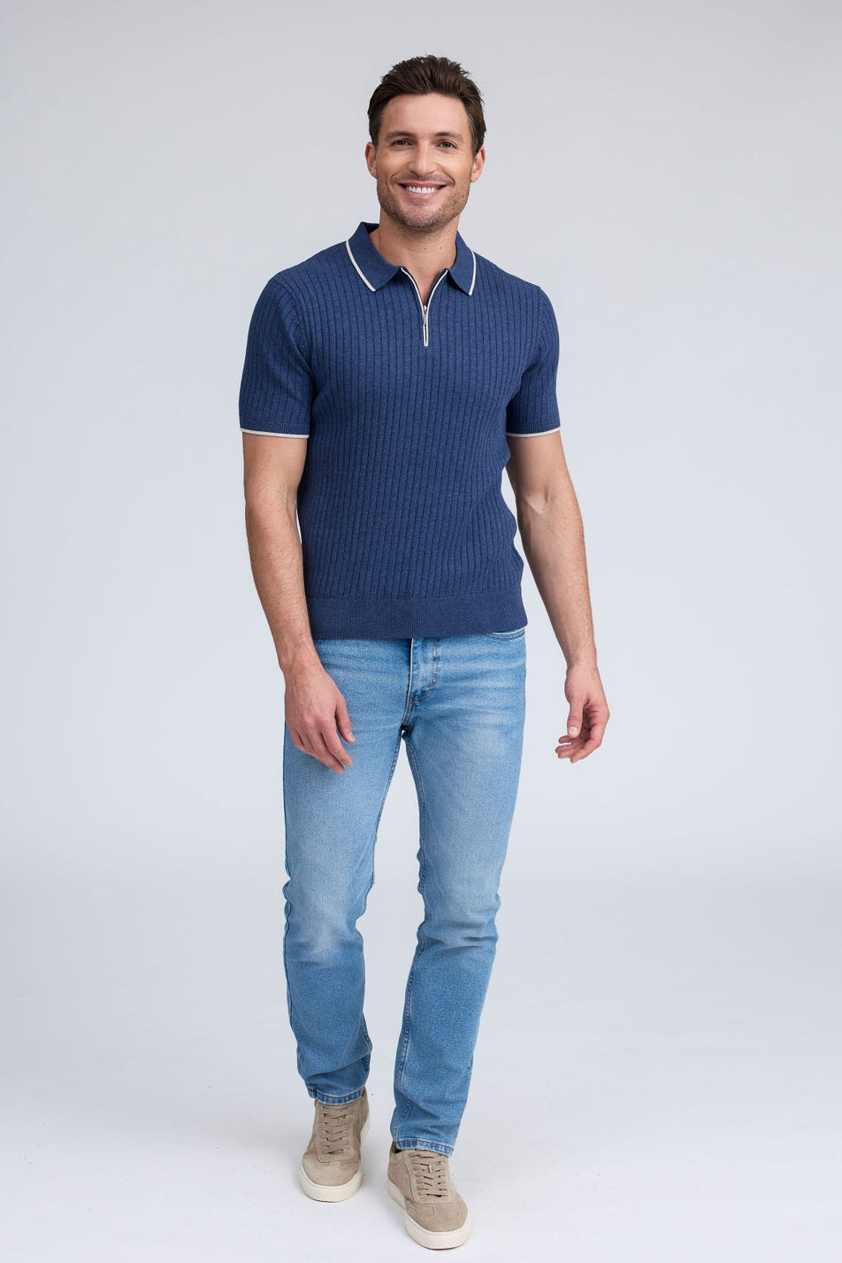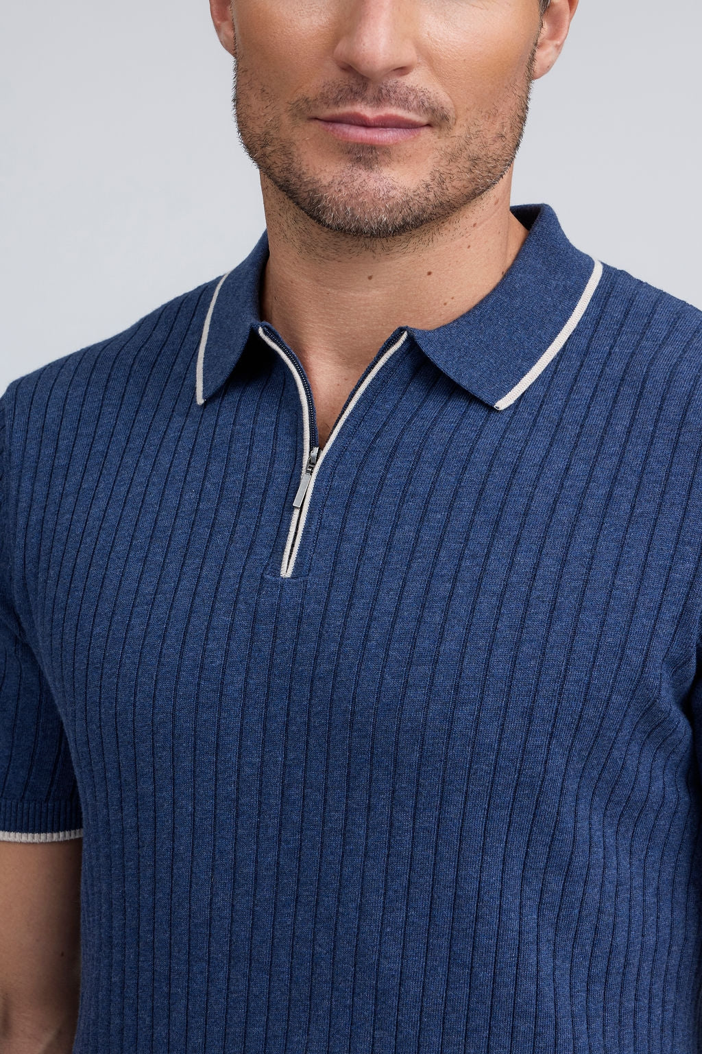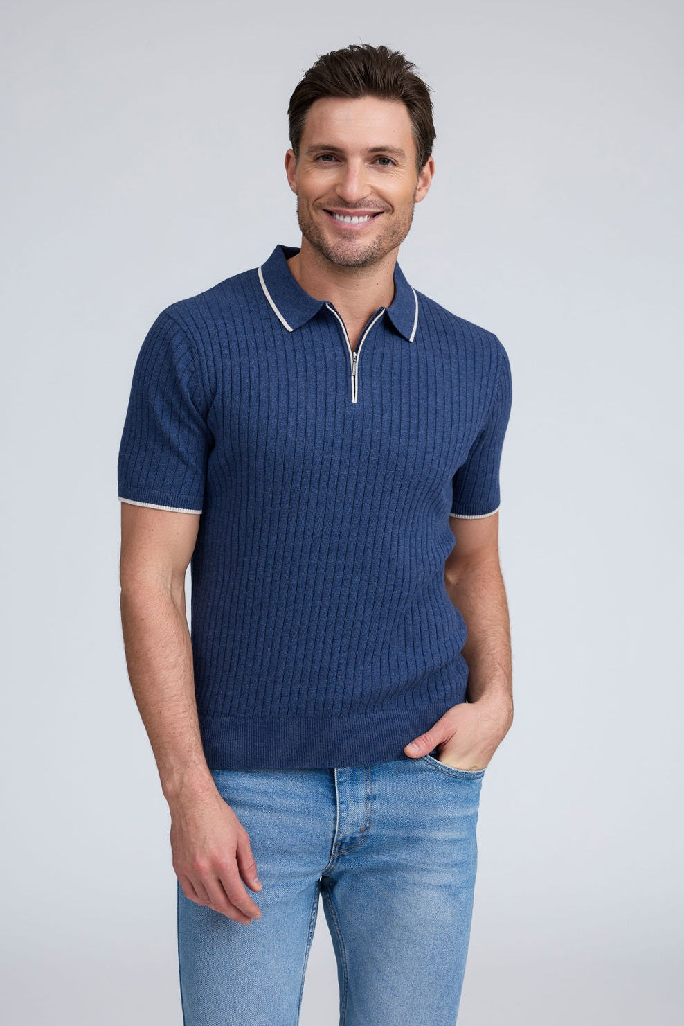 This polo is perfect fusion of timeless style and modern comfort, The Mario, crafted from a premium ribbed cotton blend. The front zip fastening adds a sleek, contemporary touch, while the complementary color piping on the collar and sleeves offers a subtle yet eye-catching detail.