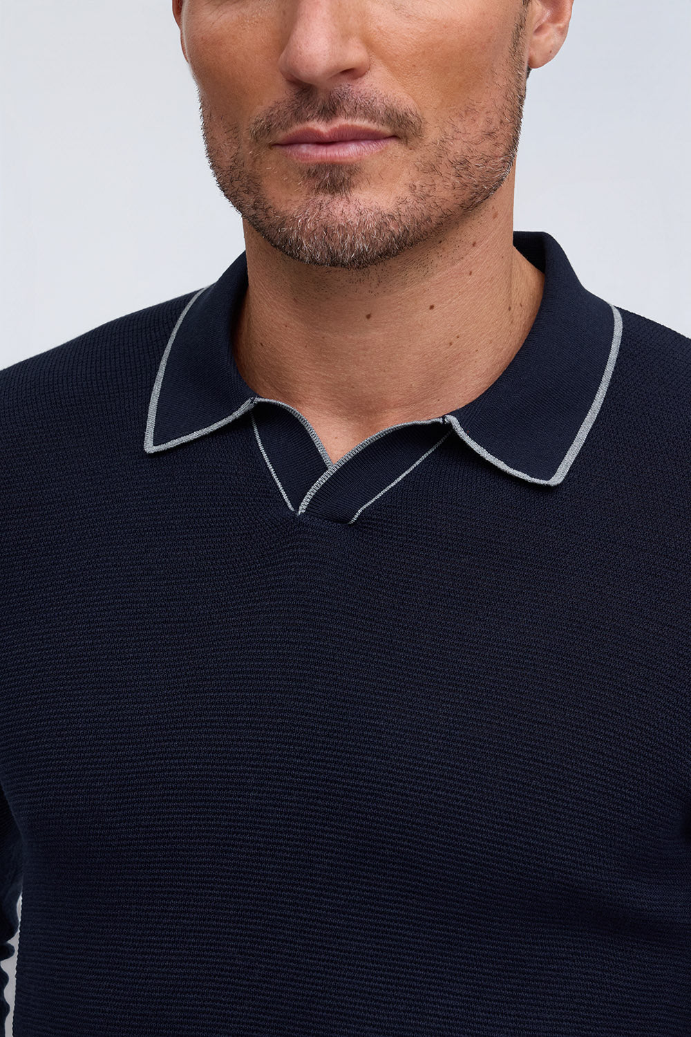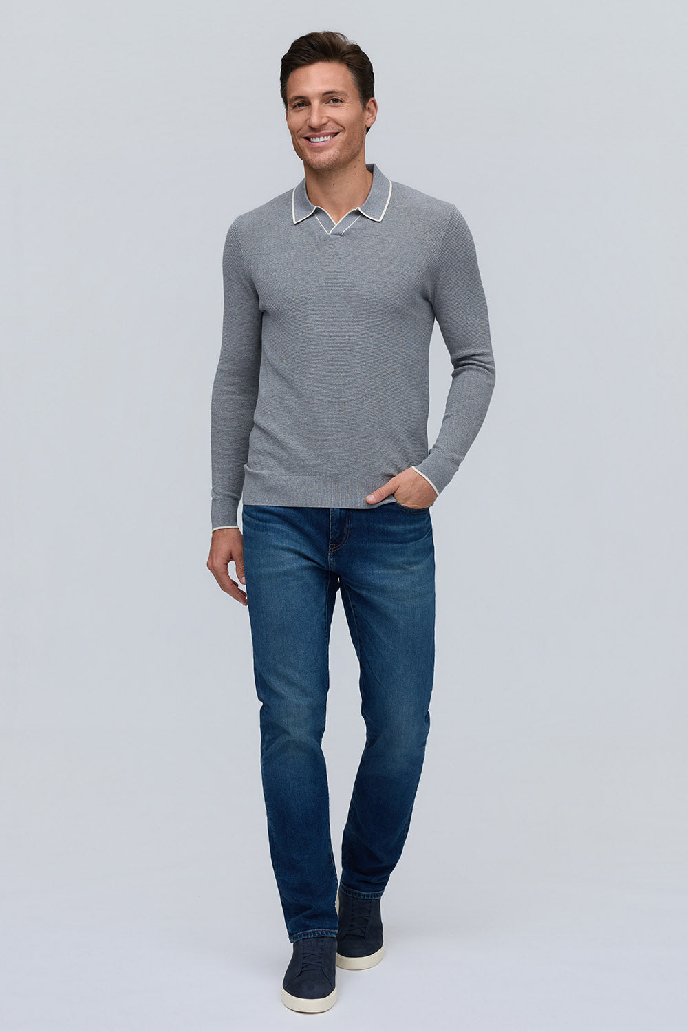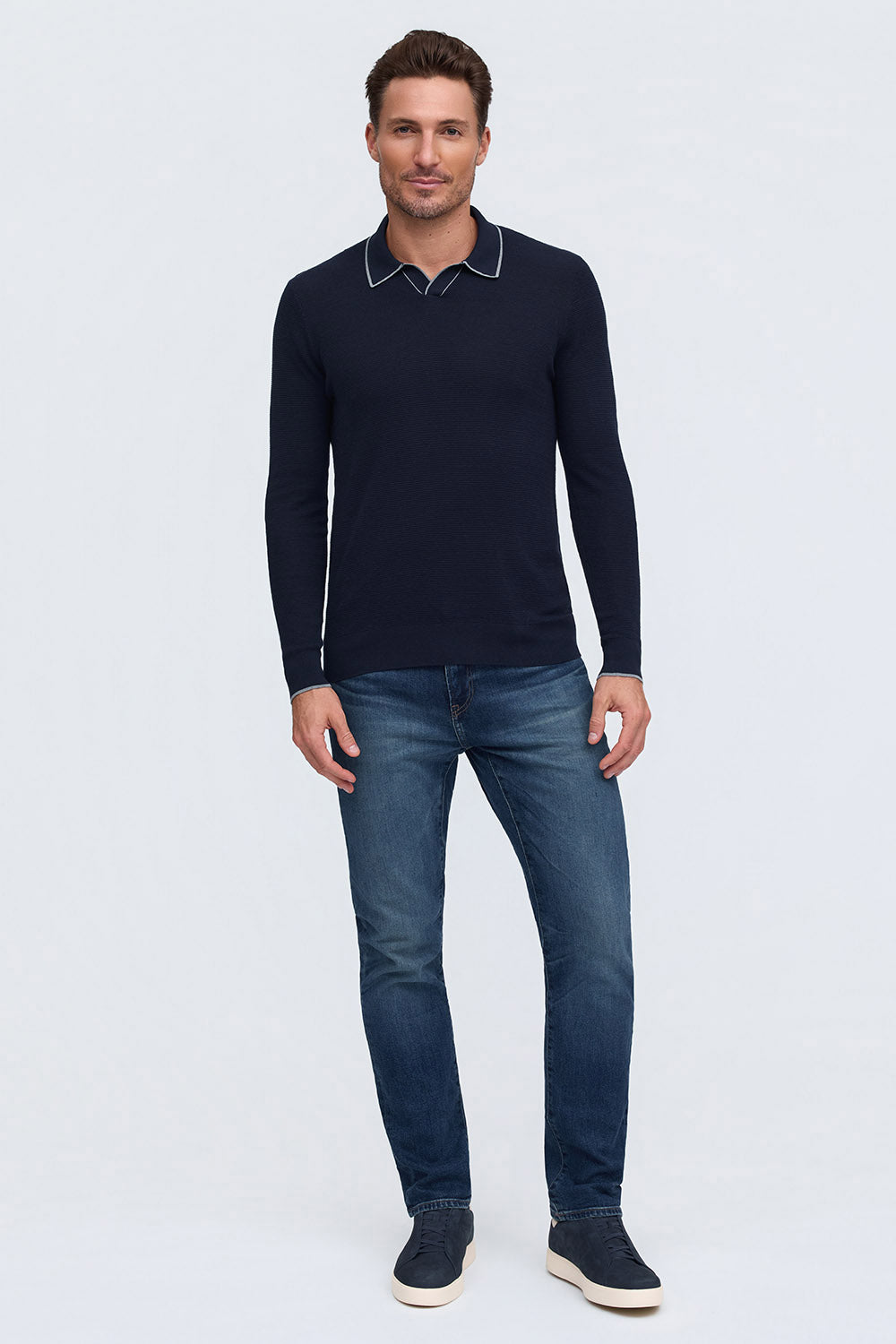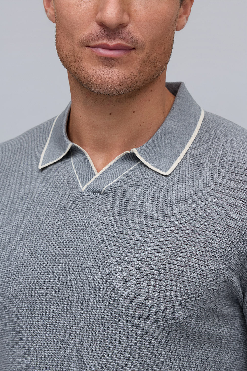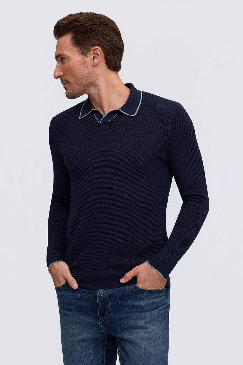 Silk-Cotton Johnny Collar Sweater