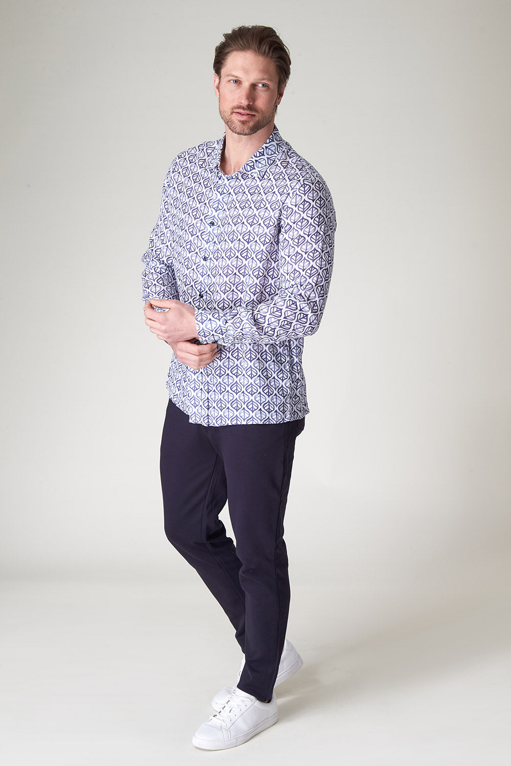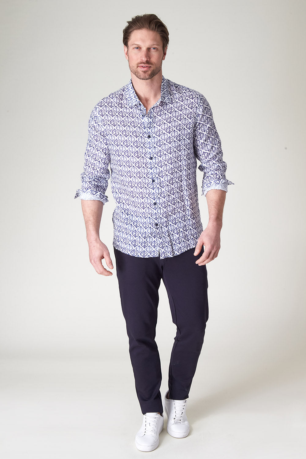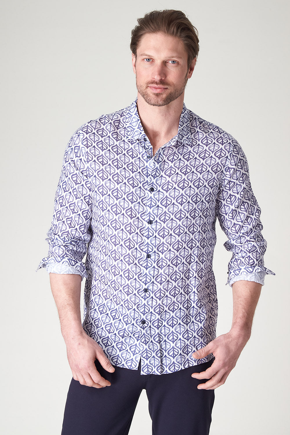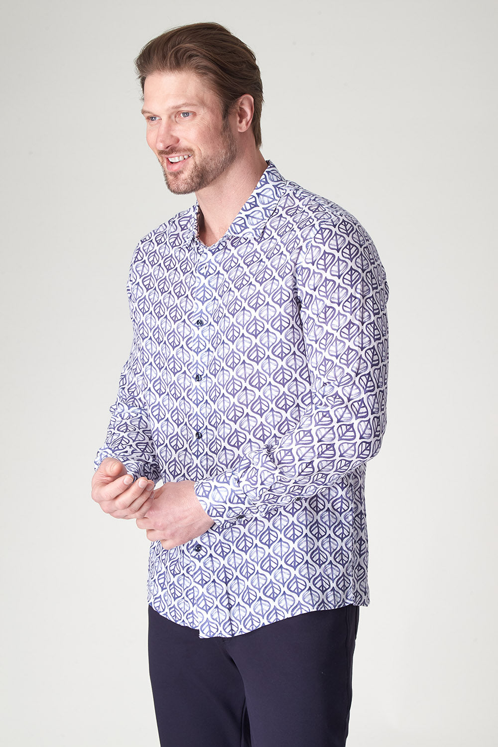 Crafted from our premium 100% linen, The Flynn is your stylish solution for warm weather days. The abstract leaf pattern adds dimensional texture and color while remaining neutral to complement whatever you pair it with.