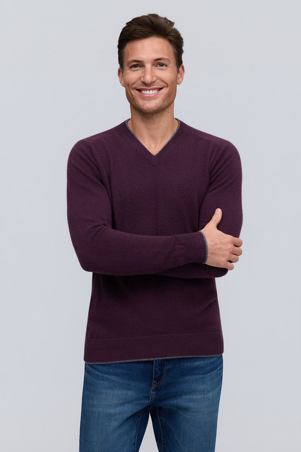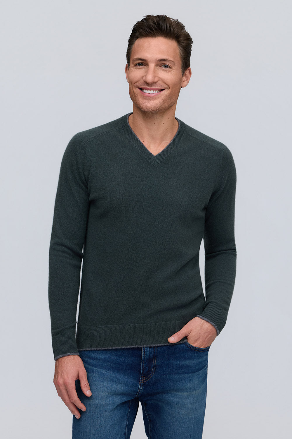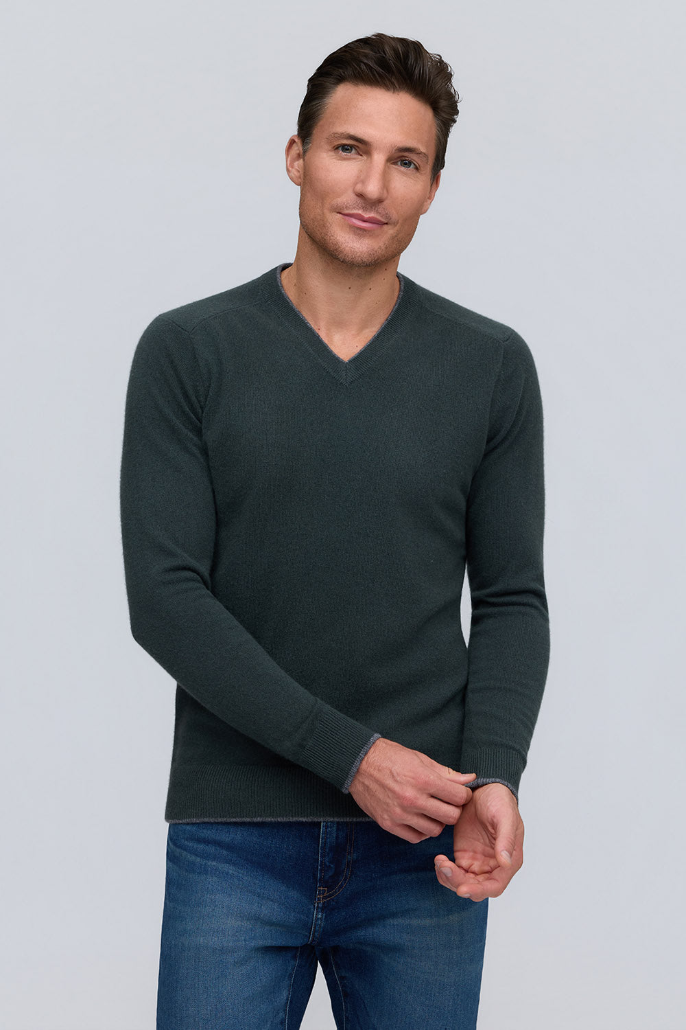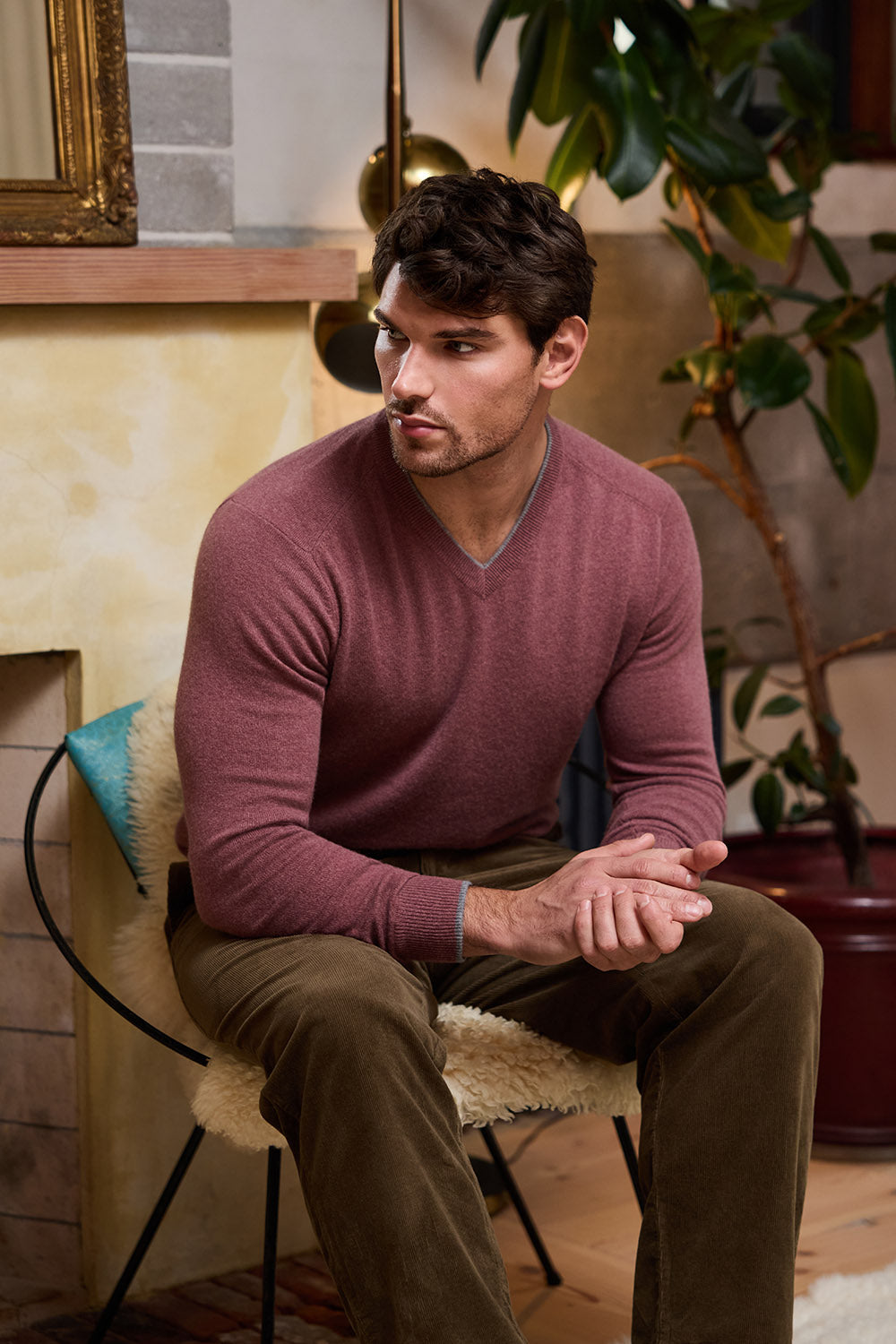 This timeless 100% cashmere v-neck sweater is a must-have for your closet. Soft and comfortable, yet slightly fitted for a polished look, The Garrett comes in an array of colors to wear alone for a casual look or layered over a button-down to the office.