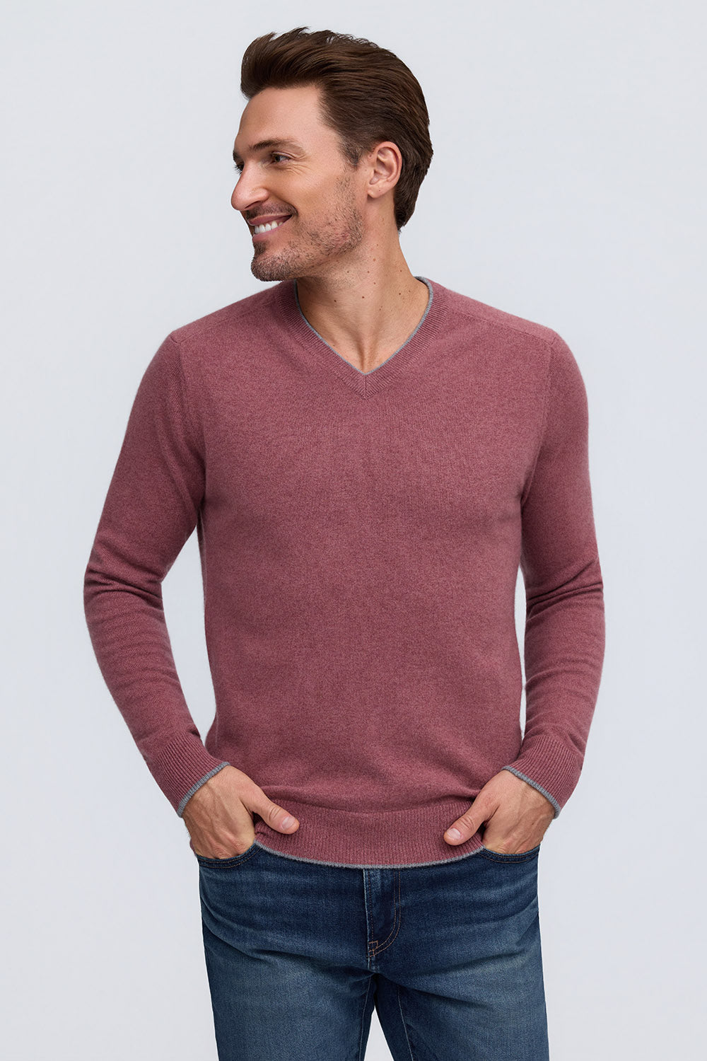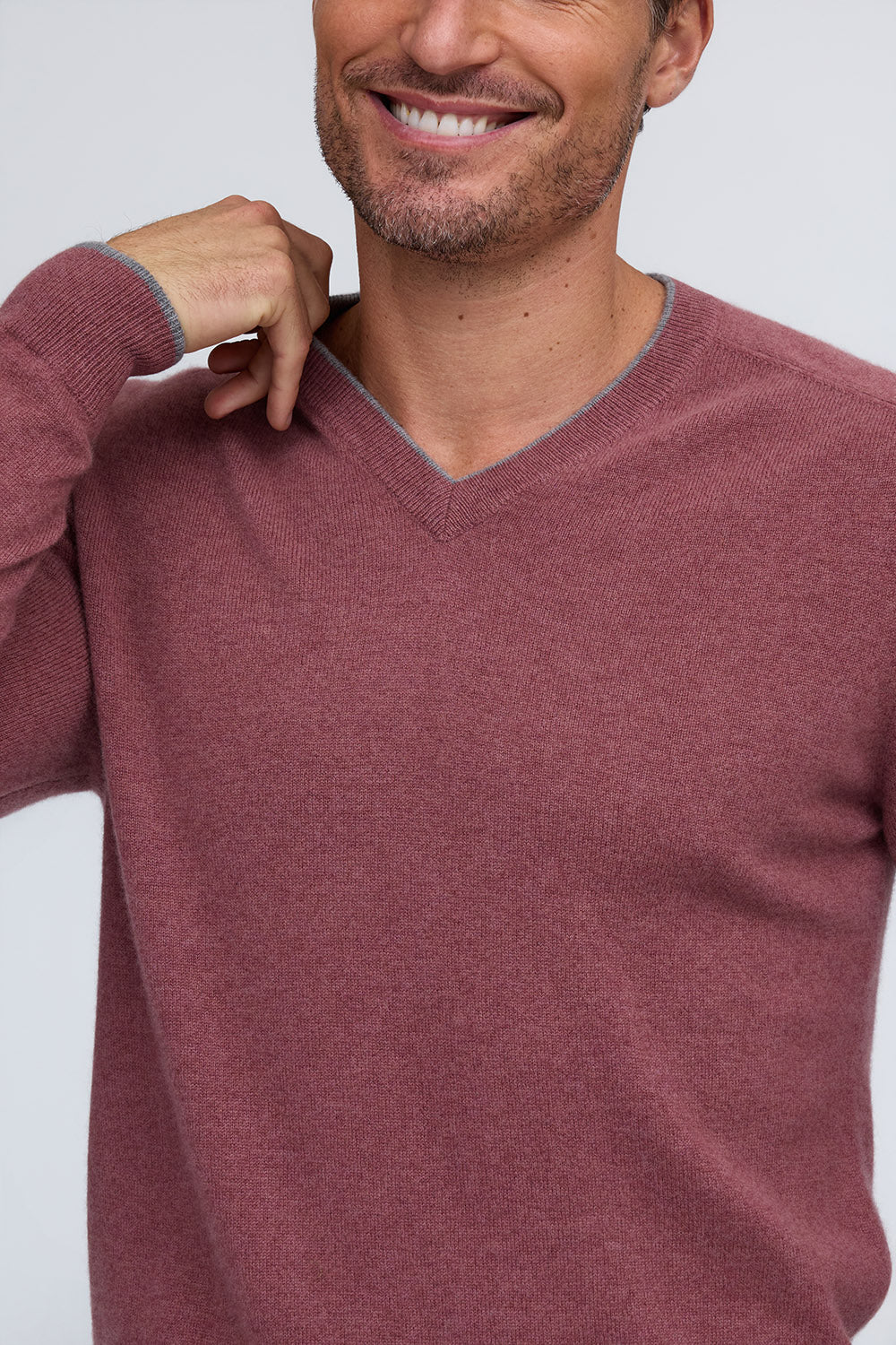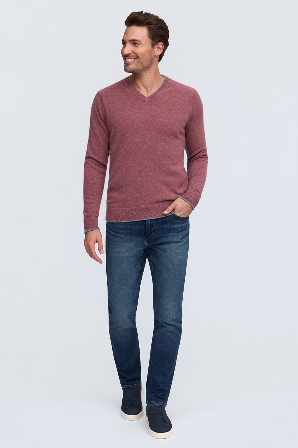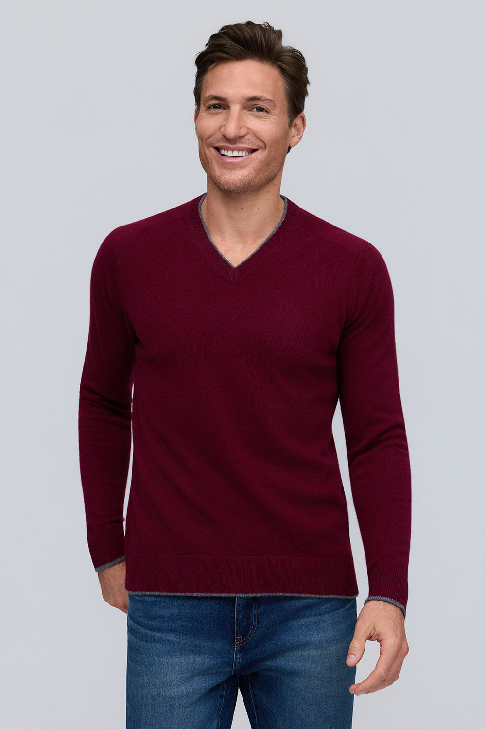 This timeless 100% cashmere v-neck sweater is a must-have for your closet. Soft and comfortable, yet slightly fitted for a polished look, The Garrett comes in an array of colors to wear alone for a casual look or layered over a button-down to the office.