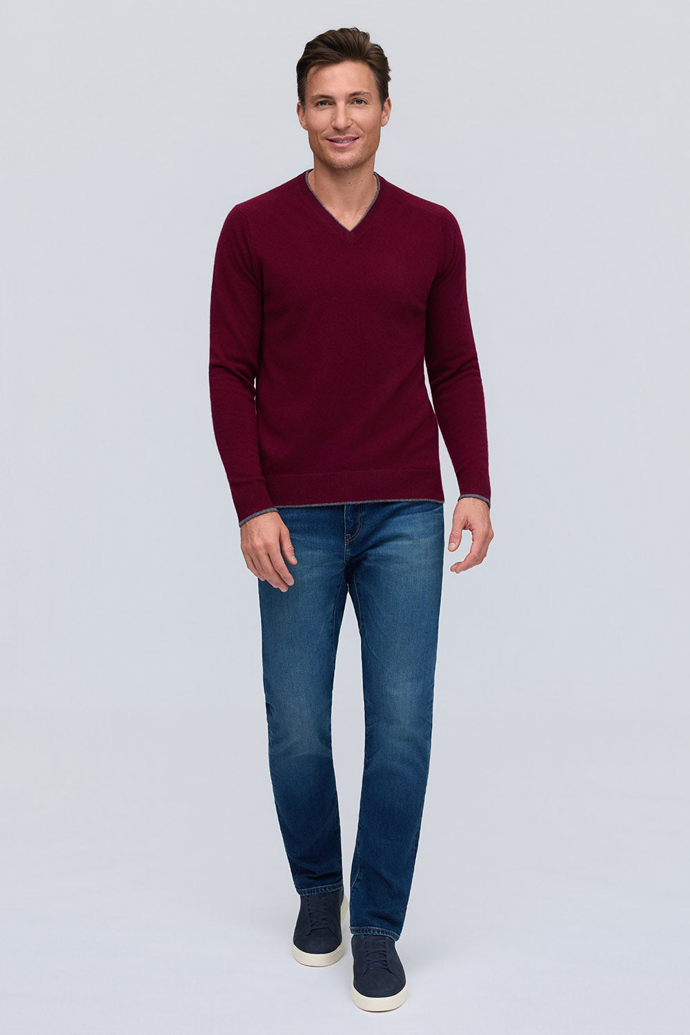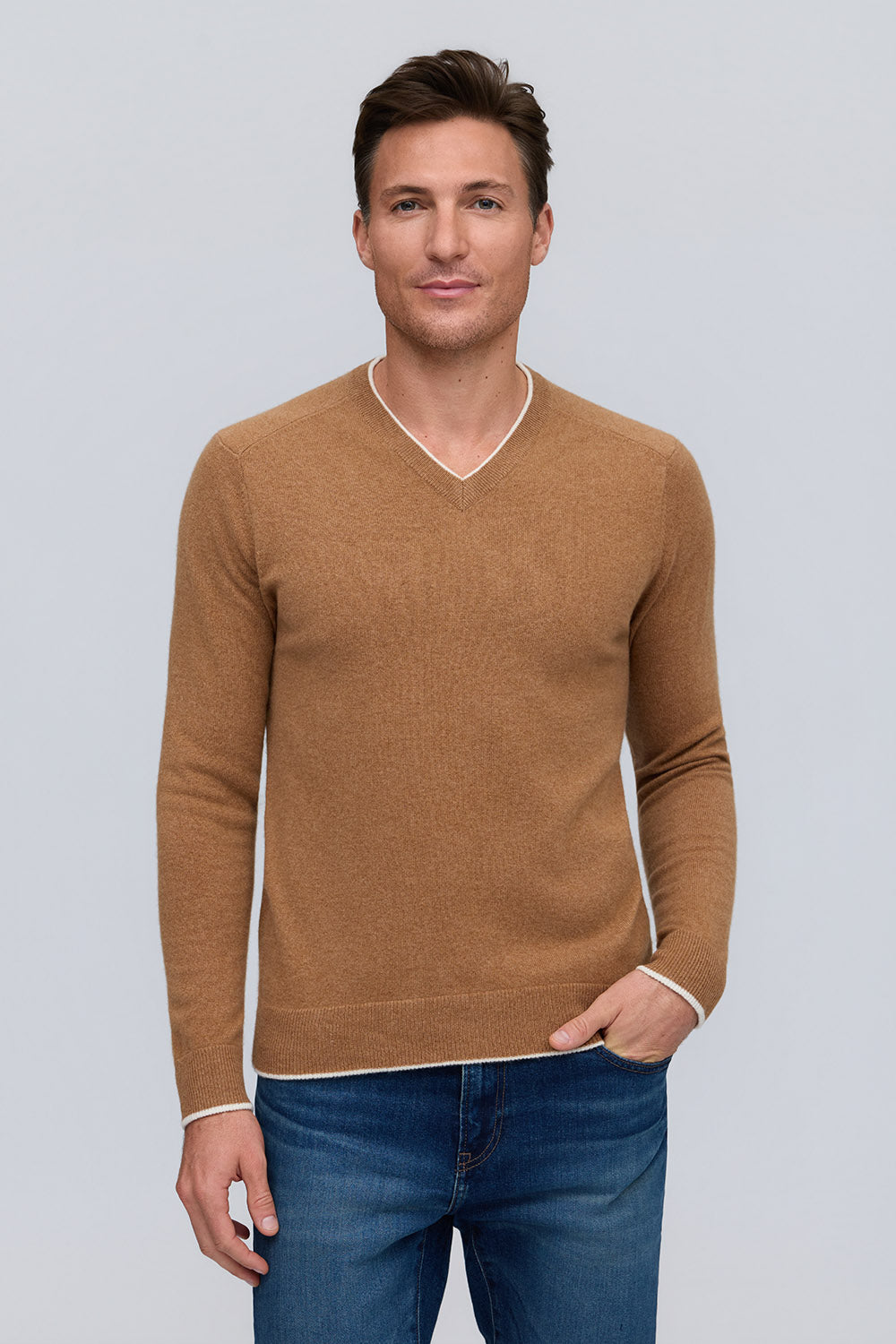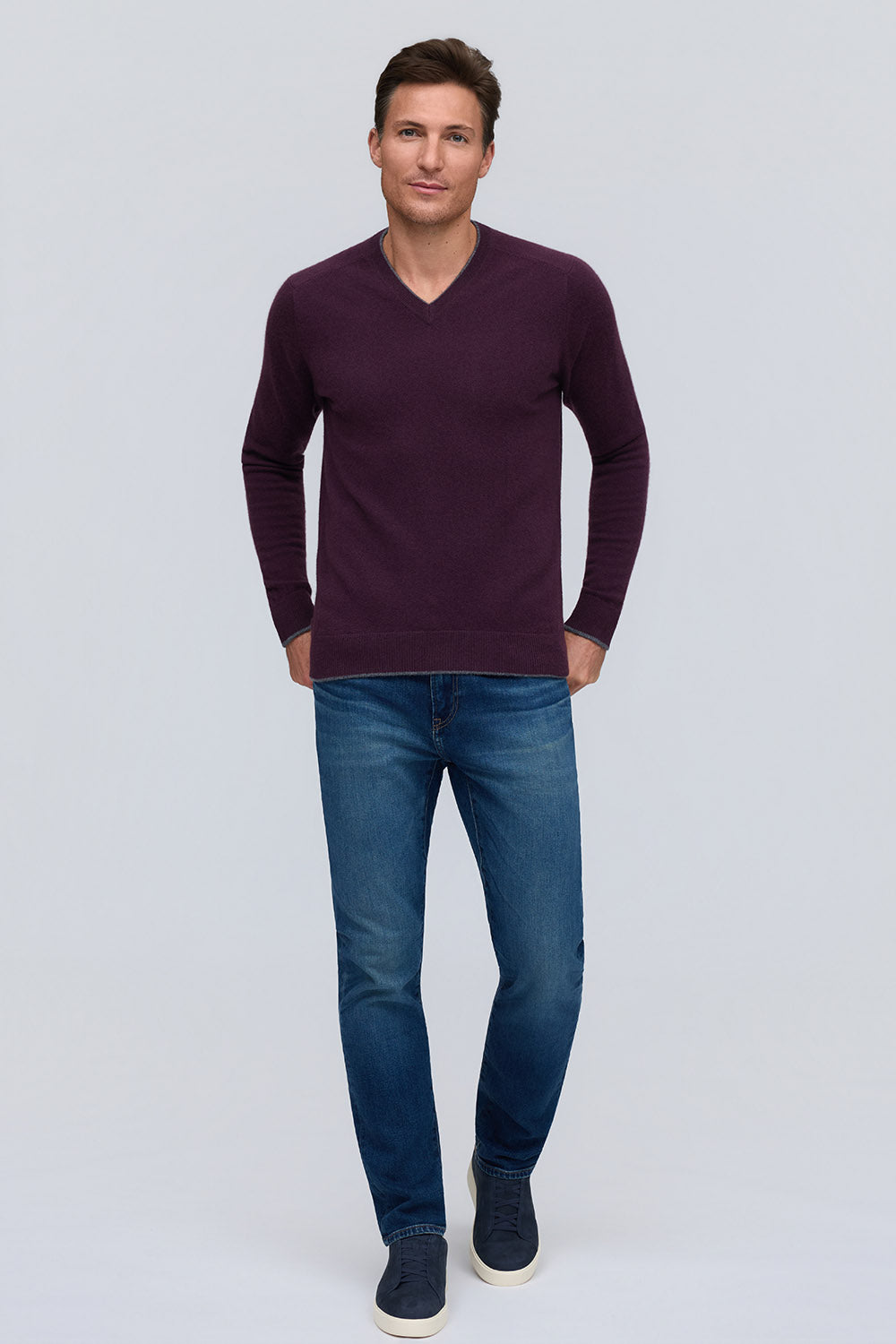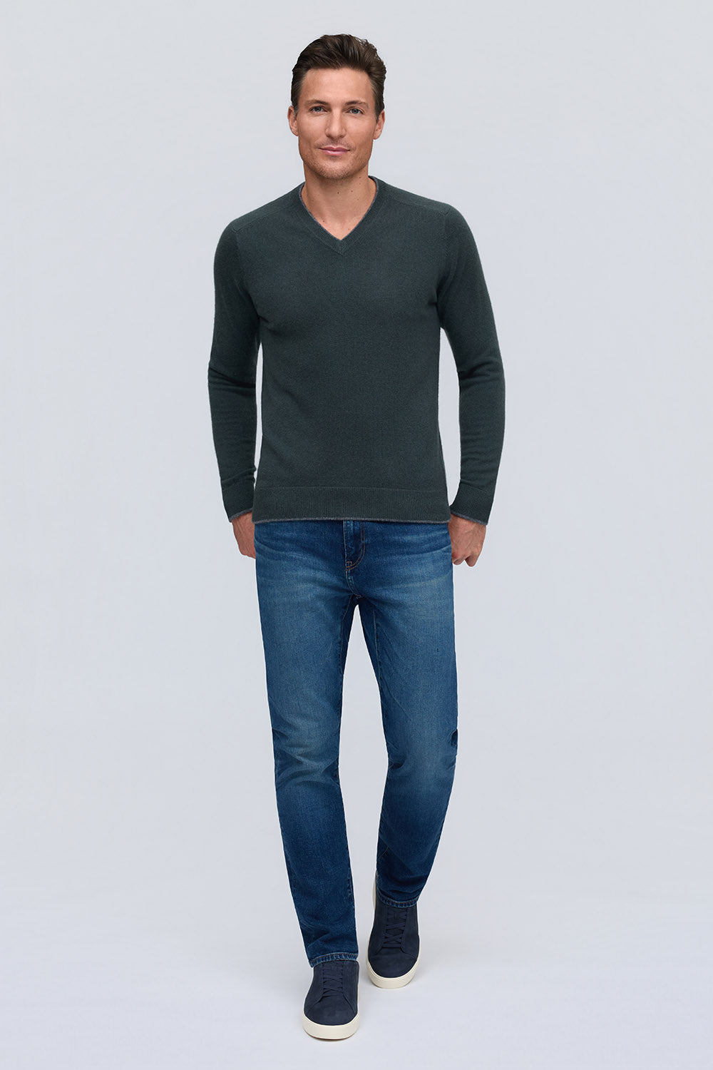 This timeless 100% cashmere v-neck sweater is a must-have for your closet. Soft and comfortable, yet slightly fitted for a polished look, The Garrett comes in an array of colors to wear alone for a casual look or layered over a button-down to the office.