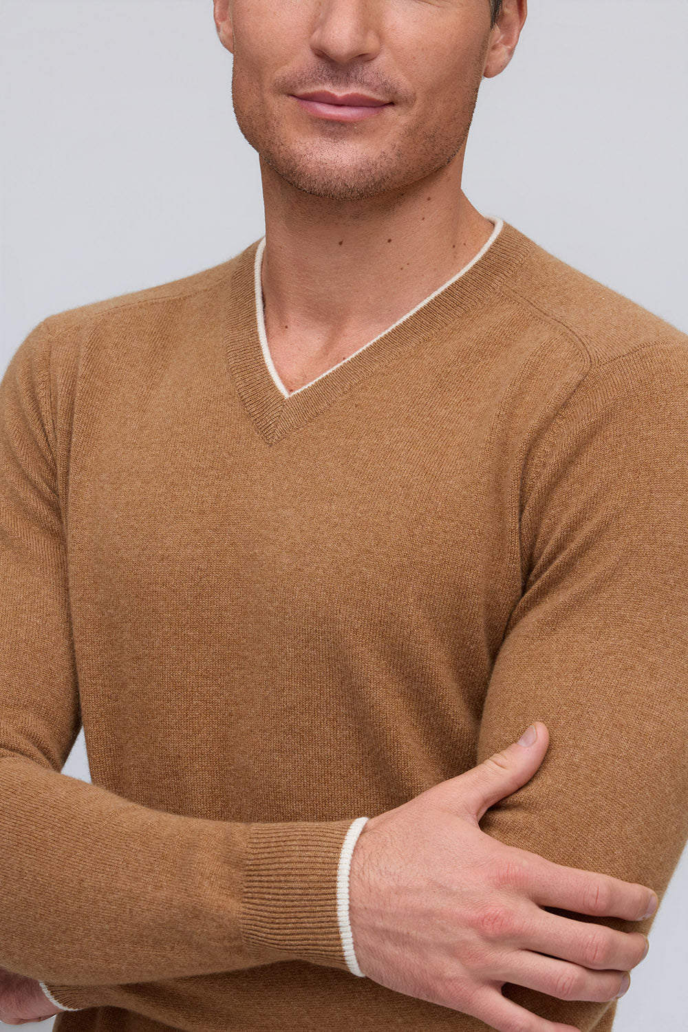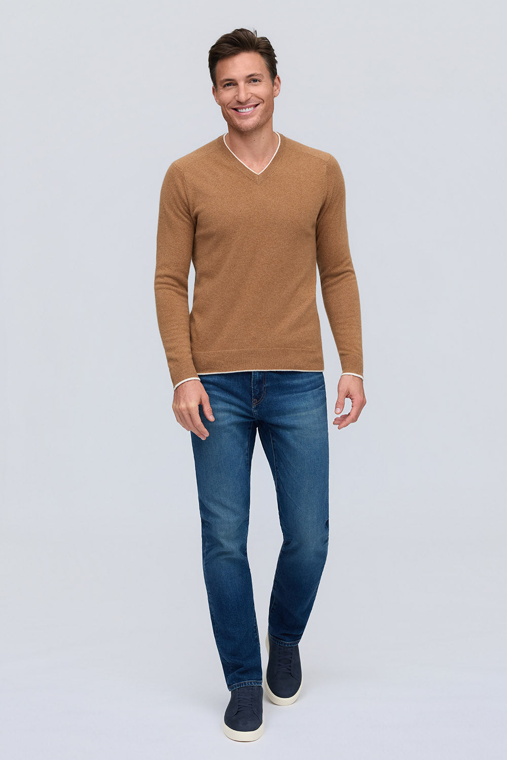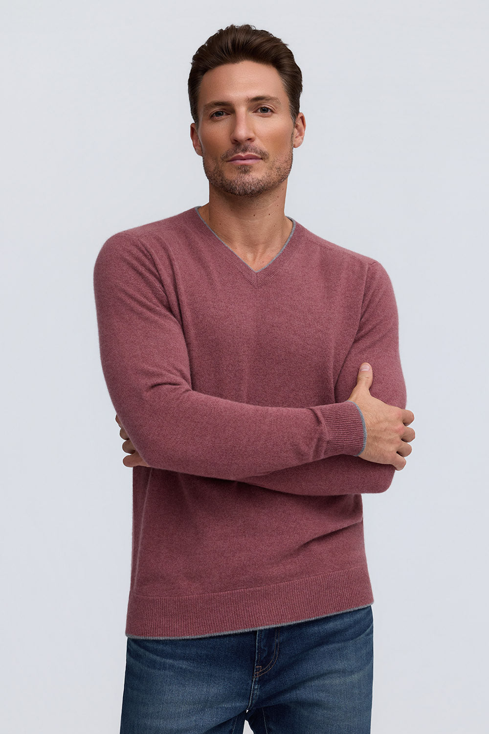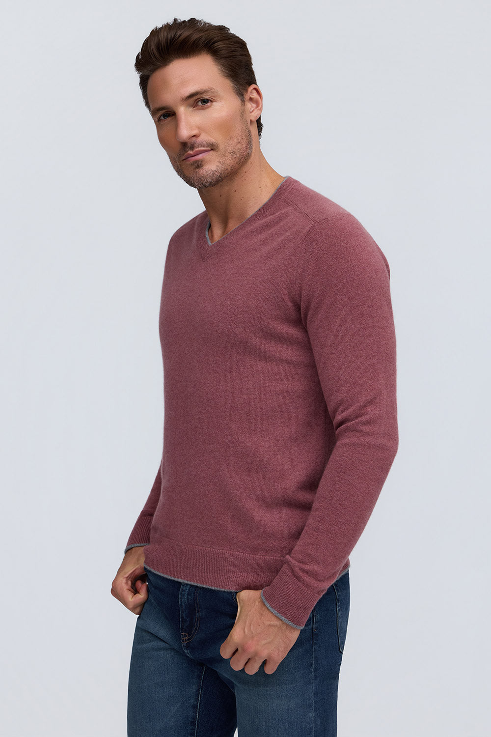 This timeless 100% cashmere v-neck sweater is a must-have for your closet. Soft and comfortable, yet slightly fitted for a polished look, The Garrett comes in an array of colors to wear alone for a casual look or layered over a button-down to the office.