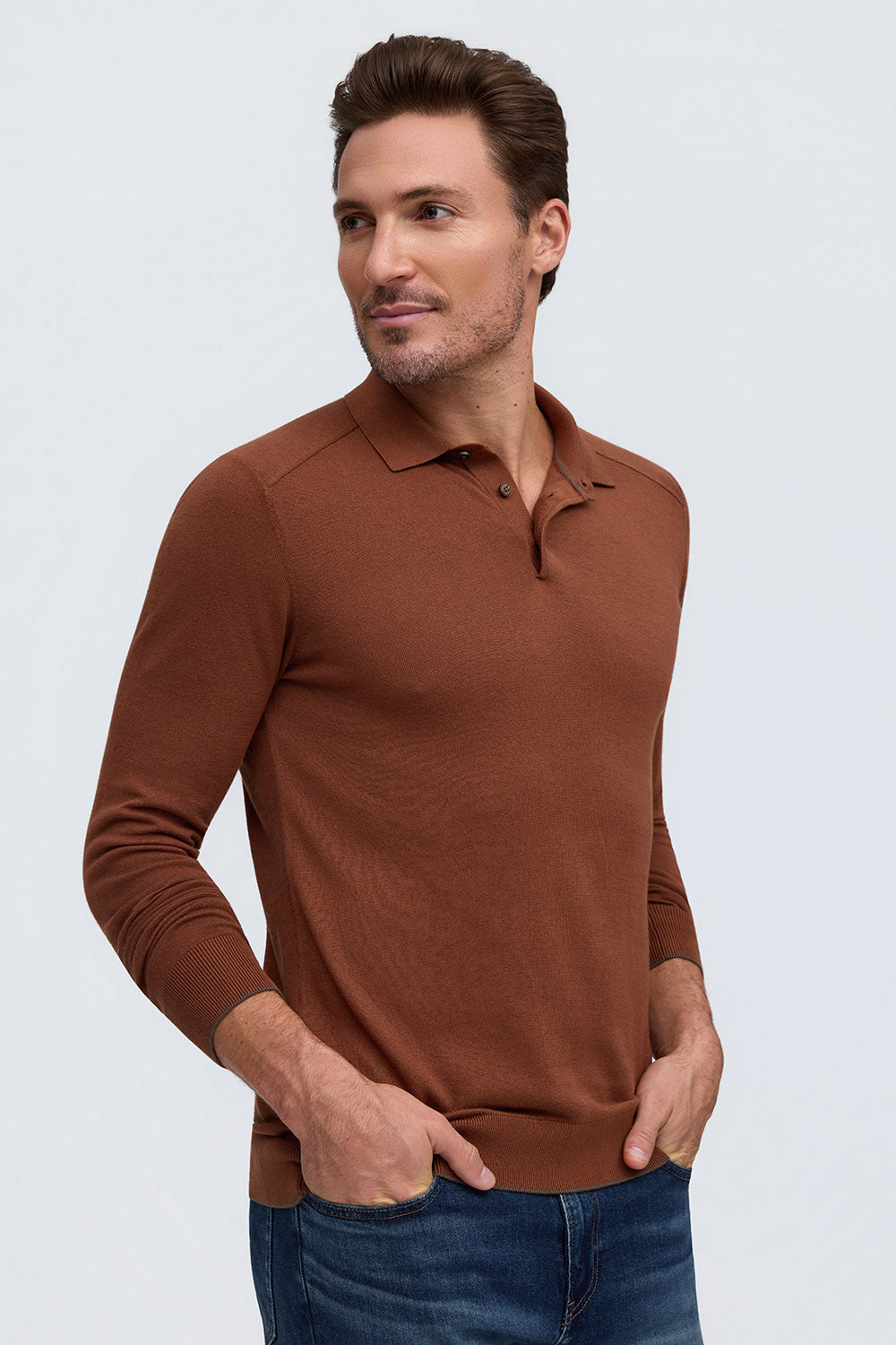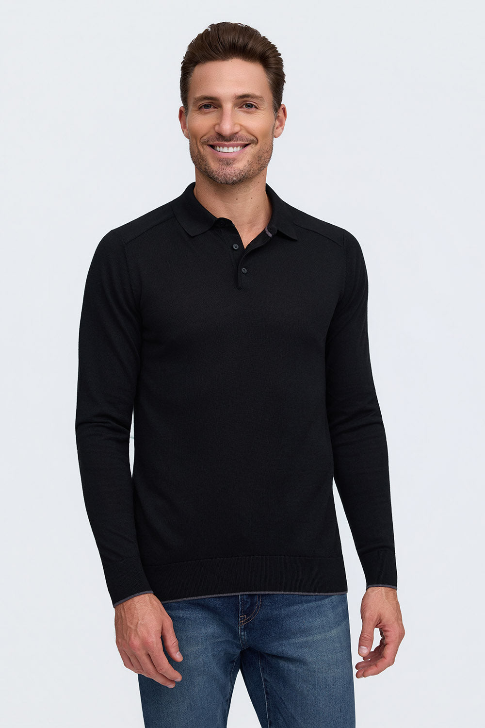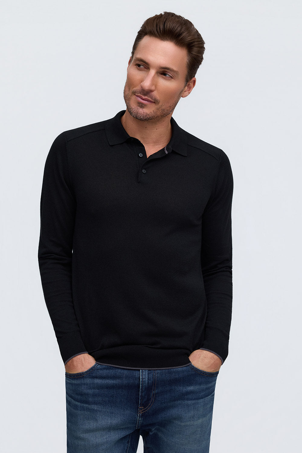 A modern take on the timeless polo. This long-sleeve jersey style is crafted from a soft, breathable 50% cotton, 50% modal blend for lightweight, all-day comfort. Finished with a classic buttoned collar, it’s perfect for refined, everyday wear. for timeless, elevated style.