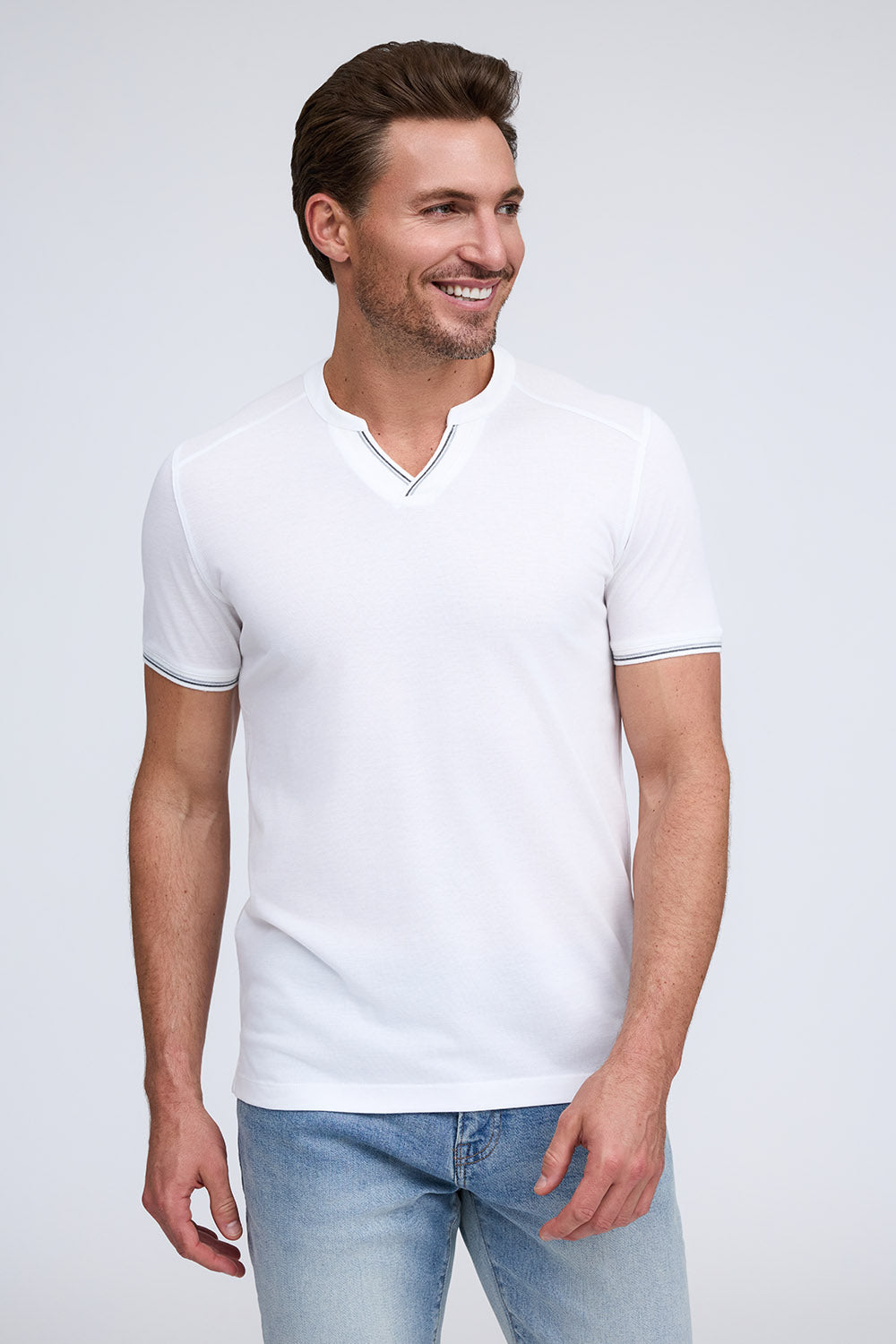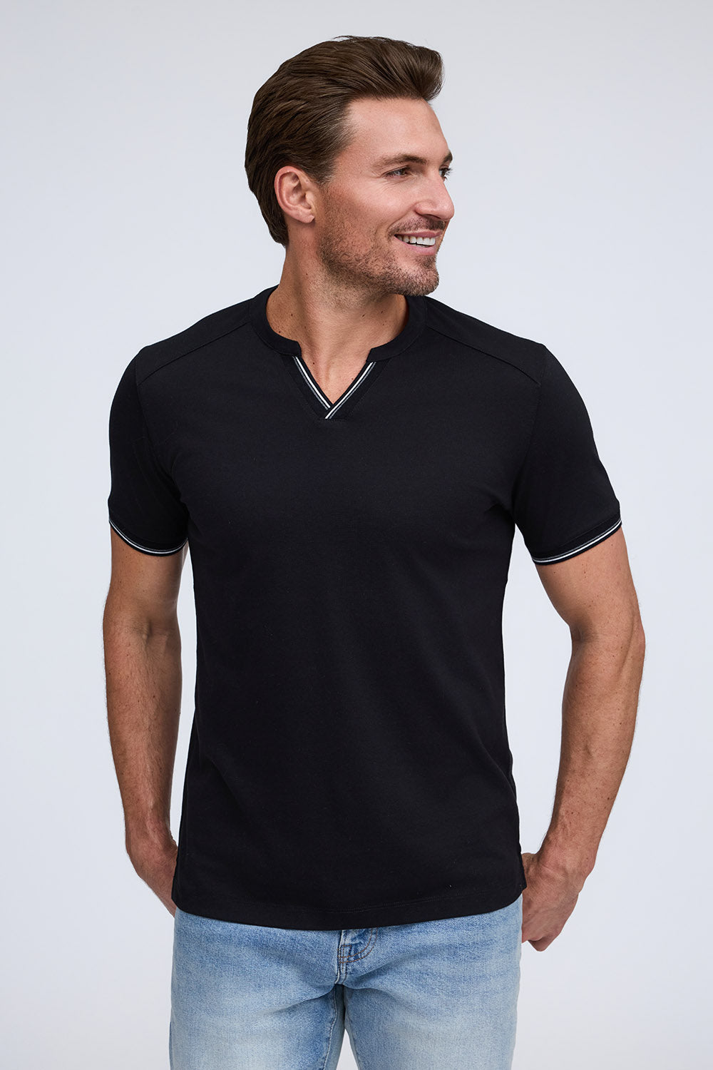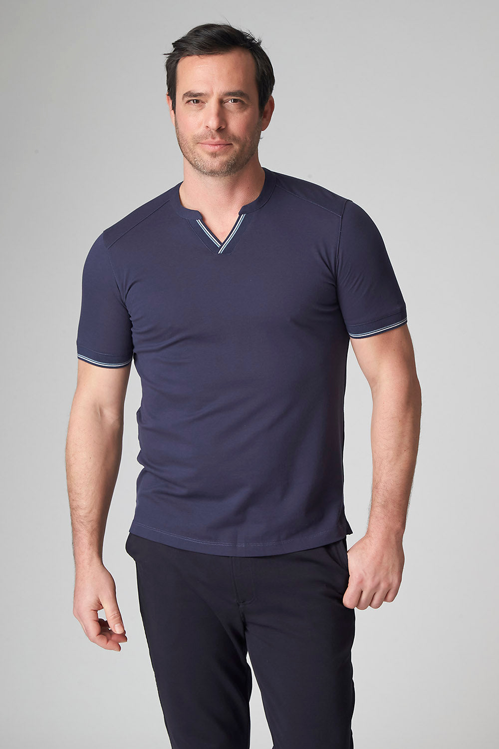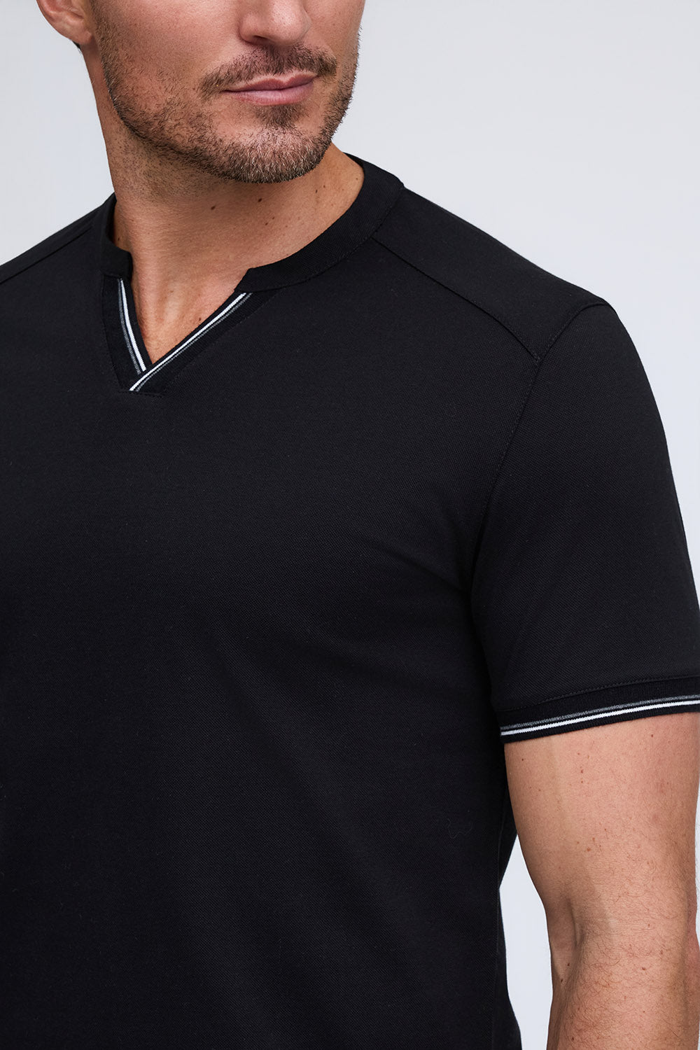 We combined the v-neck and henley styles to create this pique cotton shirt with a stylish and sporty look. Made from our Aqua Cotton material, The Heath delivers comfort and fit with modern fashion detailing on the cuff and placket.