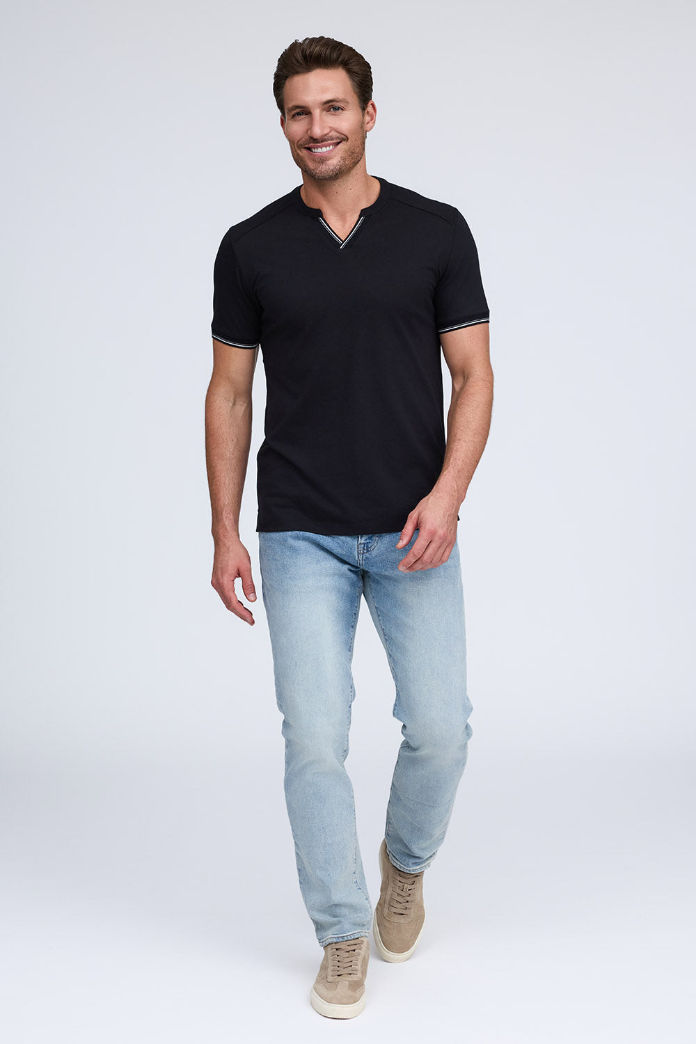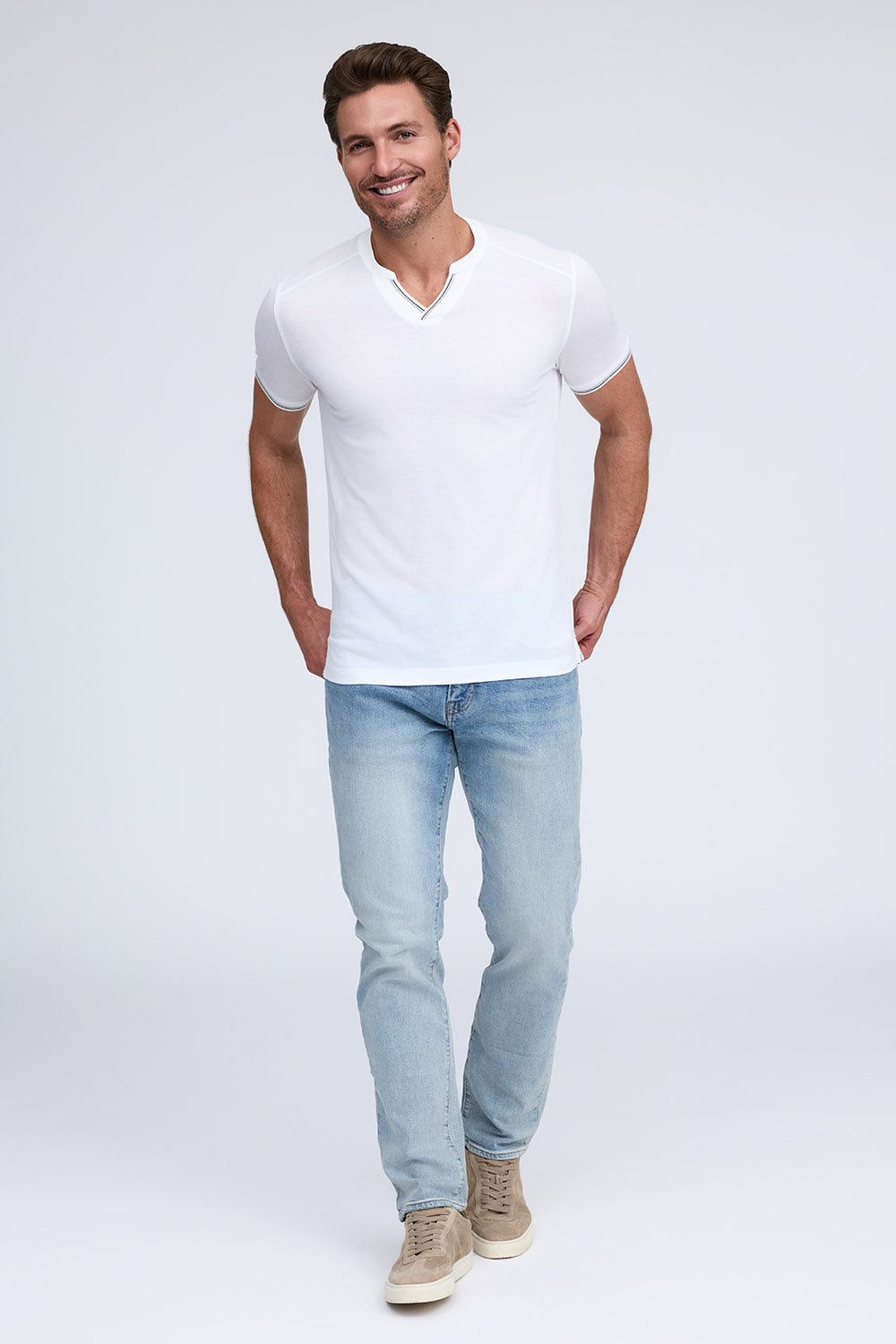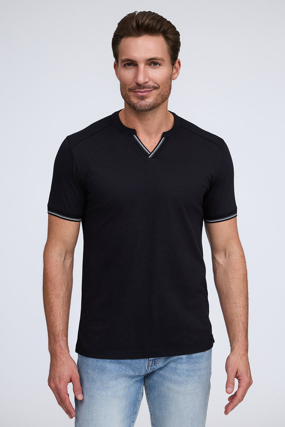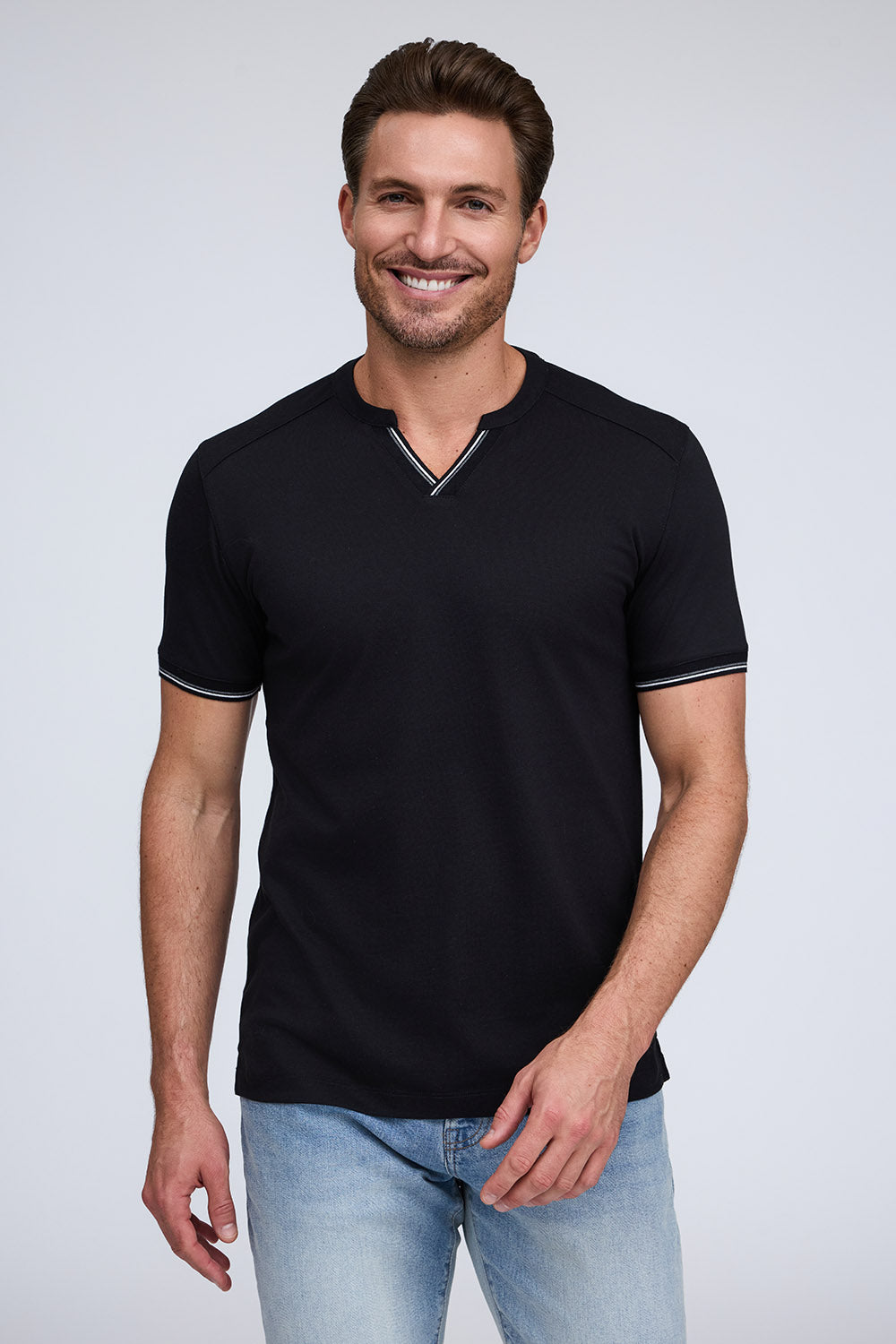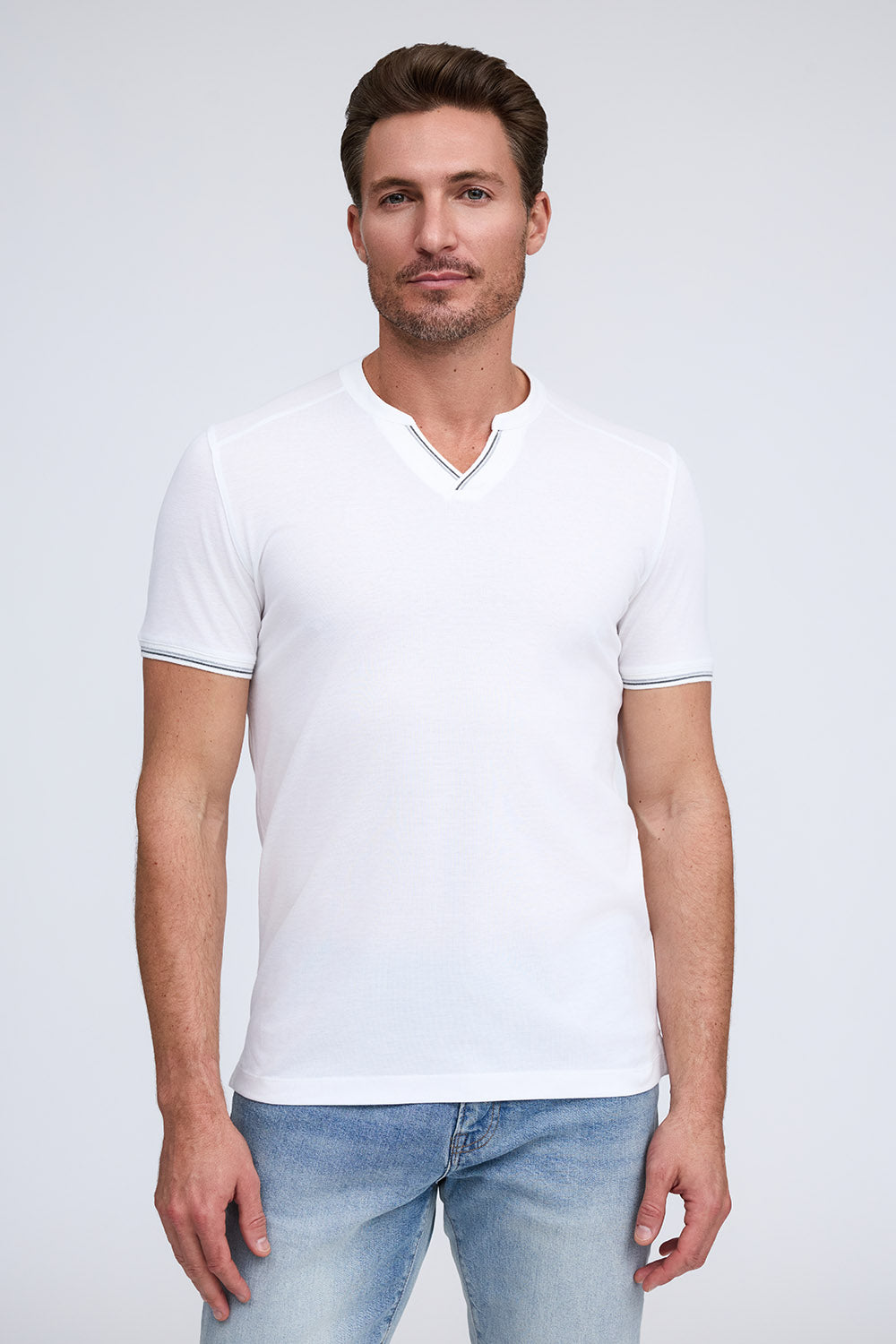 We combined the v-neck and henley styles to create this pique cotton shirt with a stylish and sporty look. Made from our Aqua Cotton material, The Heath delivers comfort and fit with modern fashion detailing on the cuff and placket.