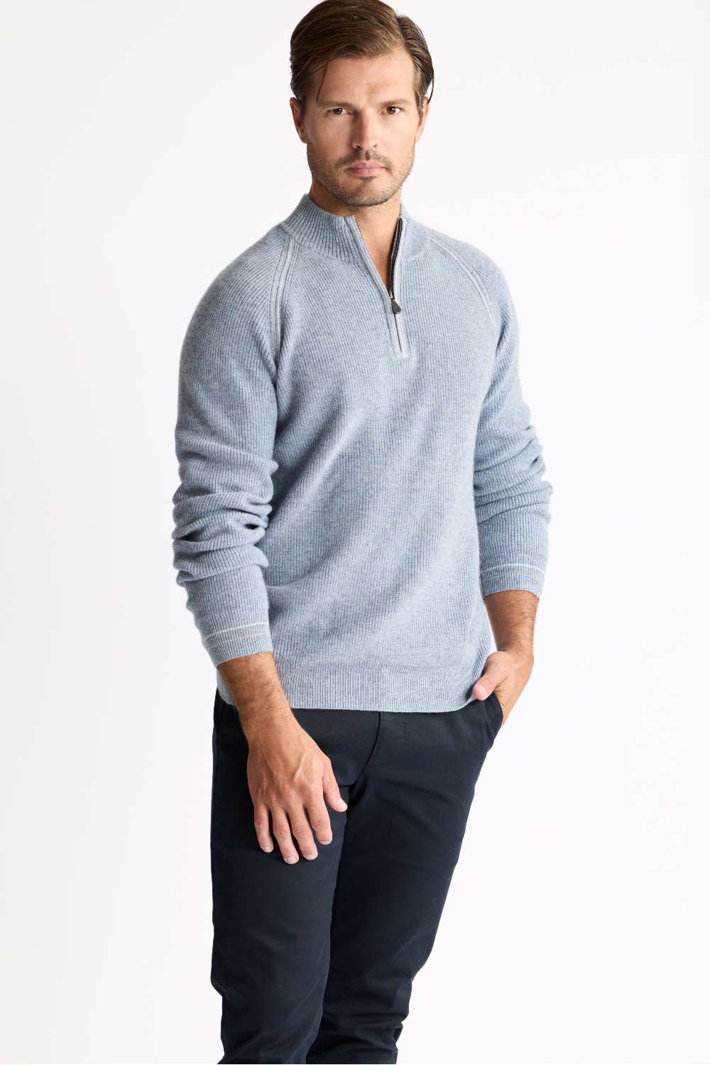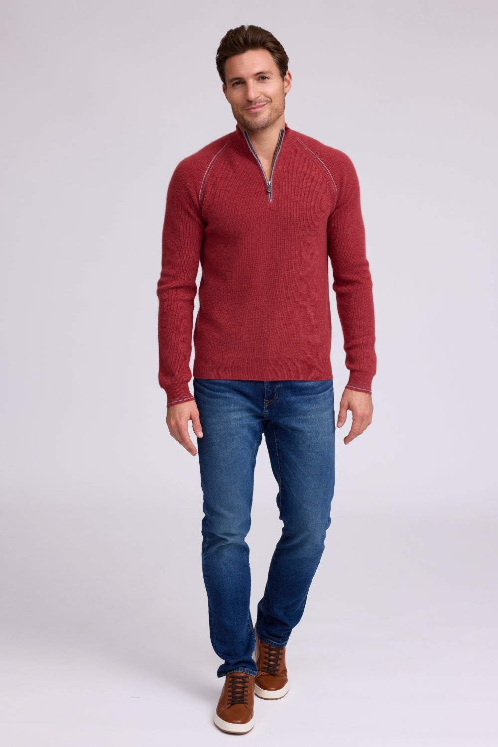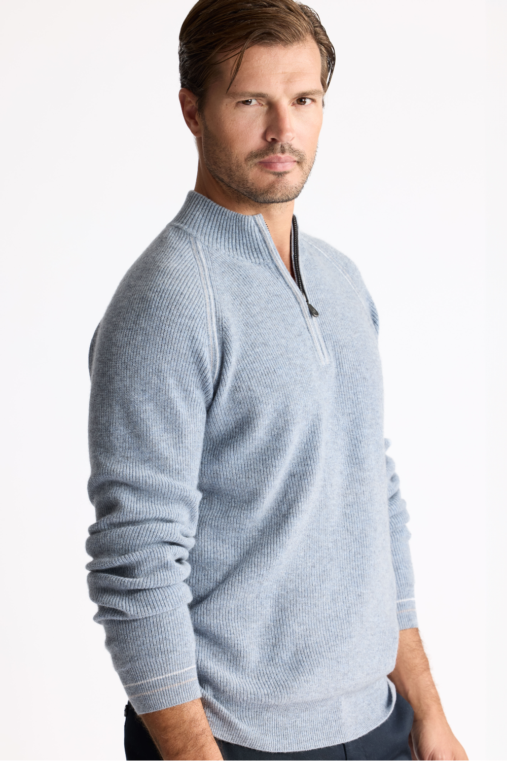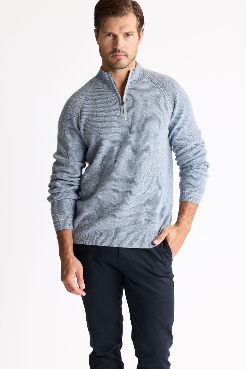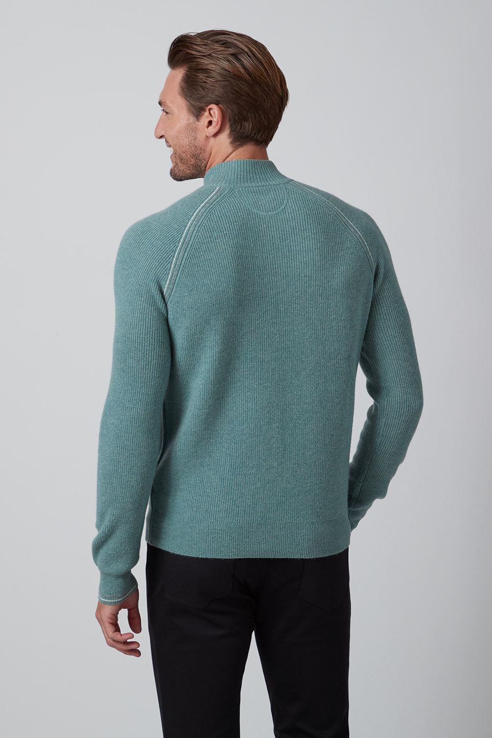 We didn't skimp on the details when we created The Holden sweater. Made from luxurious 100% pure cashmere for incredible softness. This mock zip neck is an English rib knit with subtle color trim on the placket, cuff, and shoulders that are also fashioned for a better fit. This handsome sweater will take you from the work week to the weekend in style.