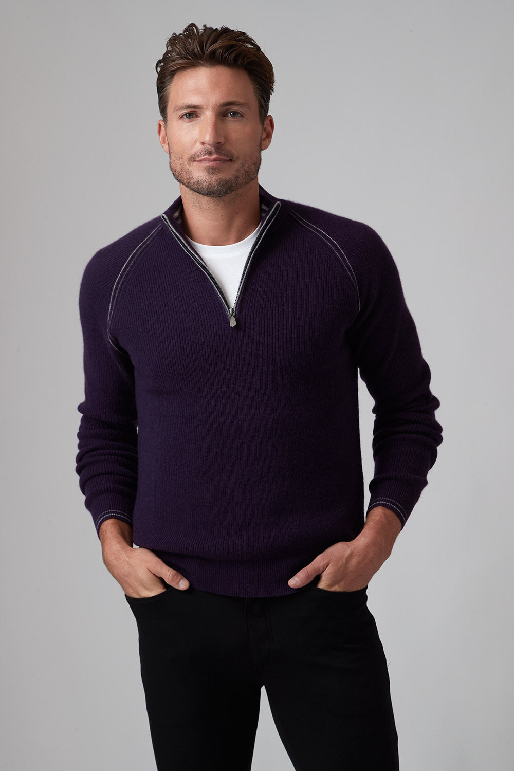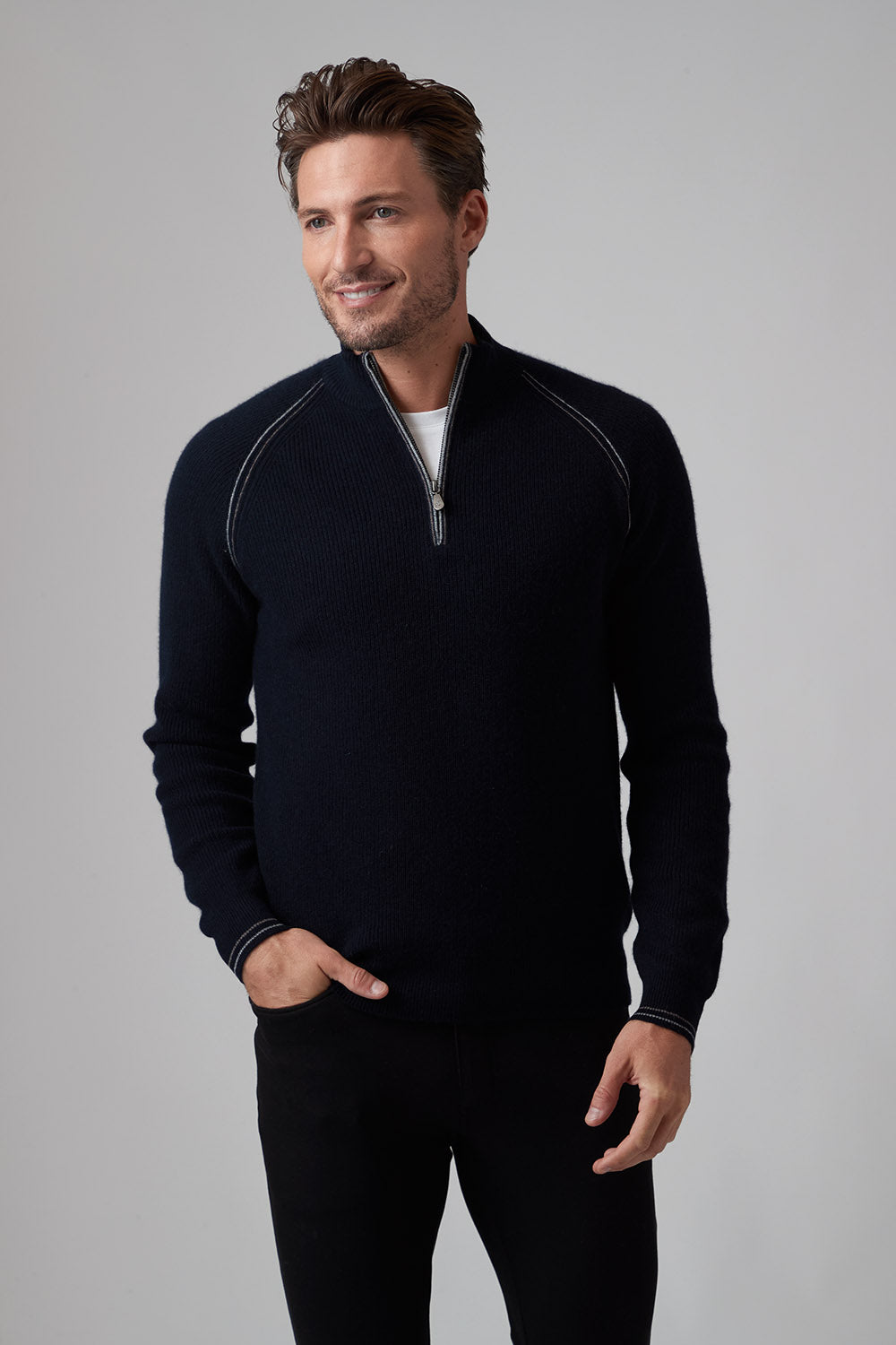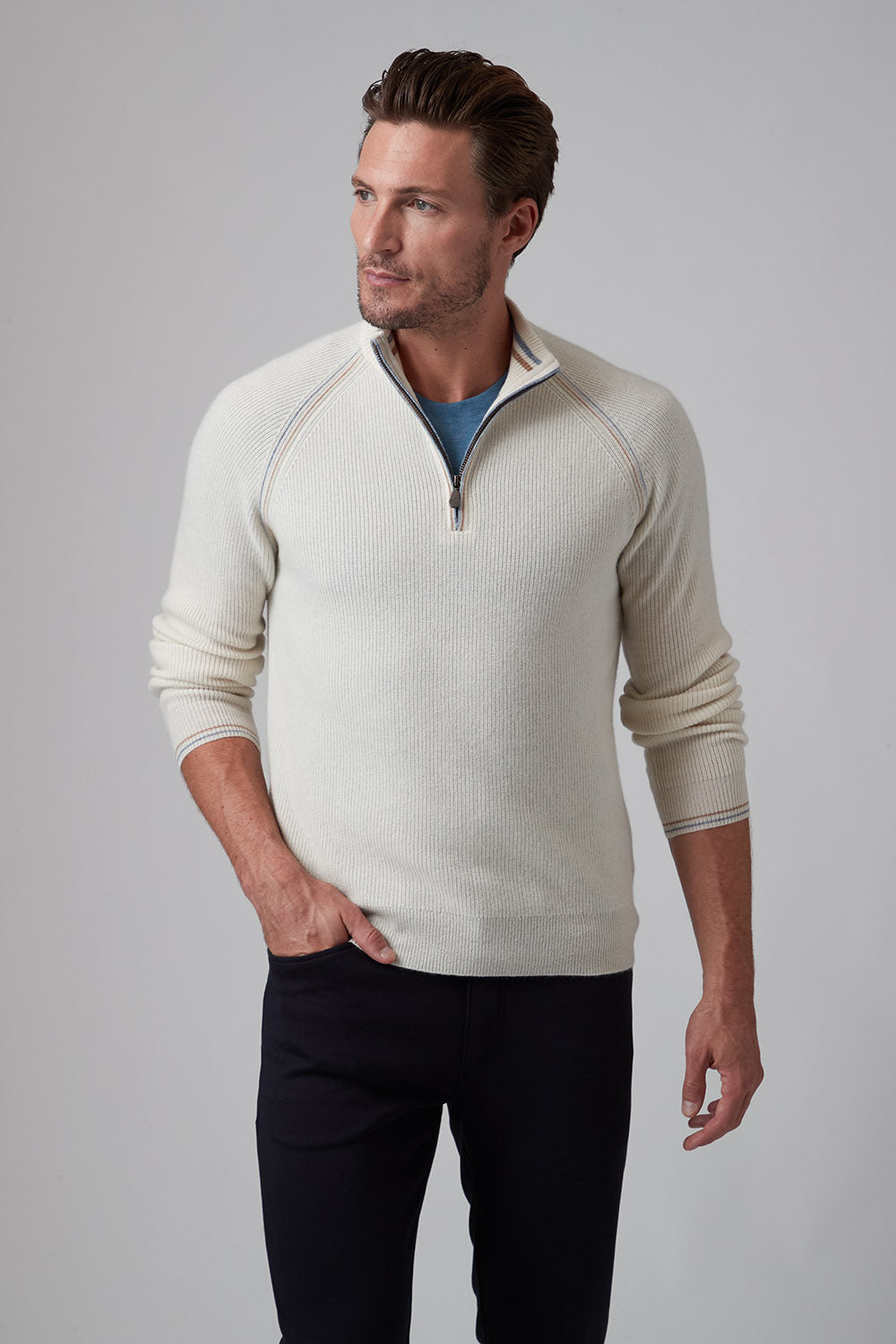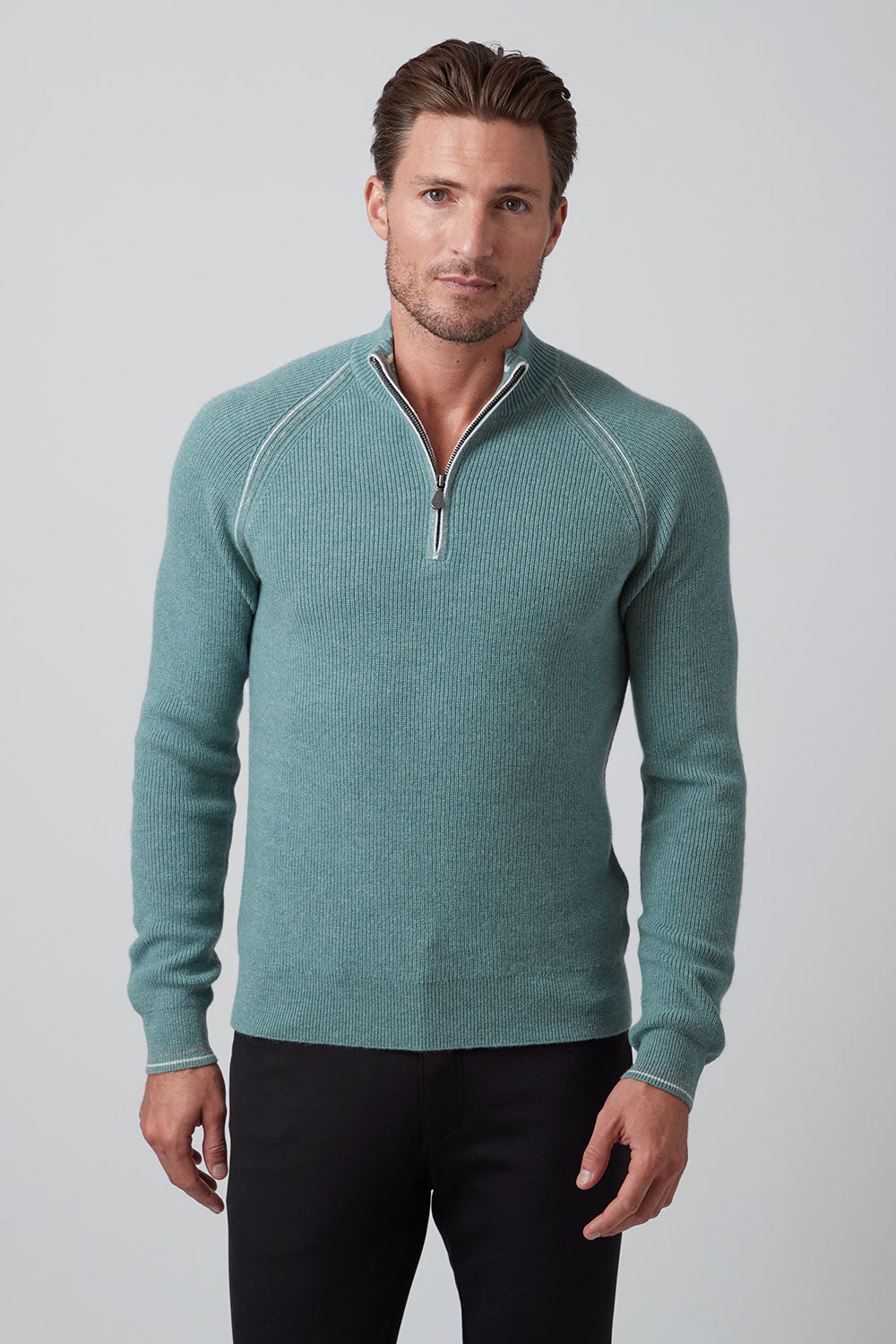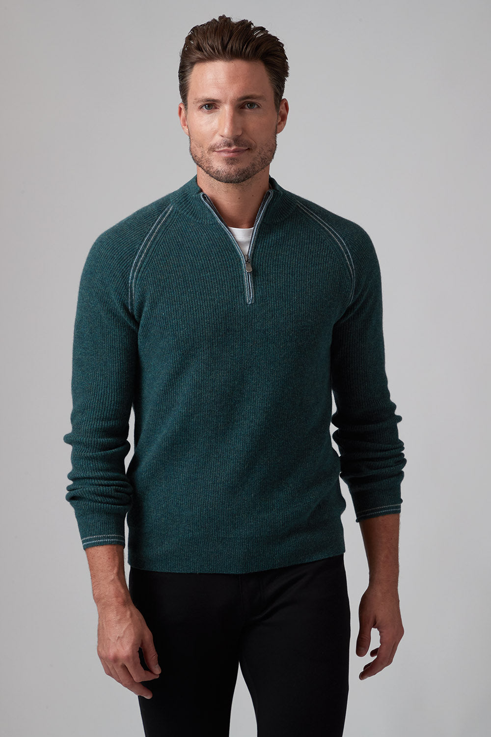 We didn't skimp on the details when we created The Holden sweater. Made from luxurious 100% pure cashmere for incredible softness. This mock zip neck is an English rib knit with subtle color trim on the placket, cuff, and shoulders that are also fashioned for a better fit. This handsome sweater will take you from the work week to the weekend in style.