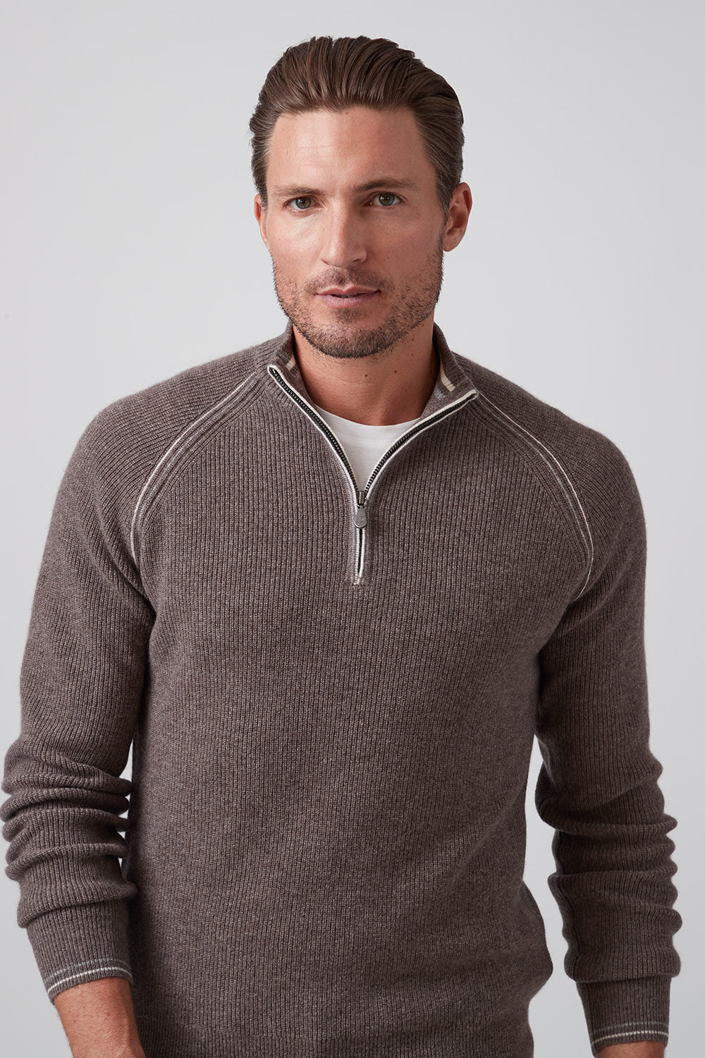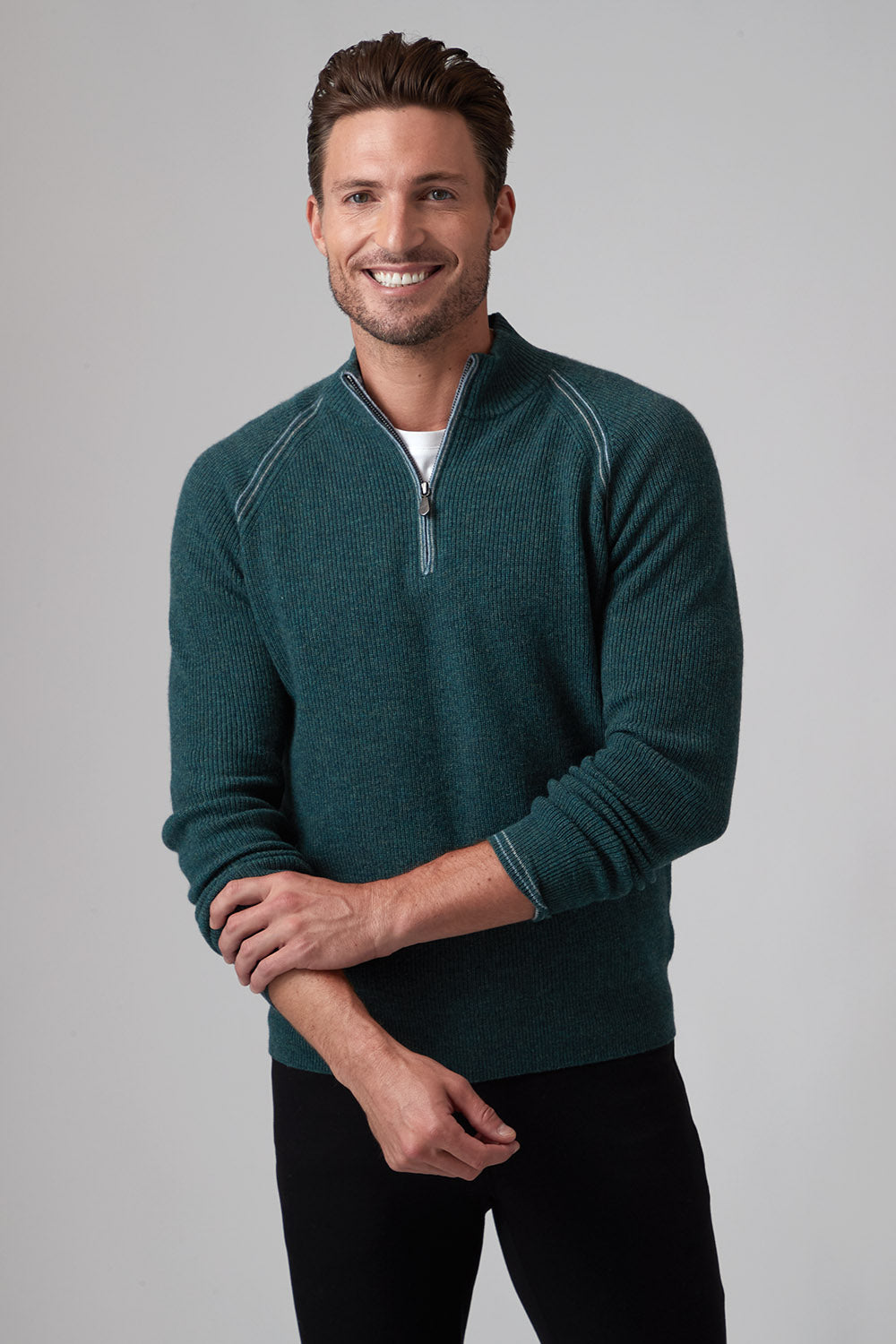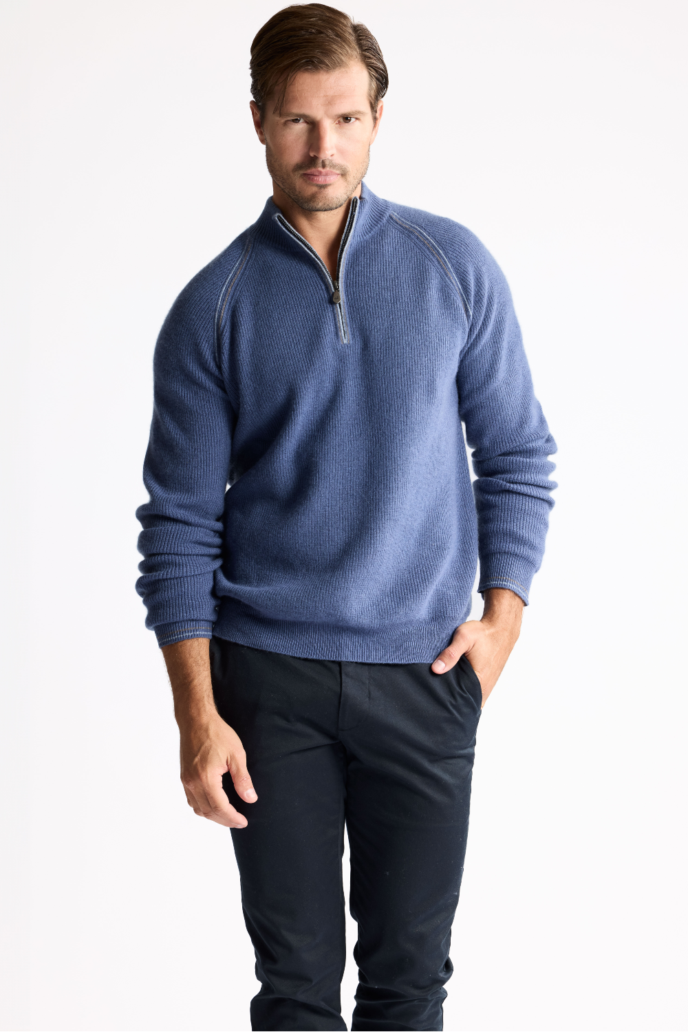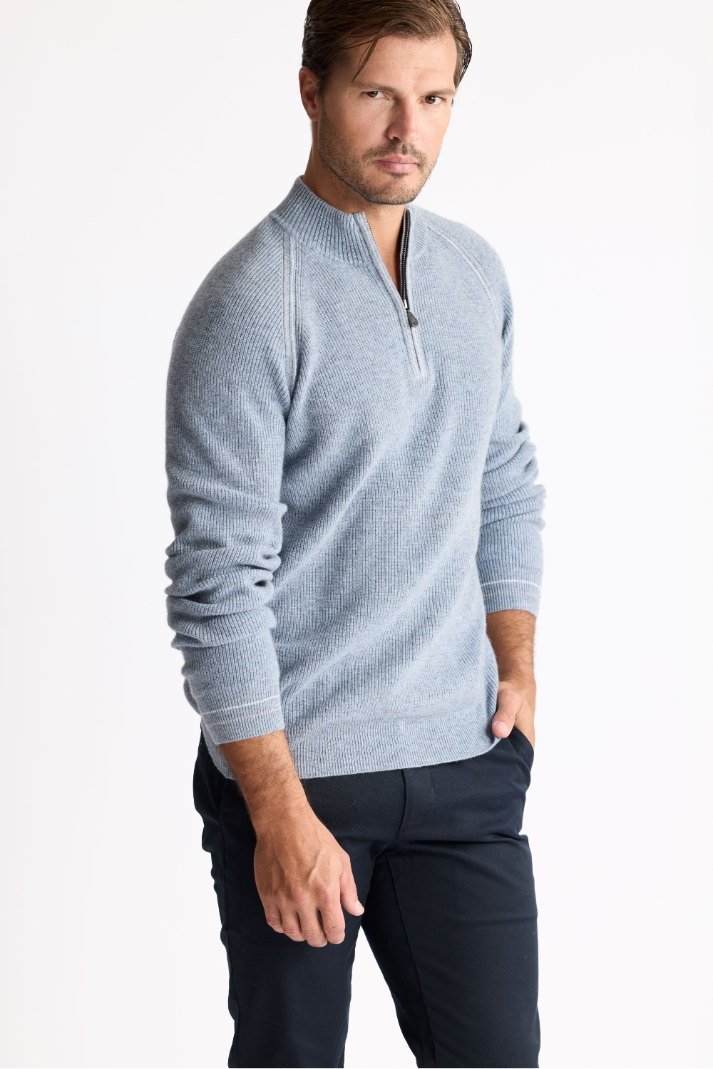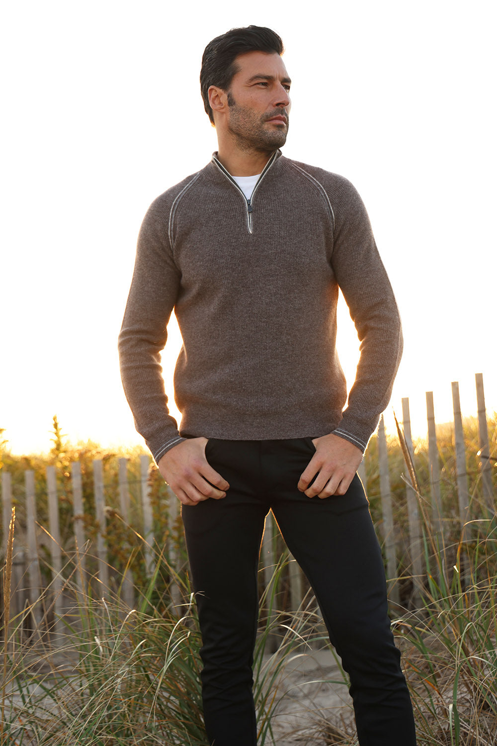 We didn't skimp on the details when we created The Holden sweater. Made from luxurious 100% pure cashmere for incredible softness. This mock zip neck is an English rib knit with subtle color trim on the placket, cuff, and shoulders that are also fashioned for a better fit. This handsome sweater will take you from the work week to the weekend in style.