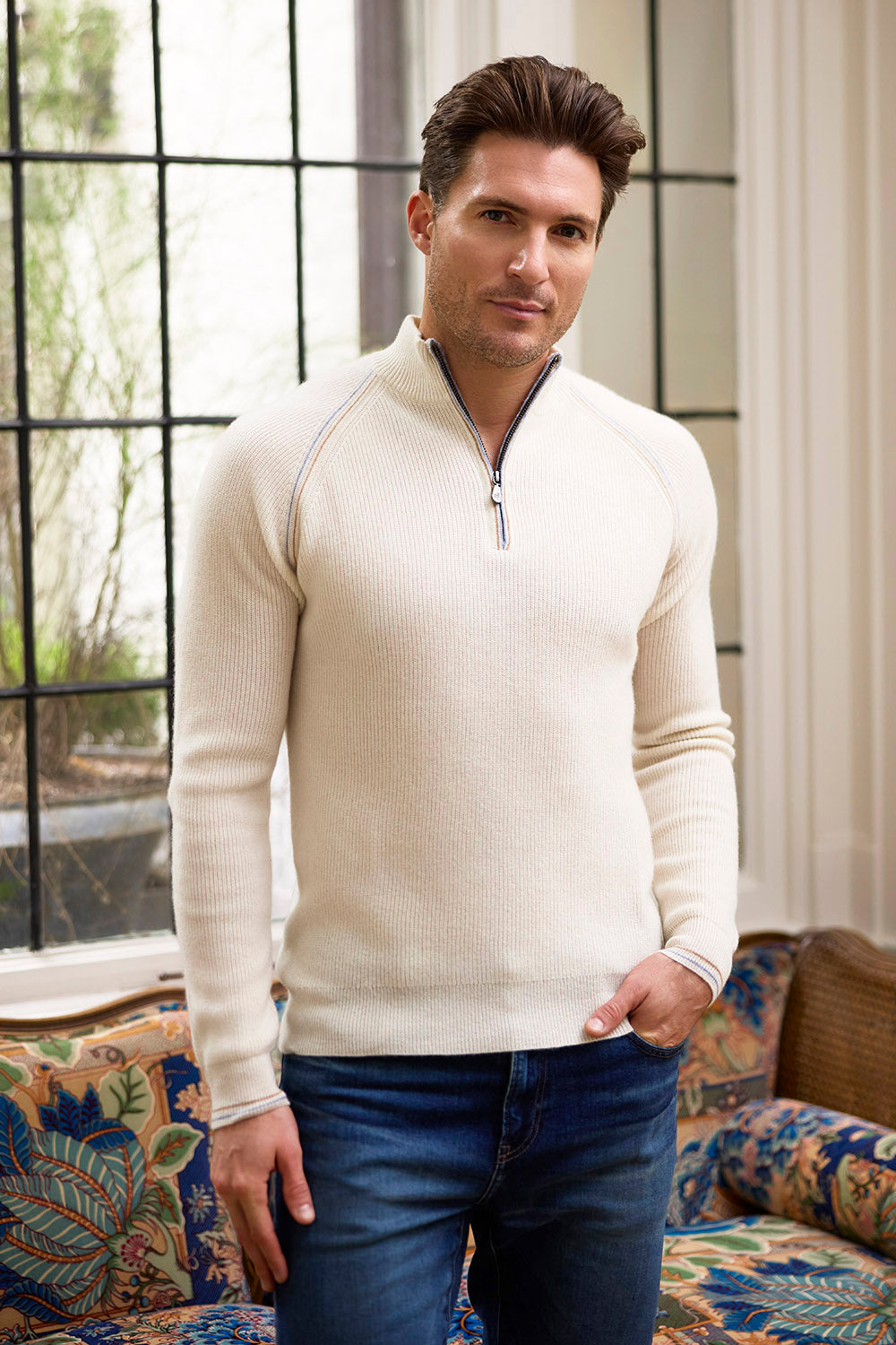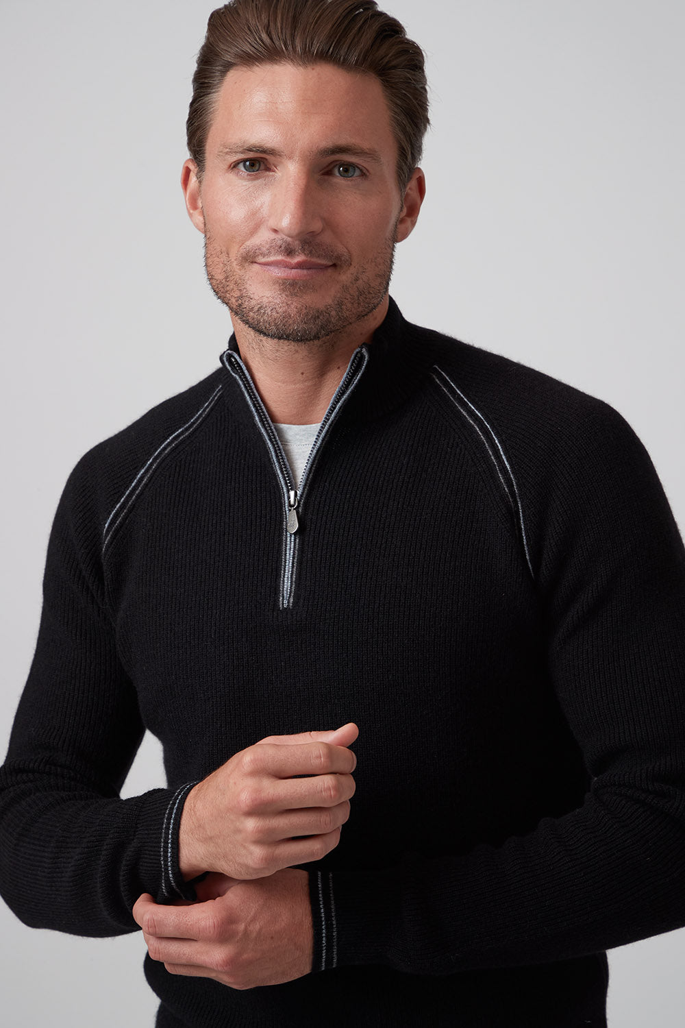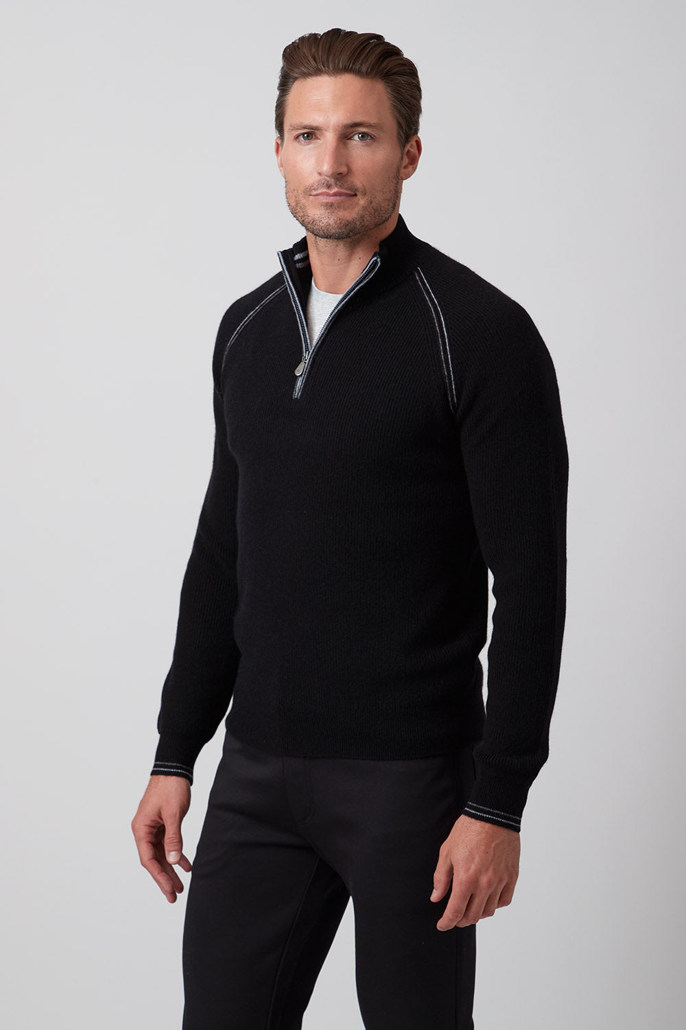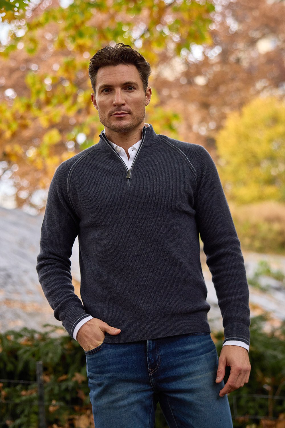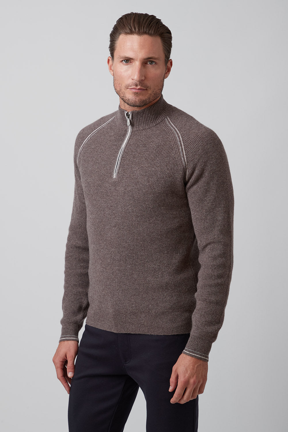 We didn't skimp on the details when we created The Holden sweater. Made from luxurious 100% pure cashmere for incredible softness. This mock zip neck is an English rib knit with subtle color trim on the placket, cuff, and shoulders that are also fashioned for a better fit. This handsome sweater will take you from the work week to the weekend in style.
