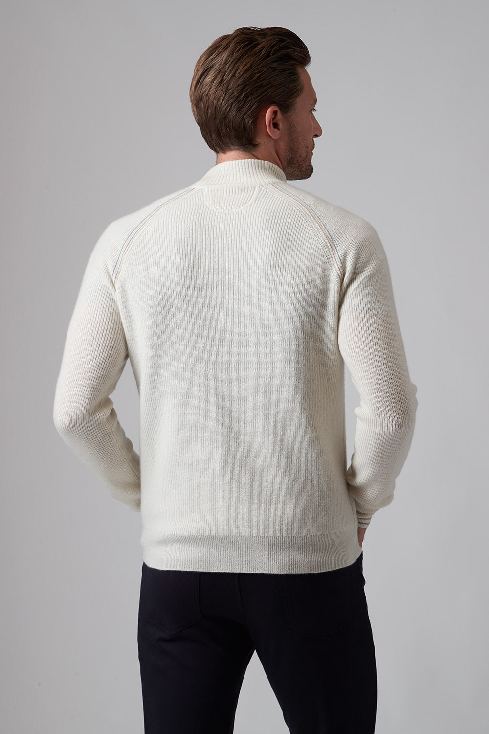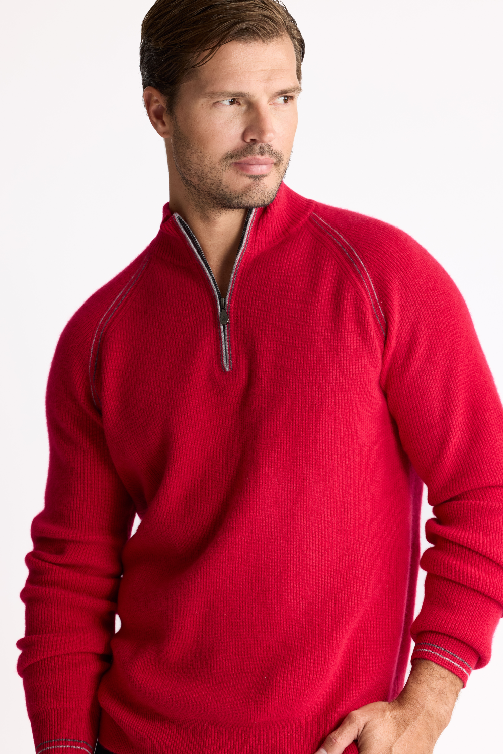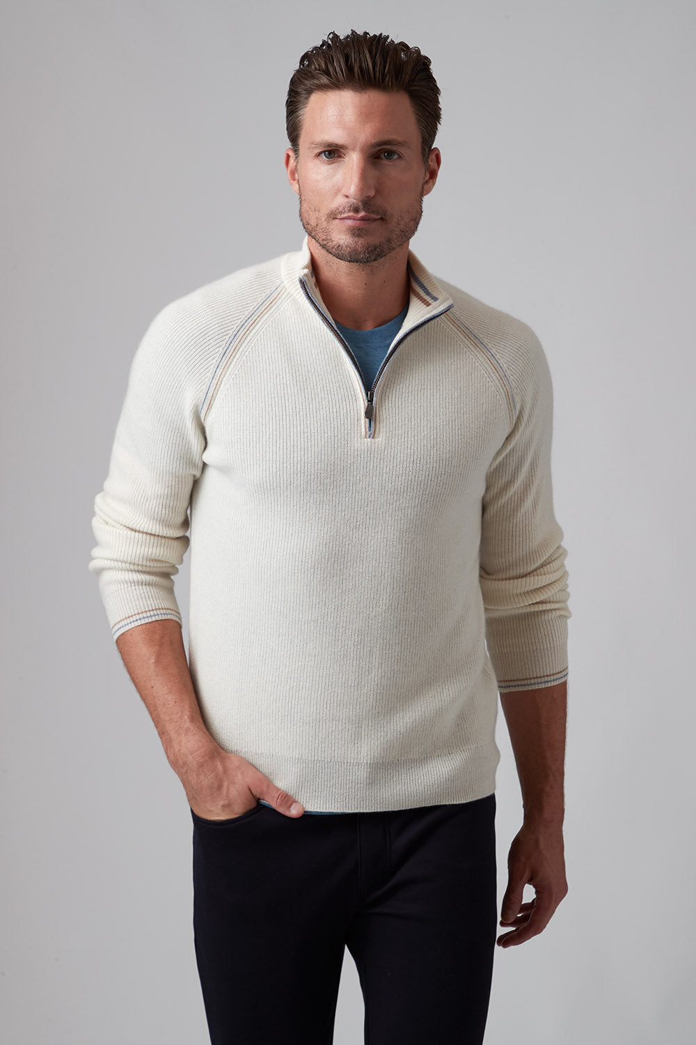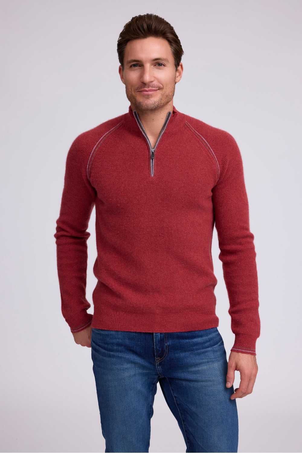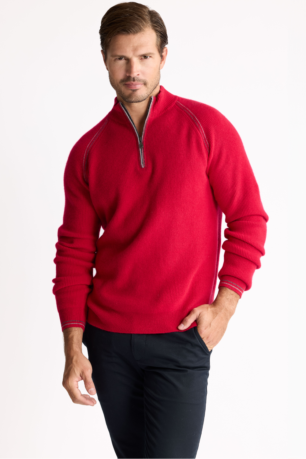 We didn't skimp on the details when we created The Holden sweater. Made from luxurious 100% pure cashmere for incredible softness. This mock zip neck is an English rib knit with subtle color trim on the placket, cuff, and shoulders that are also fashioned for a better fit. This handsome sweater will take you from the work week to the weekend in style.