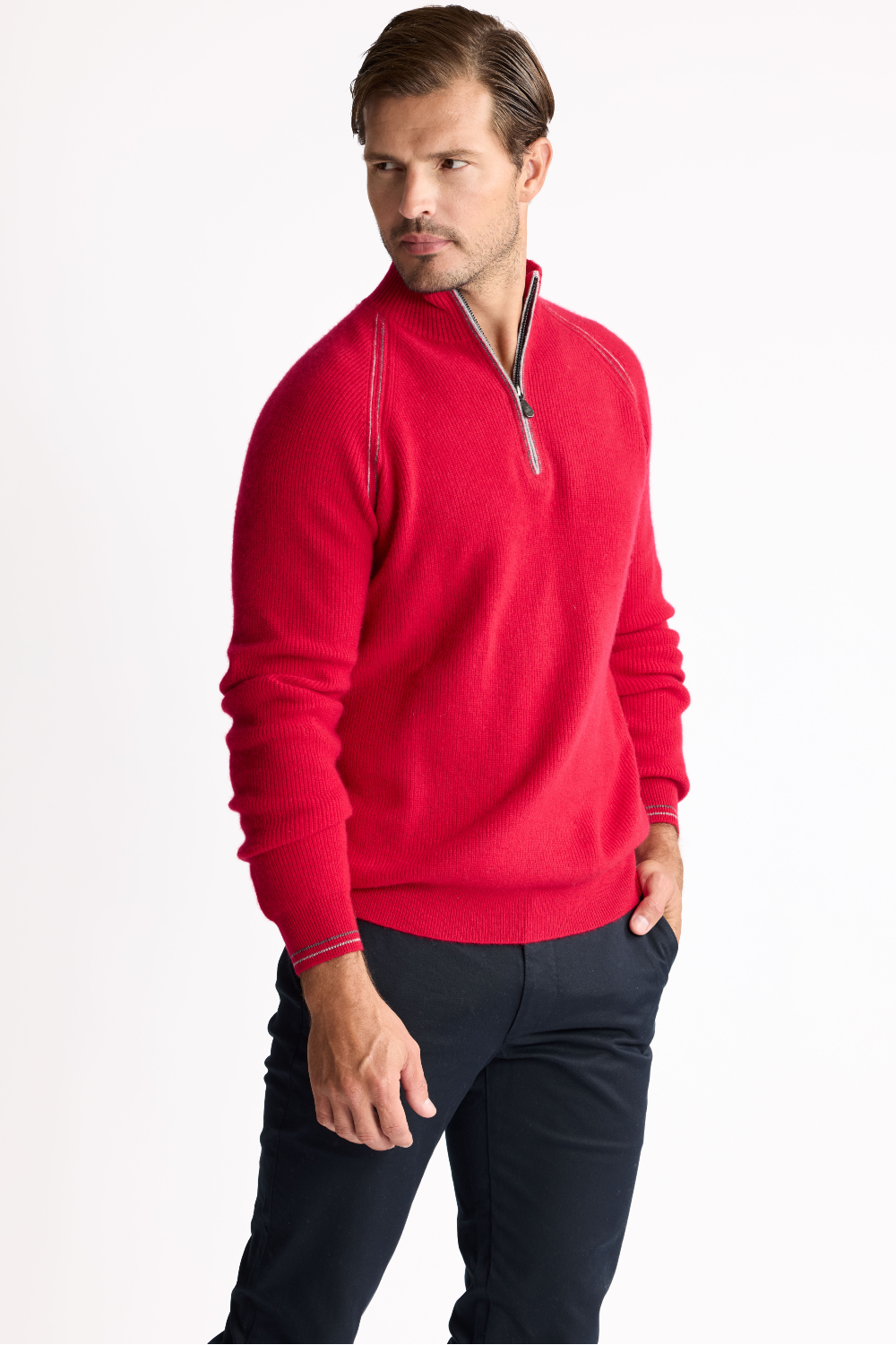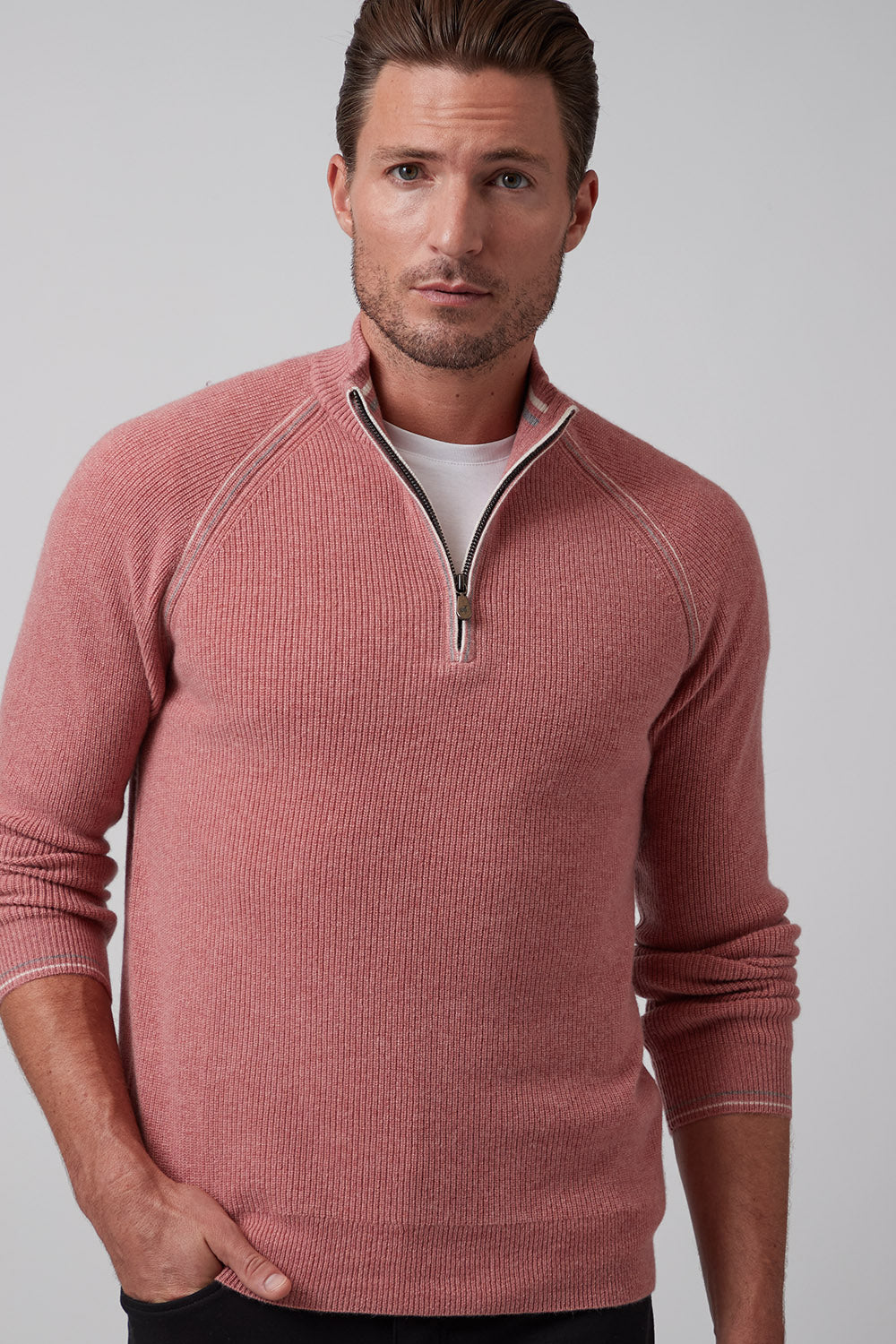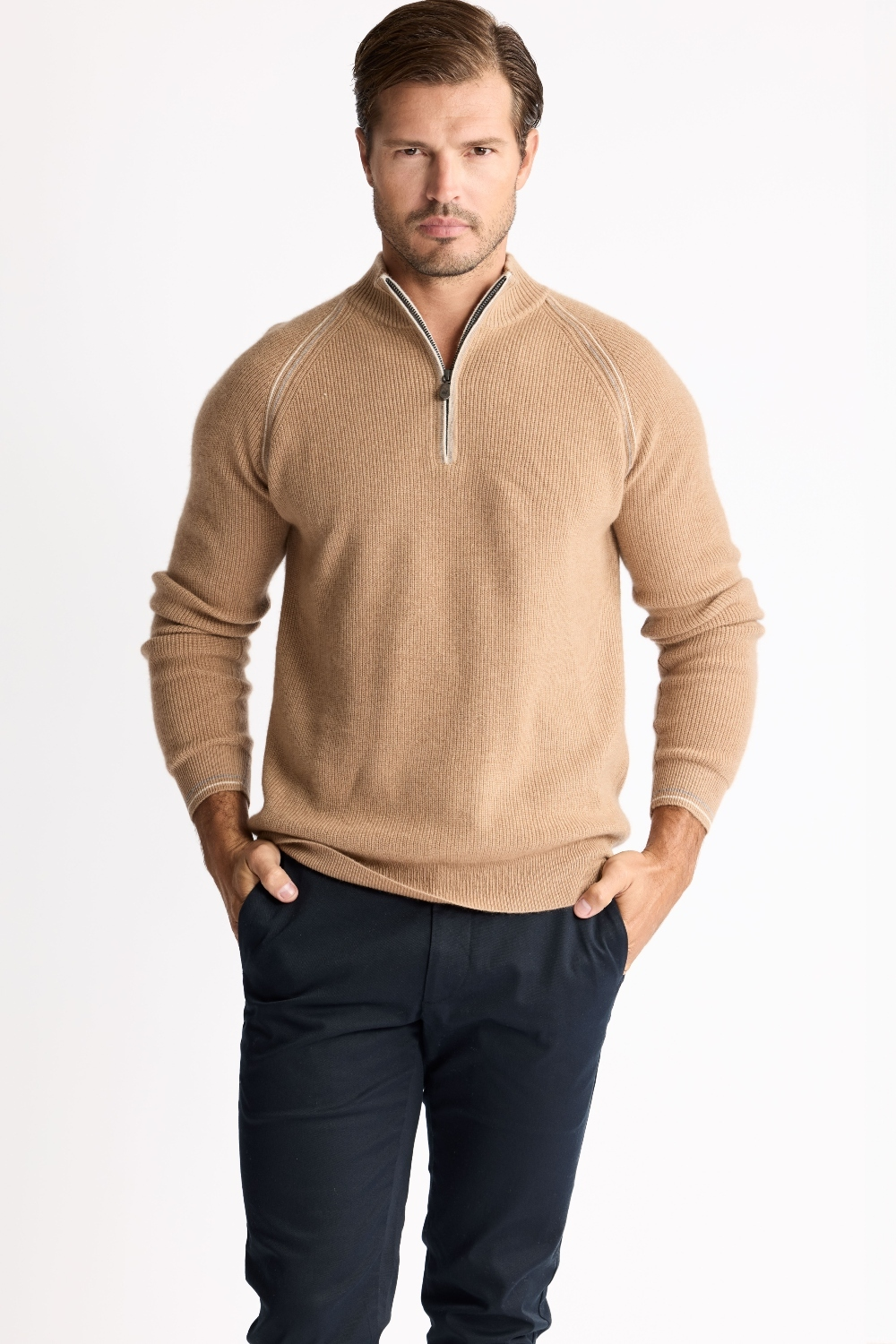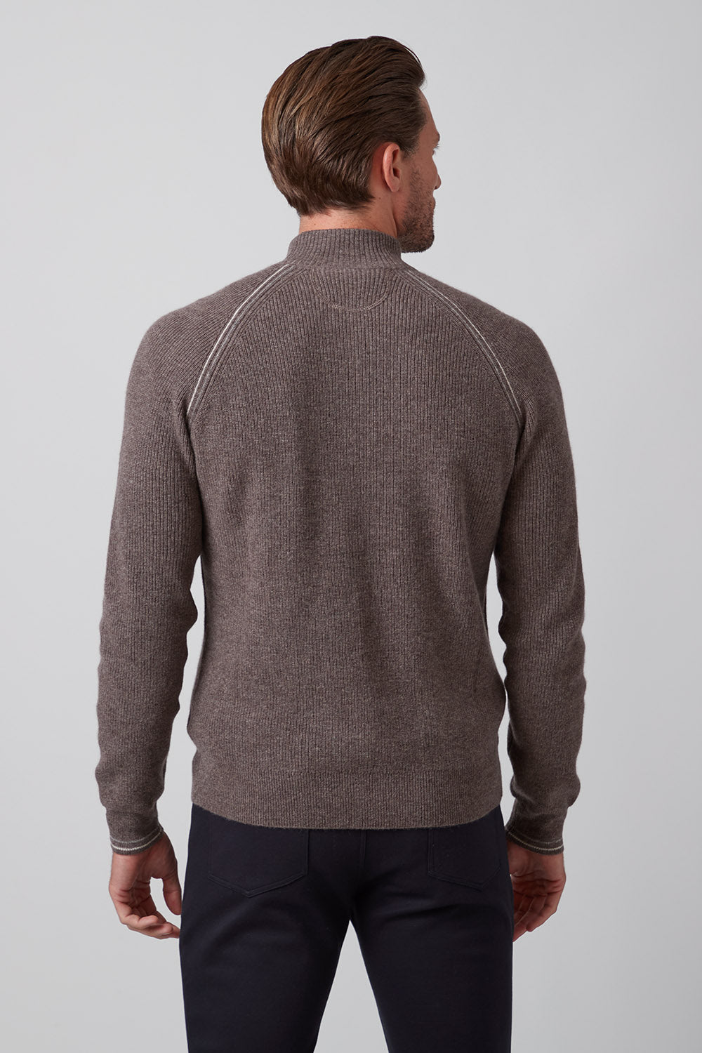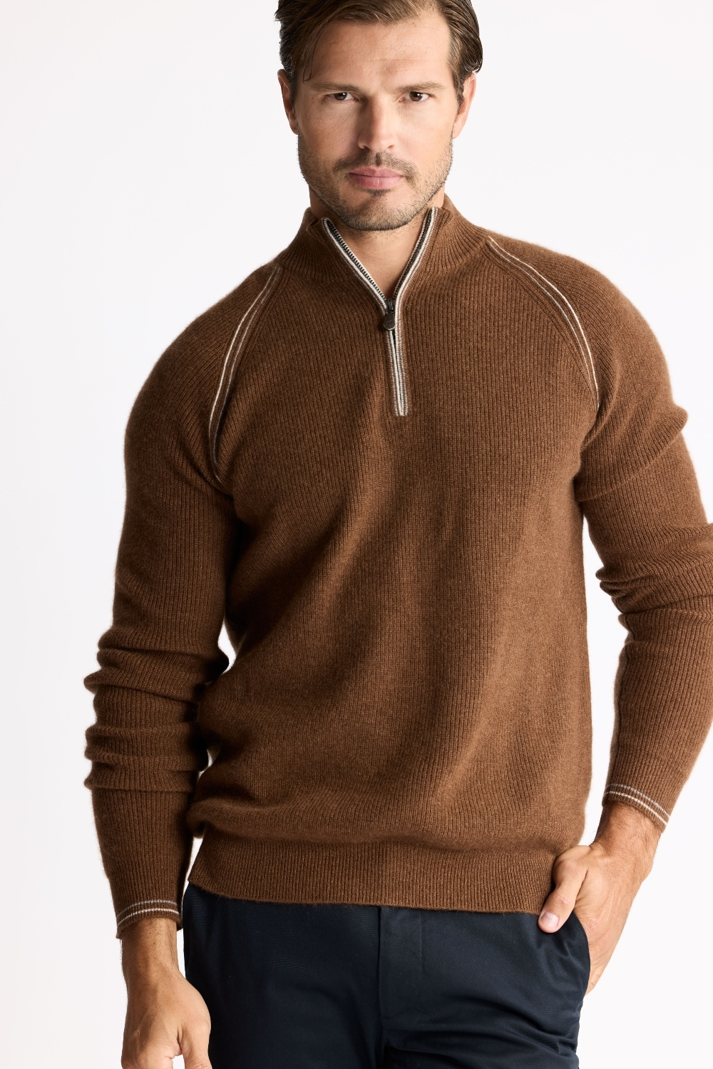 We didn't skimp on the details when we created The Holden sweater. Made from luxurious 100% pure cashmere for incredible softness. This mock zip neck is an English rib knit with subtle color trim on the placket, cuff, and shoulders that are also fashioned for a better fit. This handsome sweater will take you from the work week to the weekend in style.