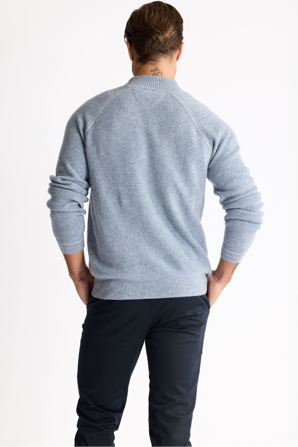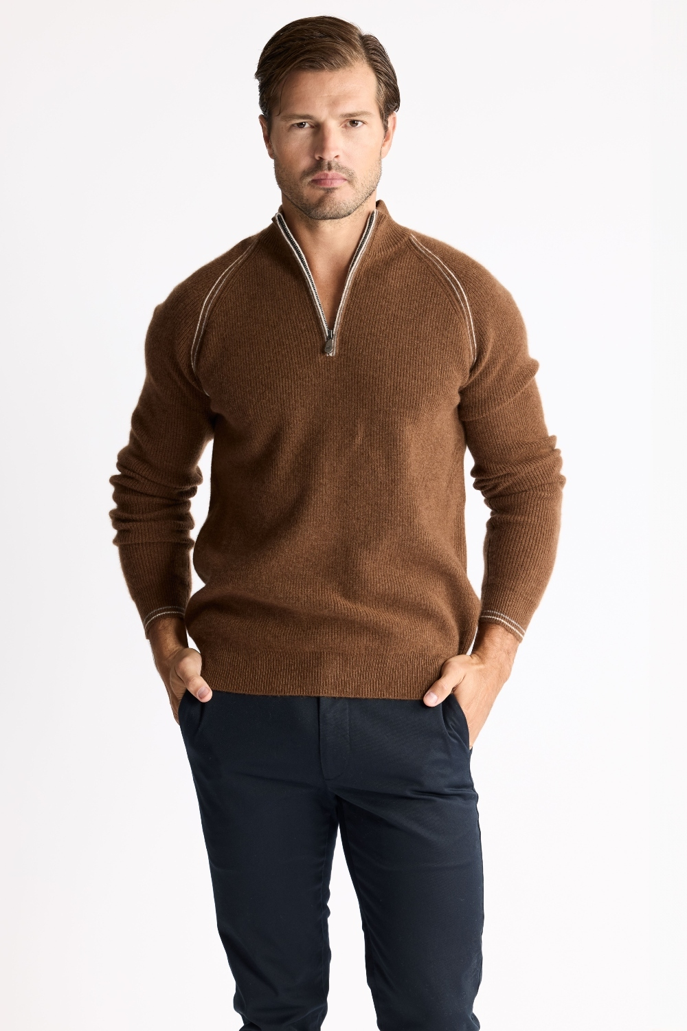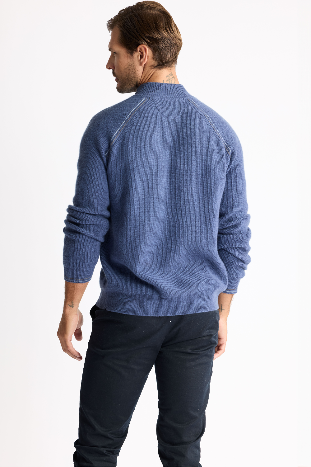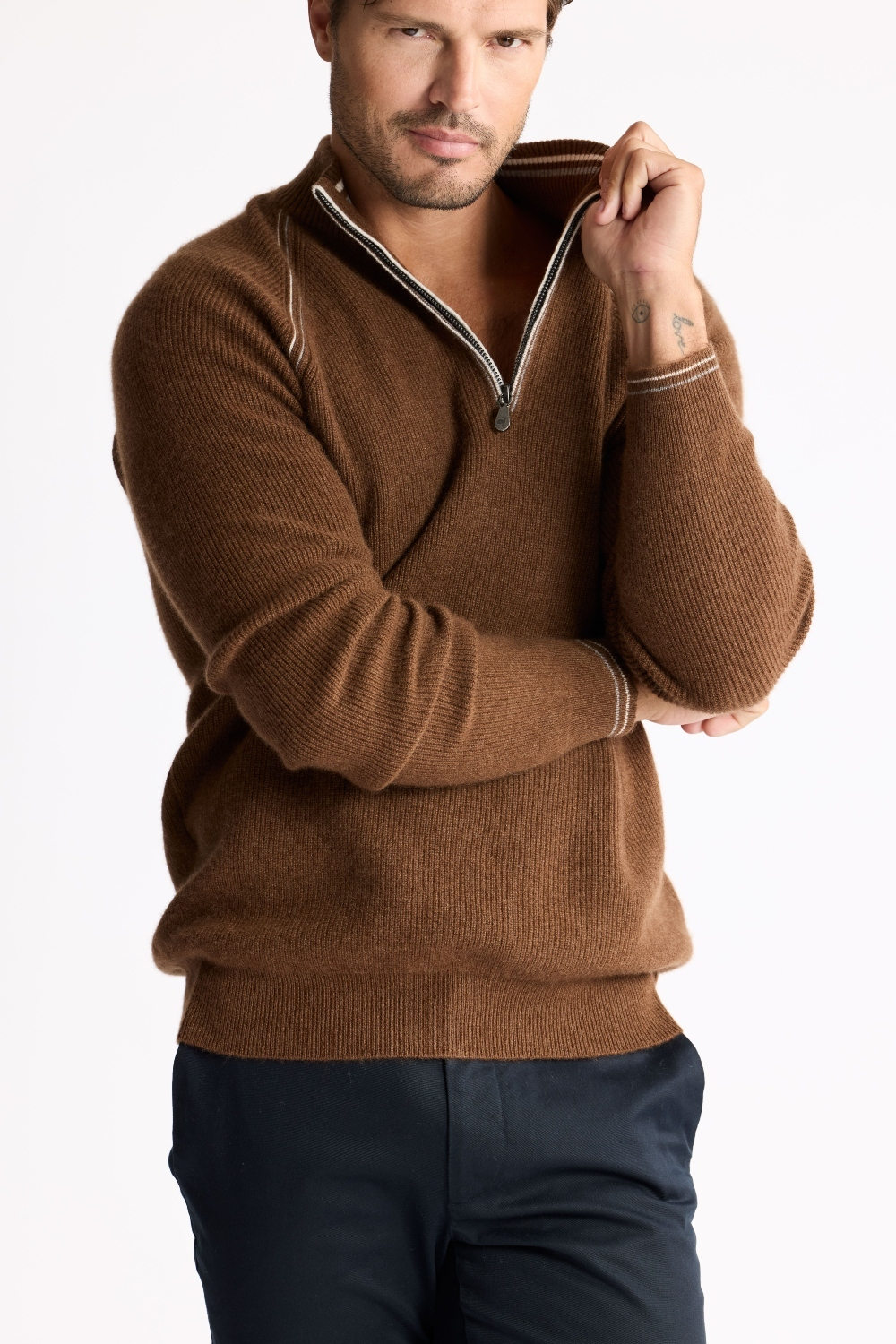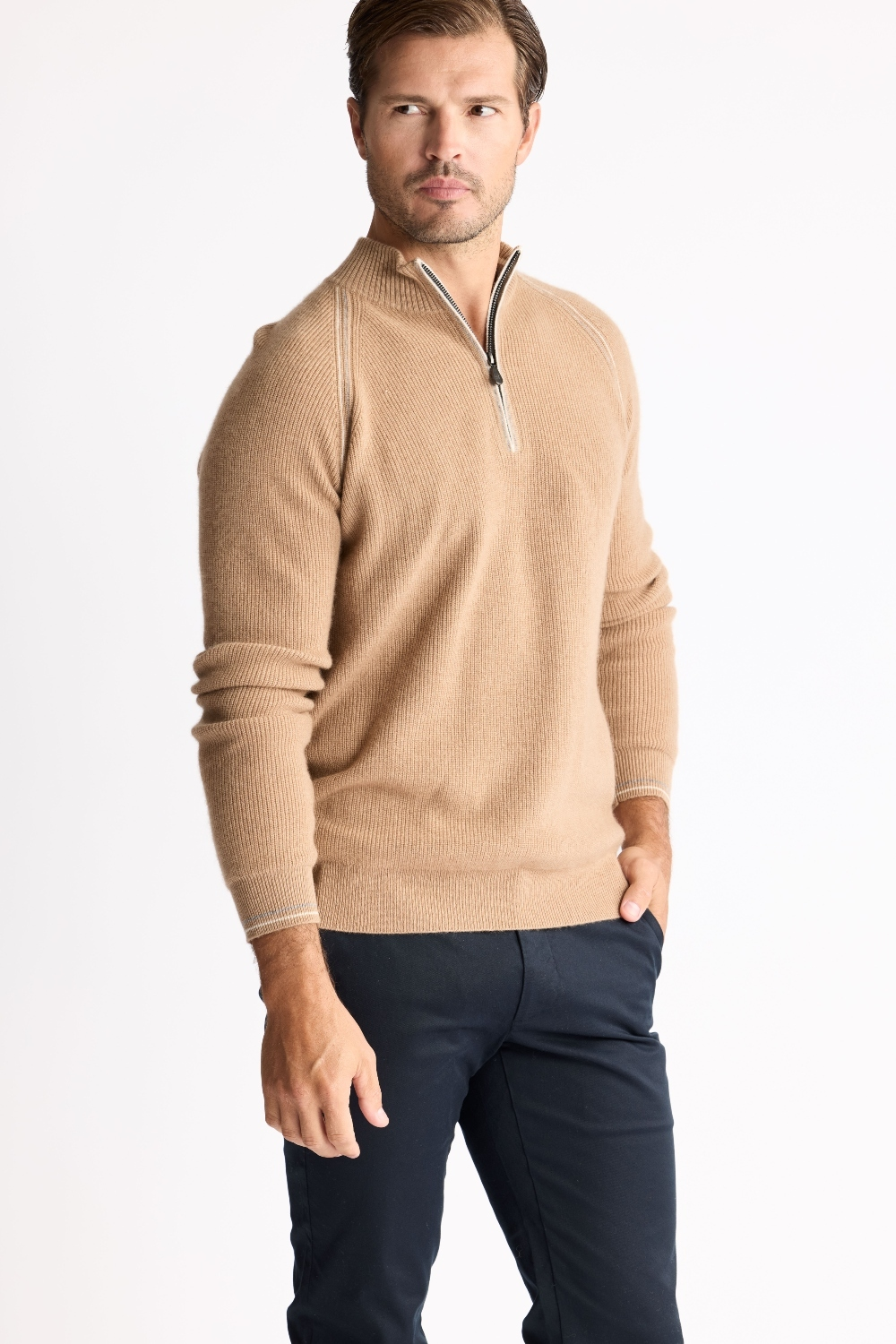 We didn't skimp on the details when we created The Holden sweater. Made from luxurious 100% pure cashmere for incredible softness. This mock zip neck is an English rib knit with subtle color trim on the placket, cuff, and shoulders that are also fashioned for a better fit. This handsome sweater will take you from the work week to the weekend in style.