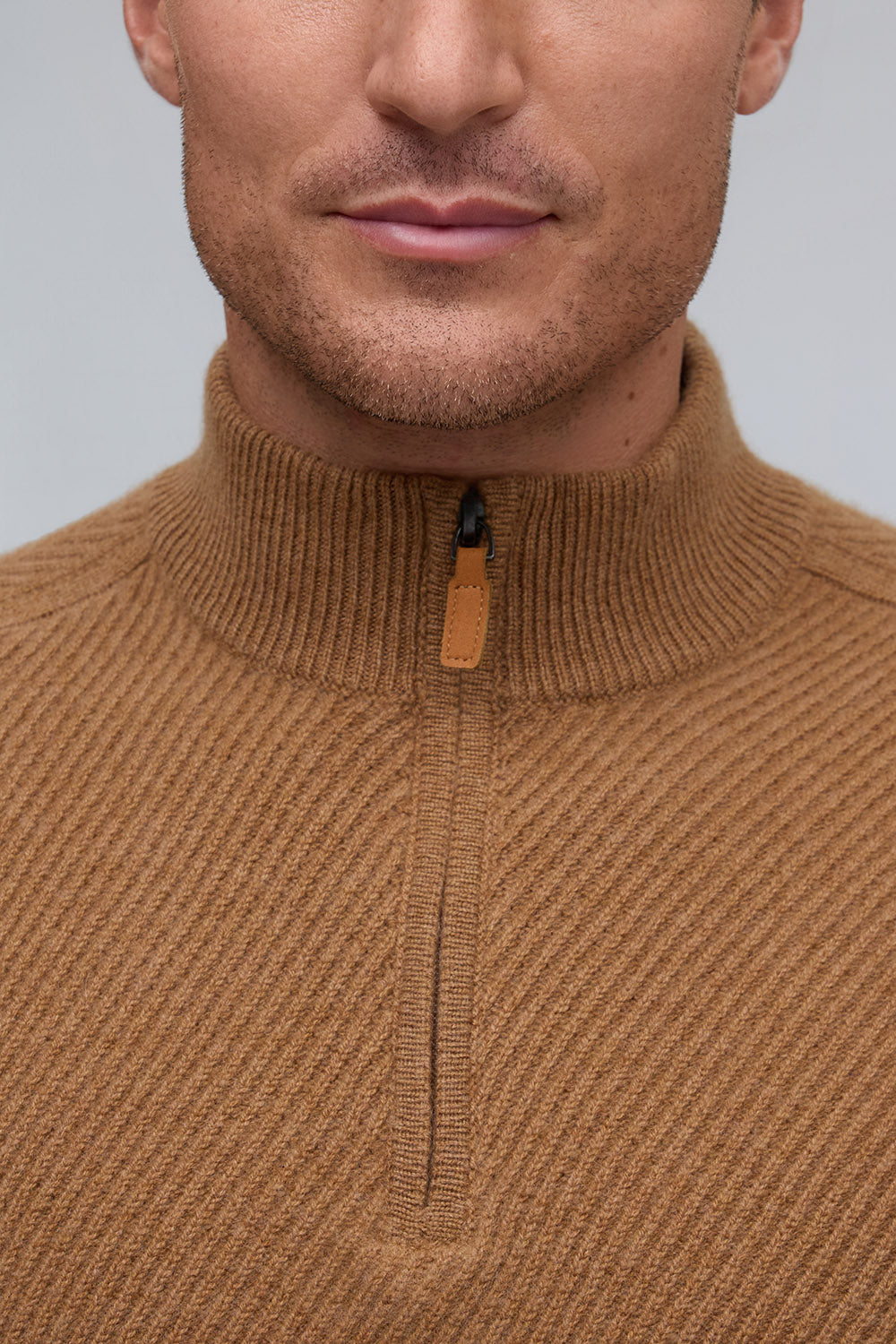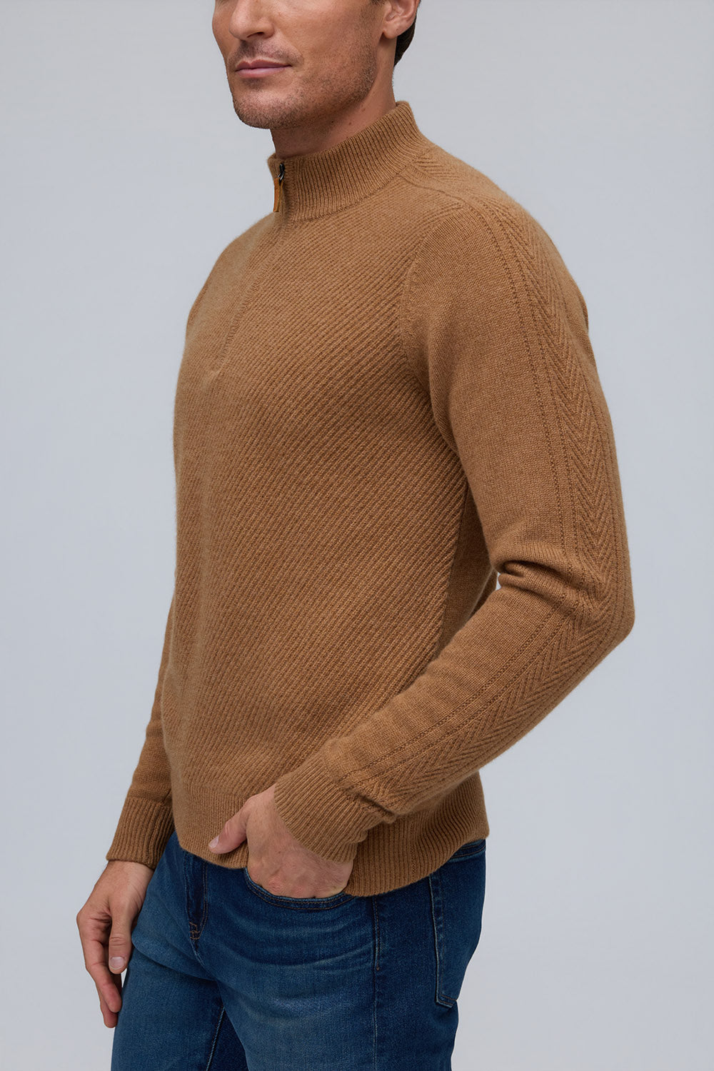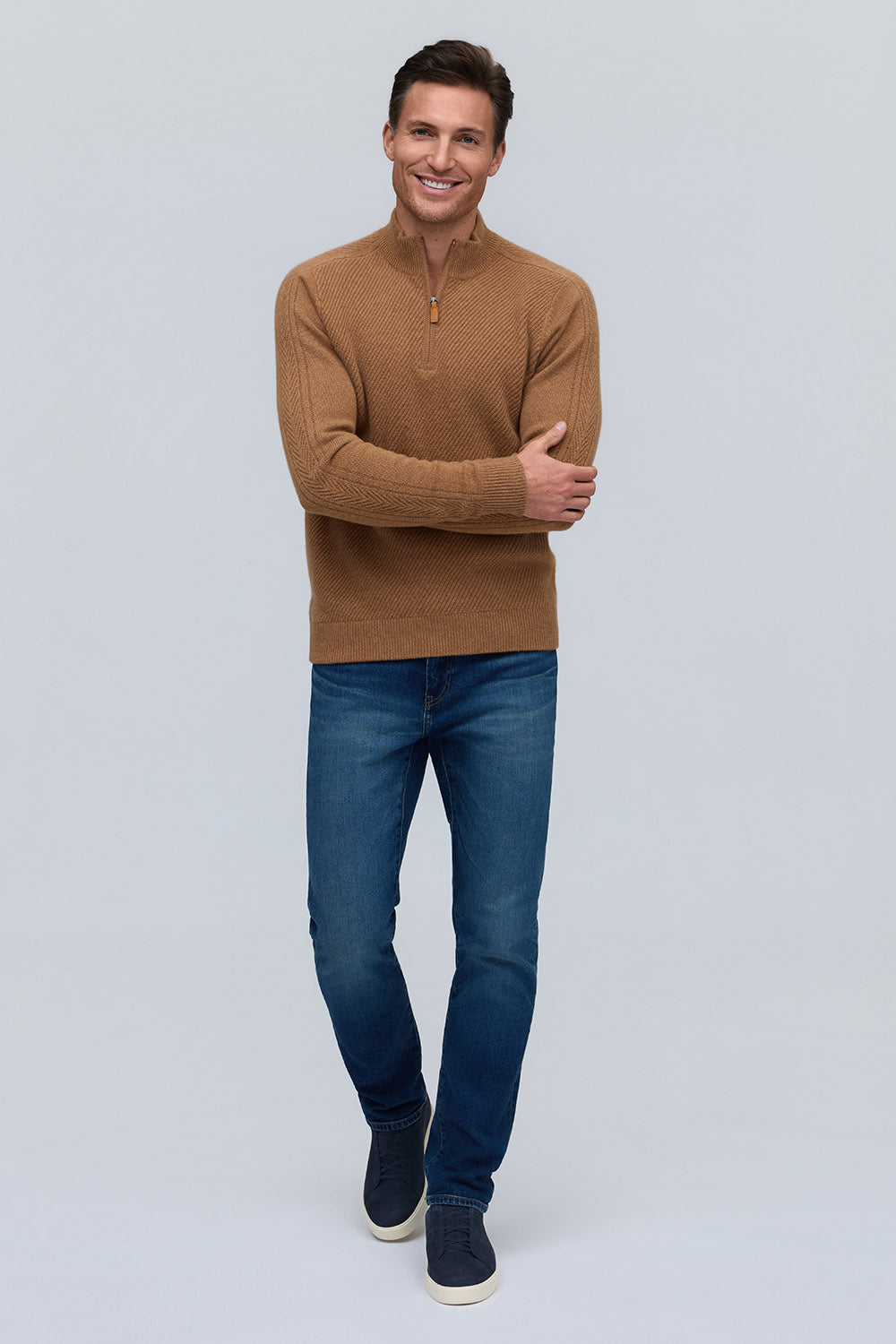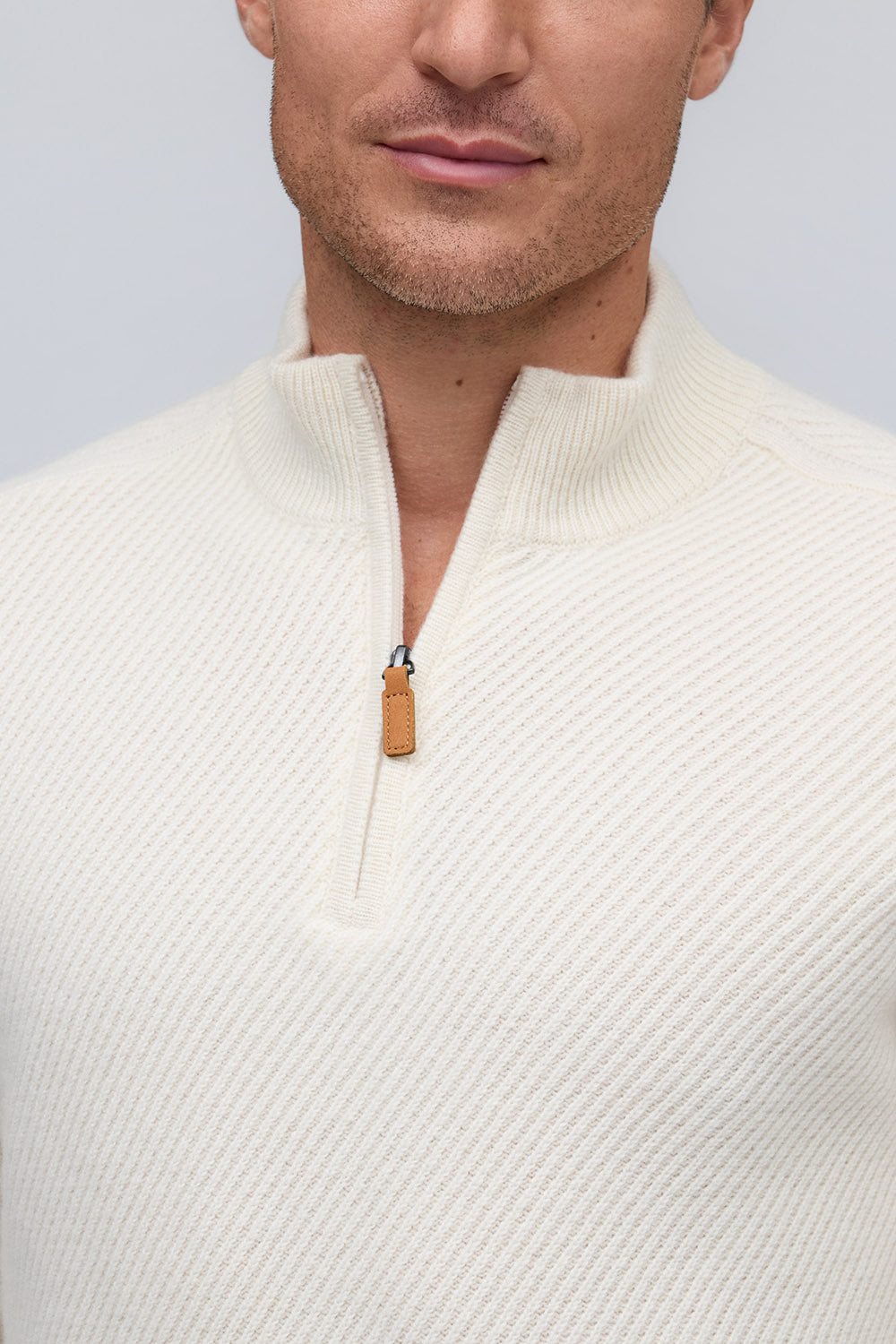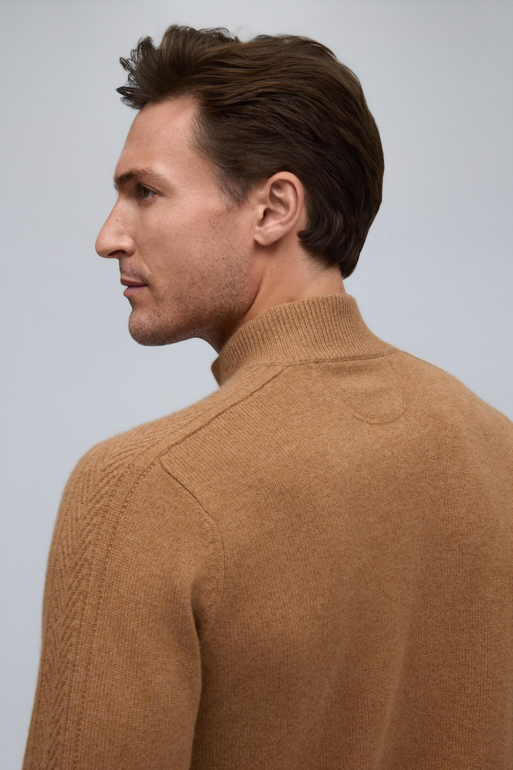 Elevated in every detail, this 100% pure cashmere sweater offers exceptional softness and warmth. The zip mock neck adds a modern edge to its timeless silhouette, while rich, subtle hues embody quiet sophistication.