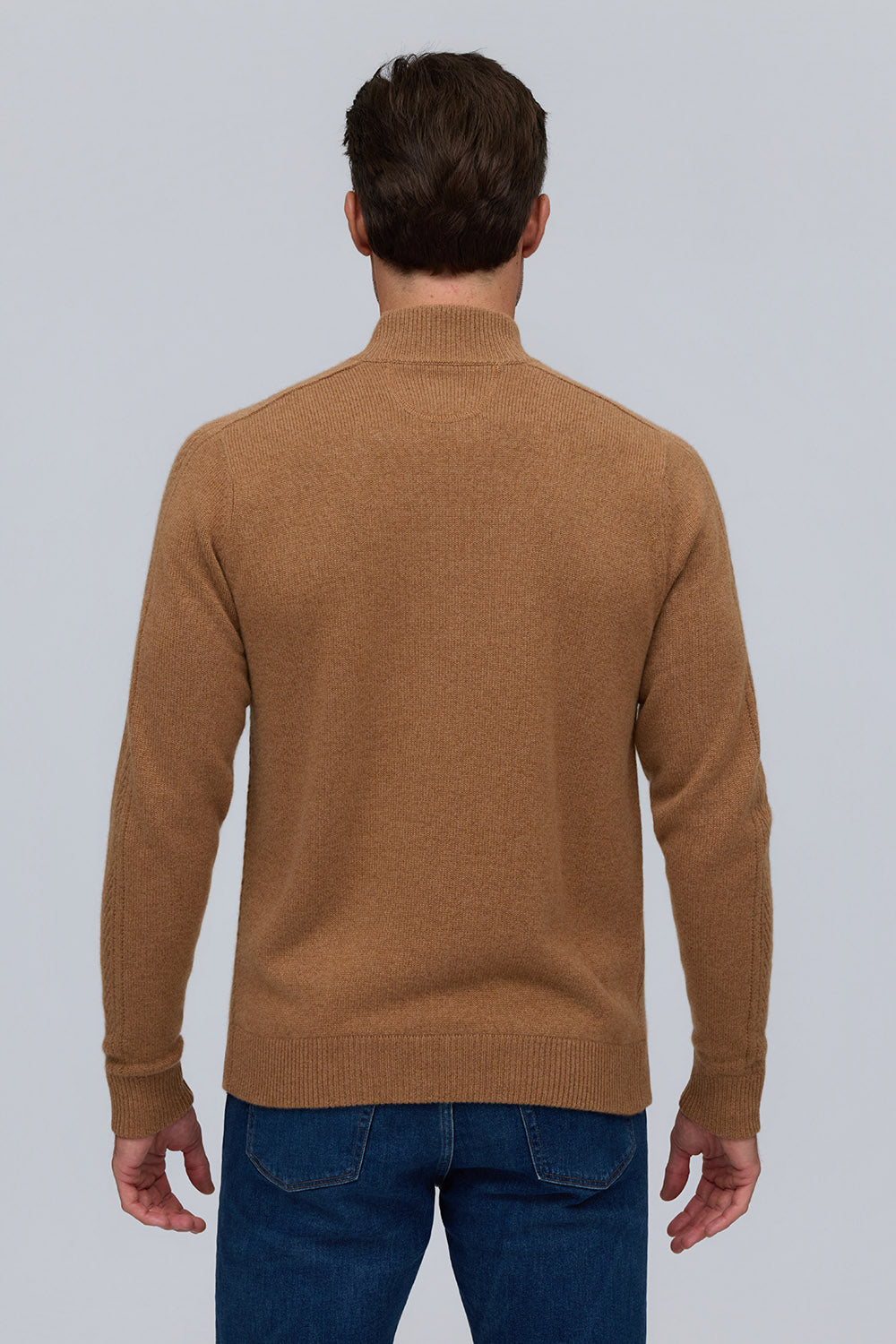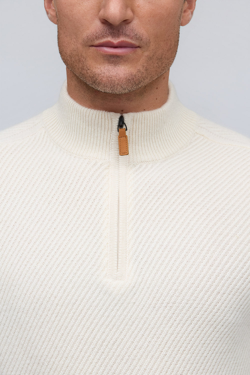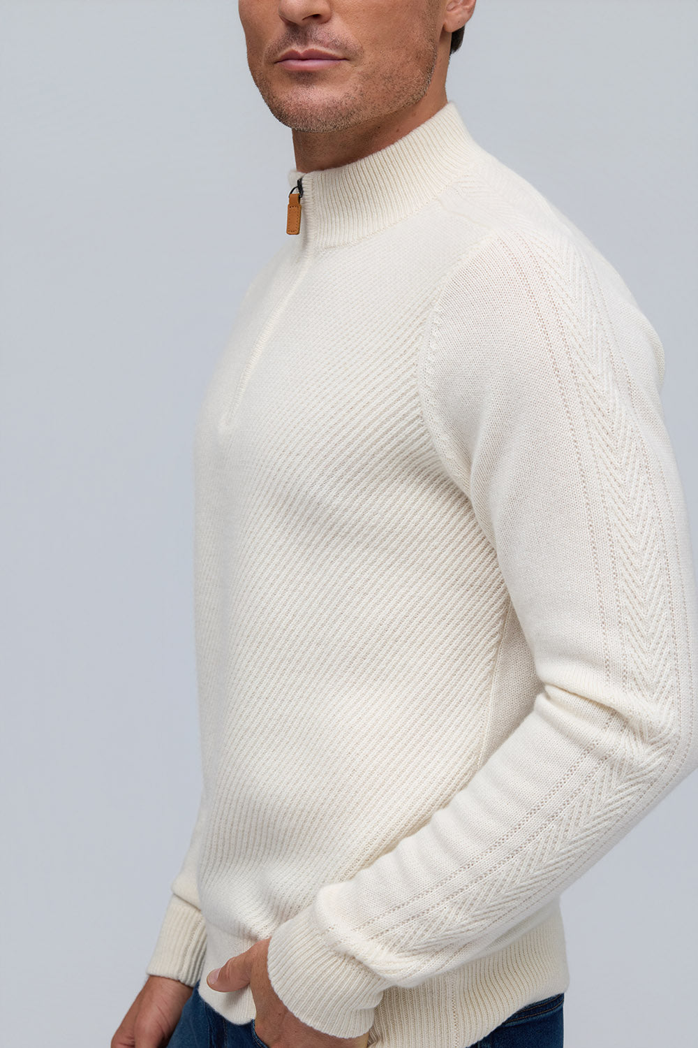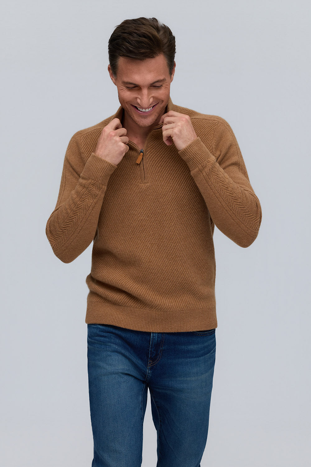 Elevated in every detail, this 100% pure cashmere sweater offers exceptional softness and warmth. The zip mock neck adds a modern edge to its timeless silhouette, while rich, subtle hues embody quiet sophistication.