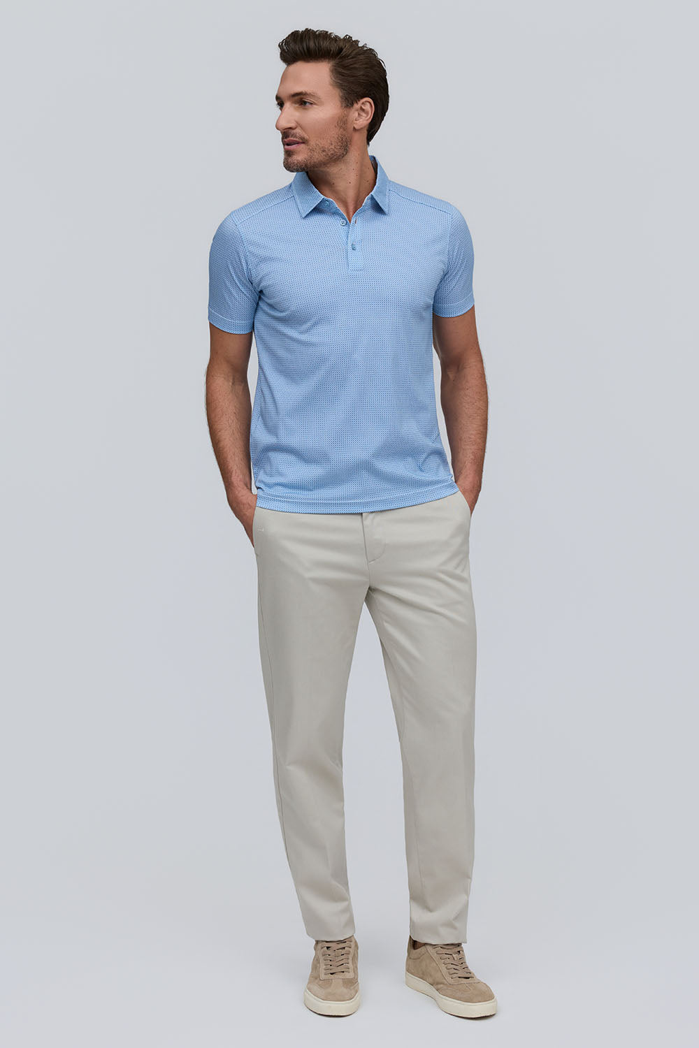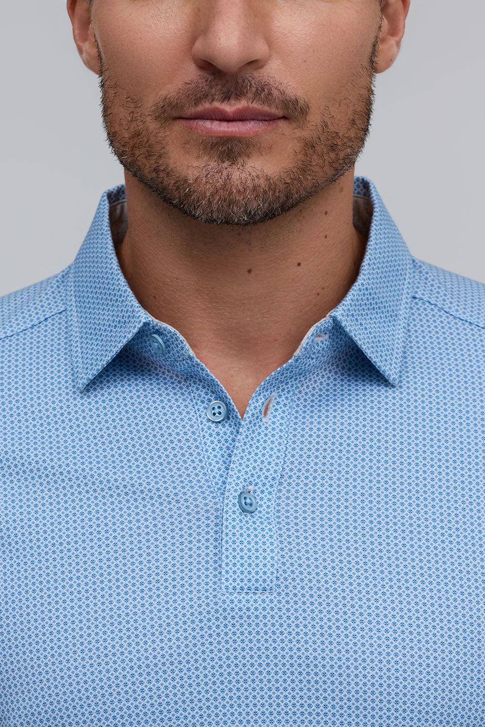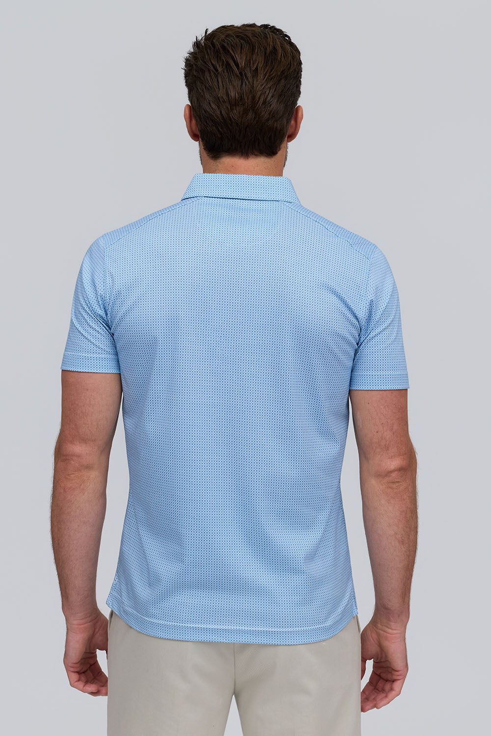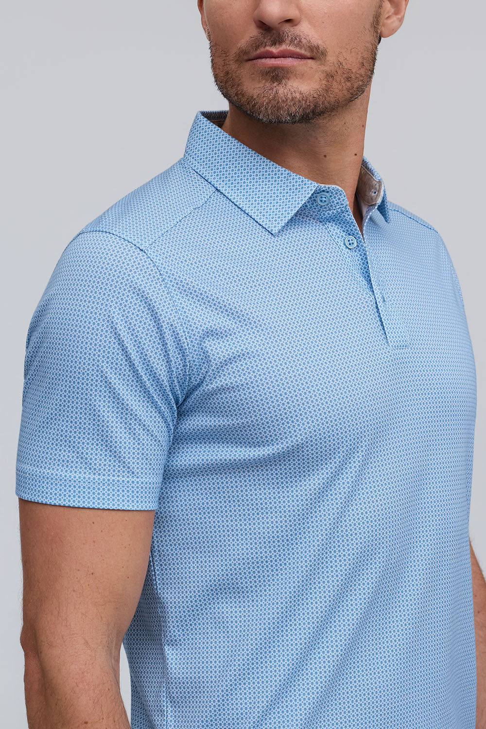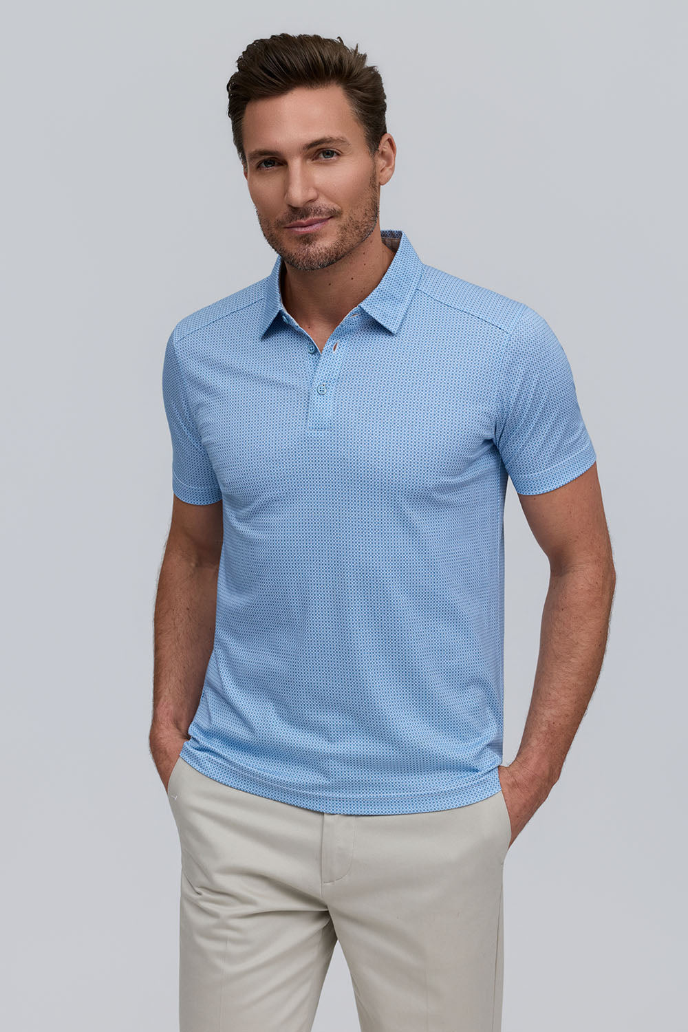 The Lennon is a micro-geo printed polo in 100% Aqua Cotton, offering soft, breathable, lightweight comfort. In a refreshing Water tone, it pairs modern patterning with effortless, all-day wear.