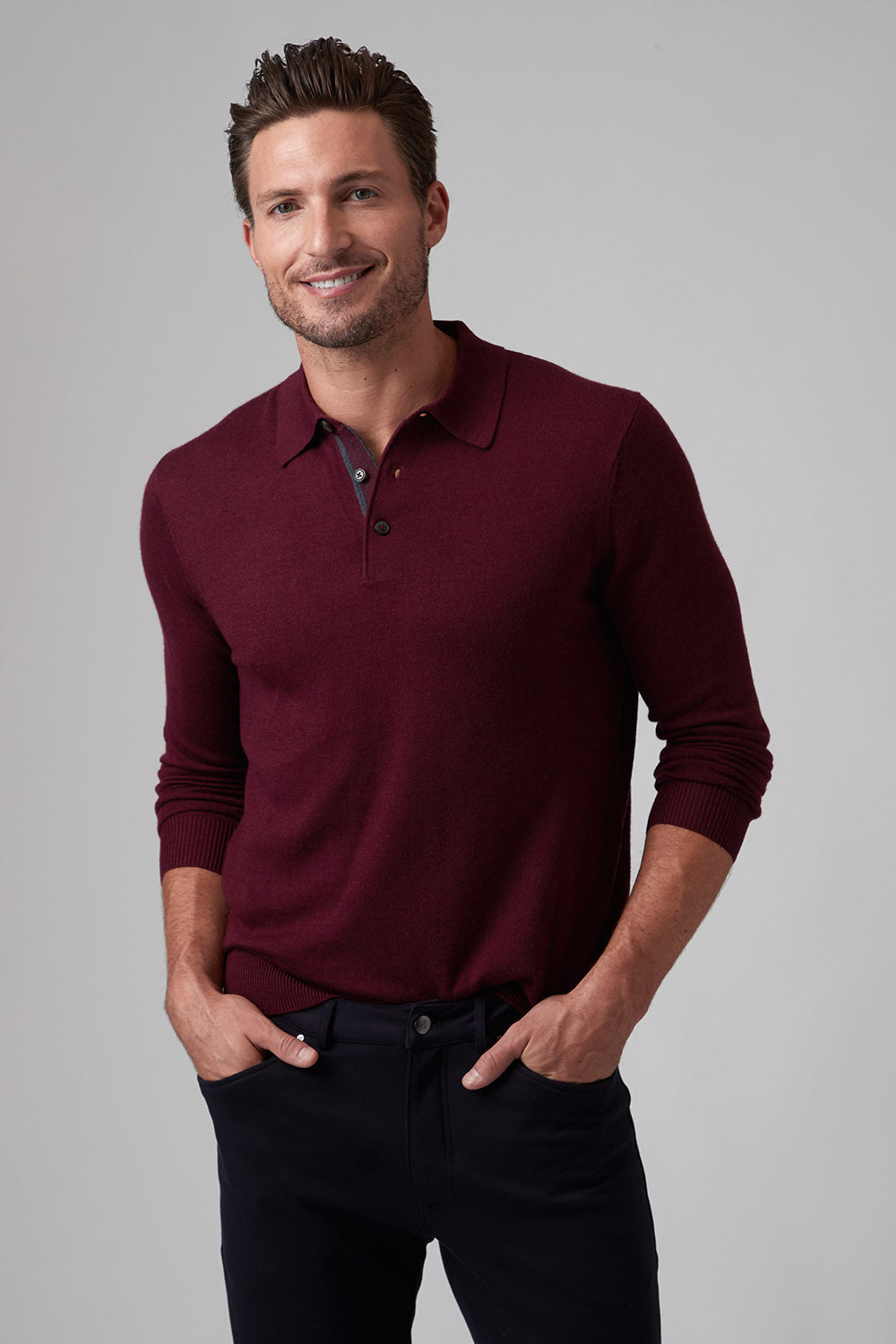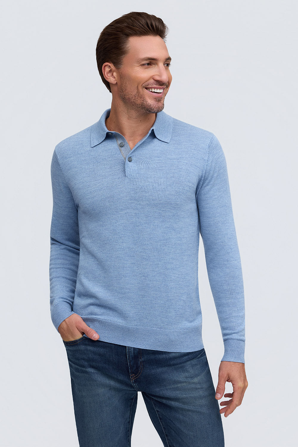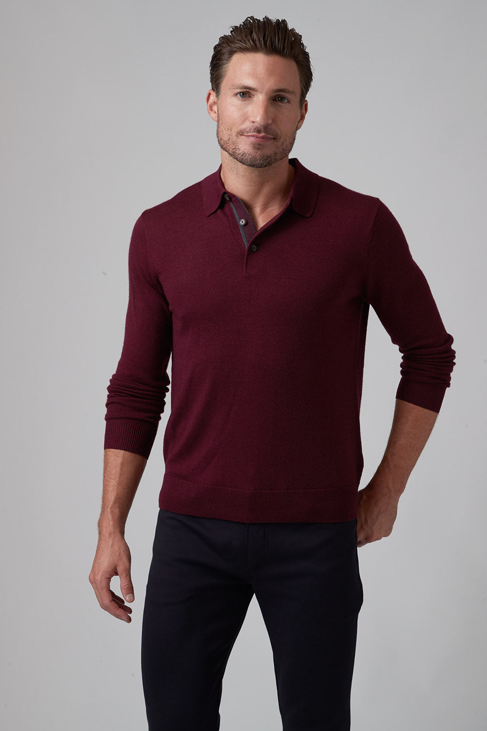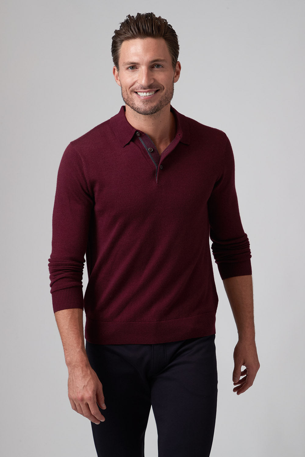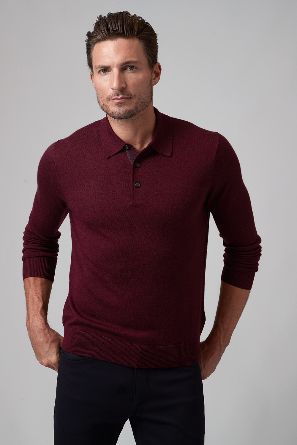 Need a versatile addition to your wardrobe? The Logan is it! This classic long-sleeved polo sweater has trim color details on the inside placket for an added touch of style. Made from luxurious 100% Extrafine Merino Wool is an essential piece and can be worn for any occasion. Dressed up or down, you will be comfortably confident in your fashion choice.