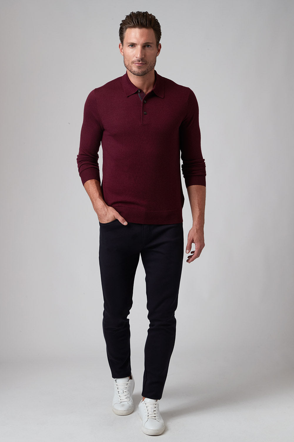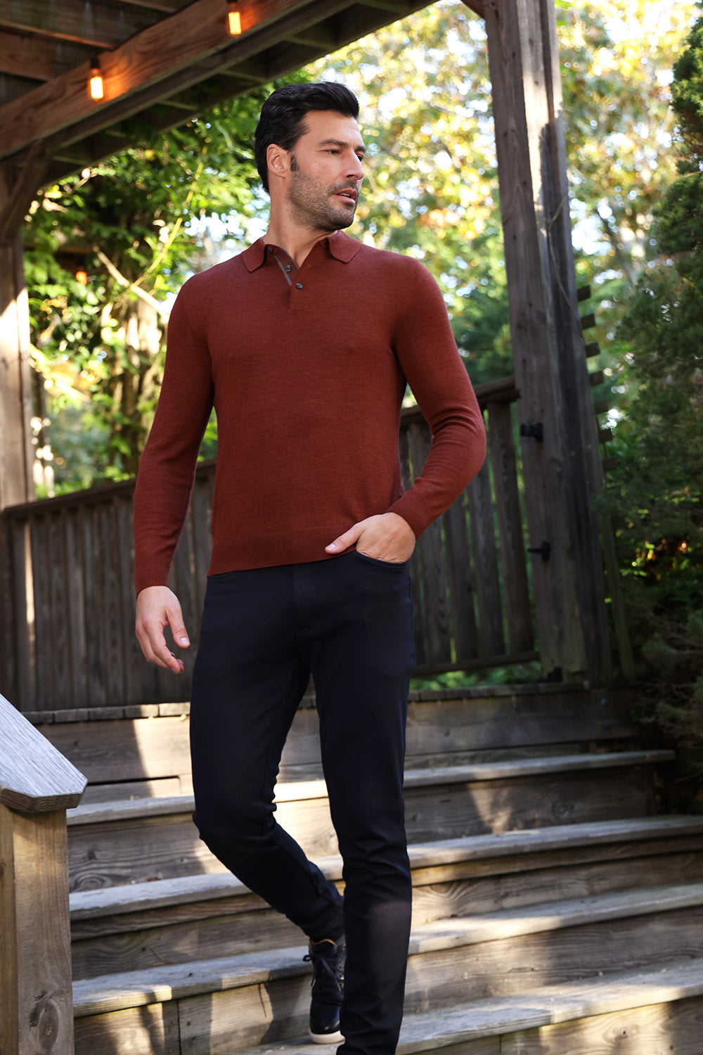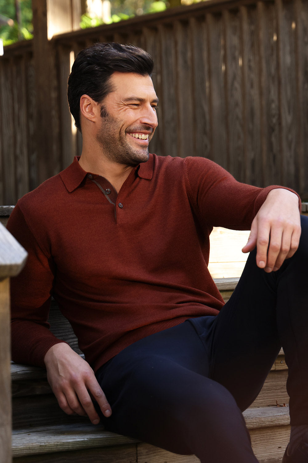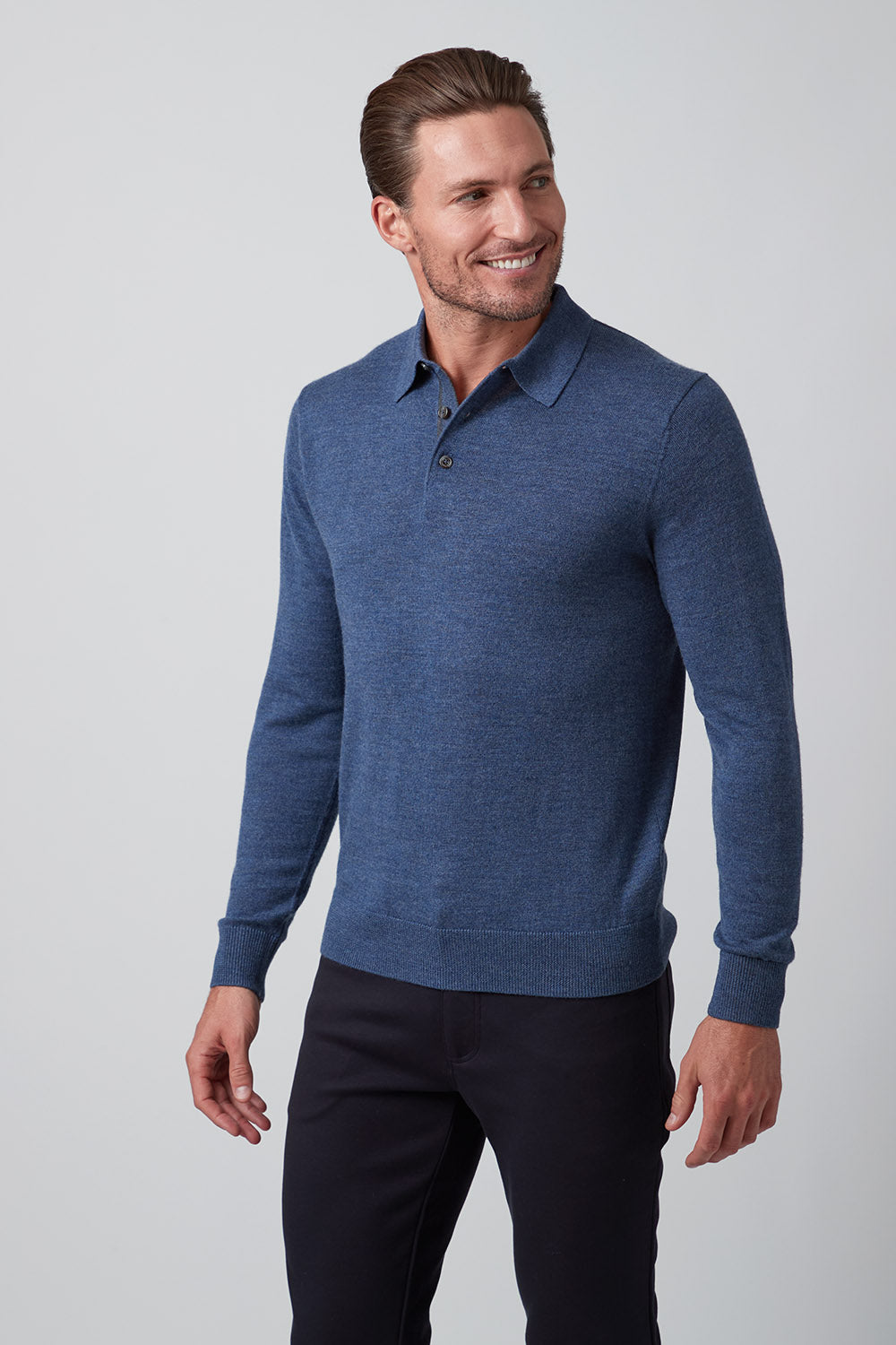 Need a versatile addition to your wardrobe? The Logan is it! This classic long-sleeved polo sweater has trim color details on the inside placket for an added touch of style. Made from luxurious 100% Extrafine Merino Wool is an essential piece and can be worn for any occasion. Dressed up or down, you will be comfortably confident in your fashion choice.
