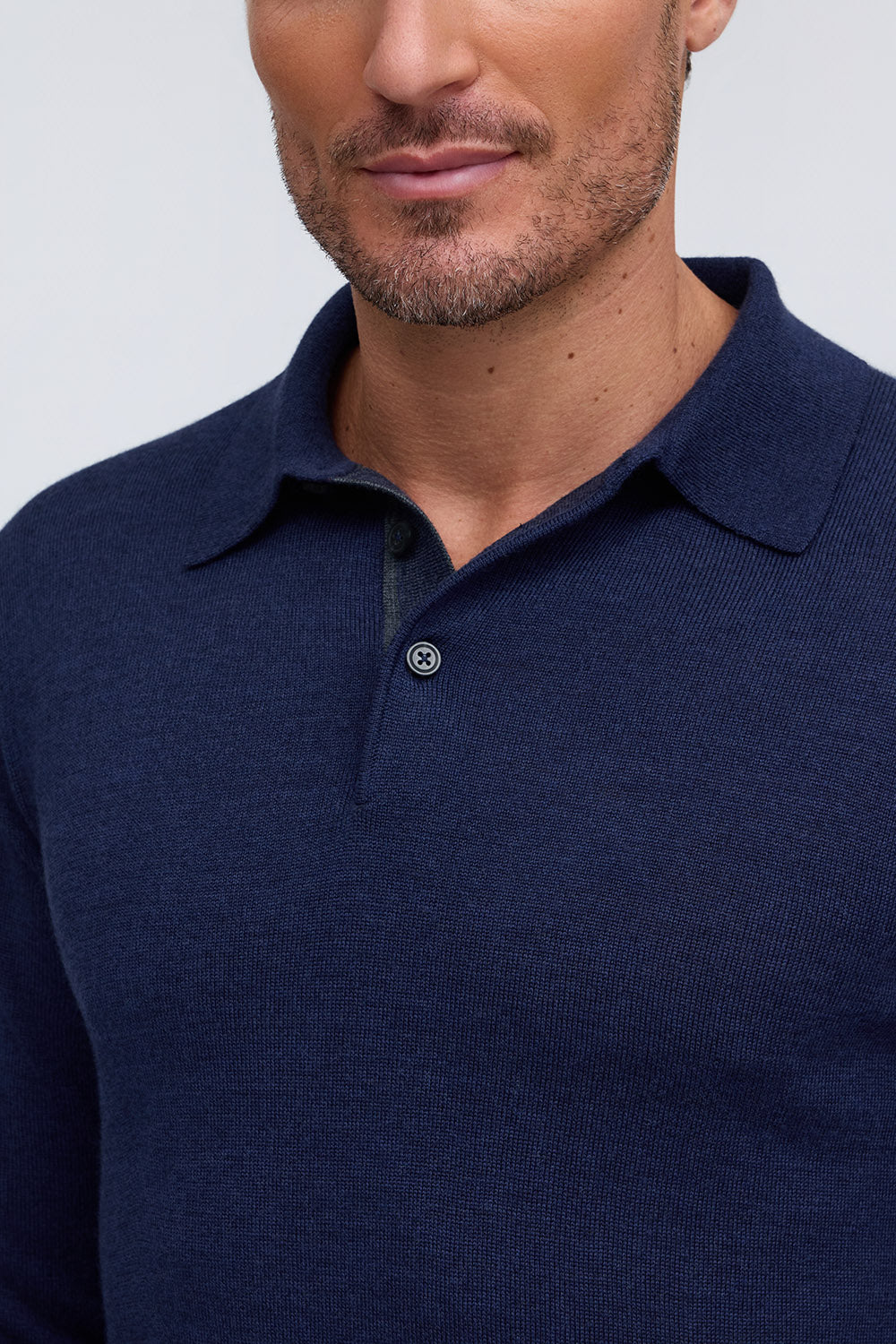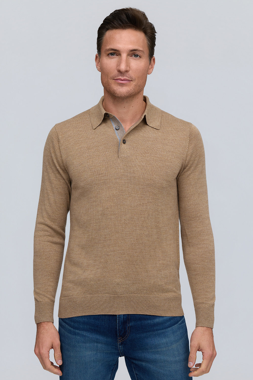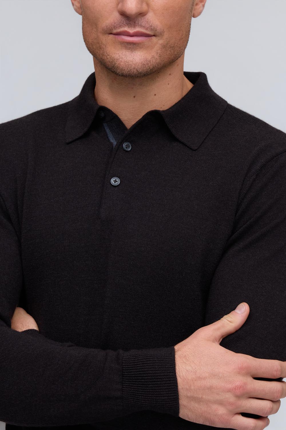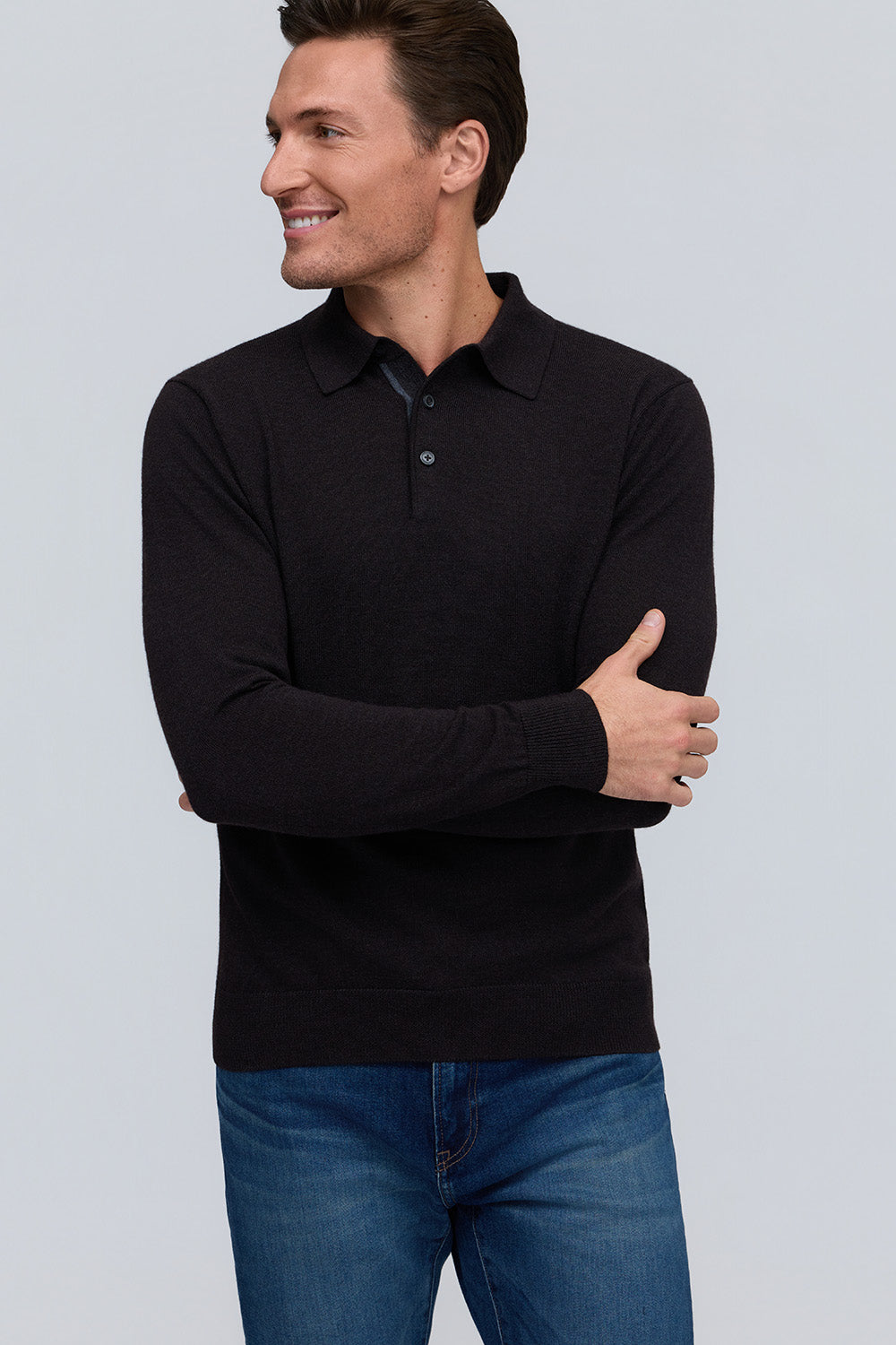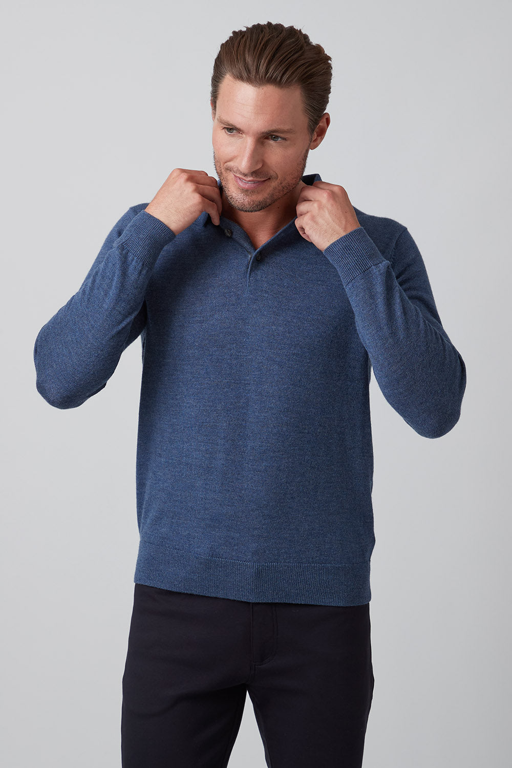 Need a versatile addition to your wardrobe? The Logan is it! This classic long-sleeved polo sweater has trim color details on the inside placket for an added touch of style. Made from luxurious 100% Extrafine Merino Wool is an essential piece and can be worn for any occasion. Dressed up or down, you will be comfortably confident in your fashion choice.