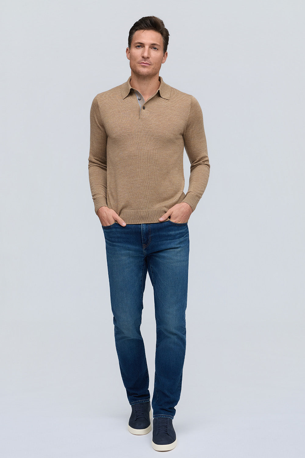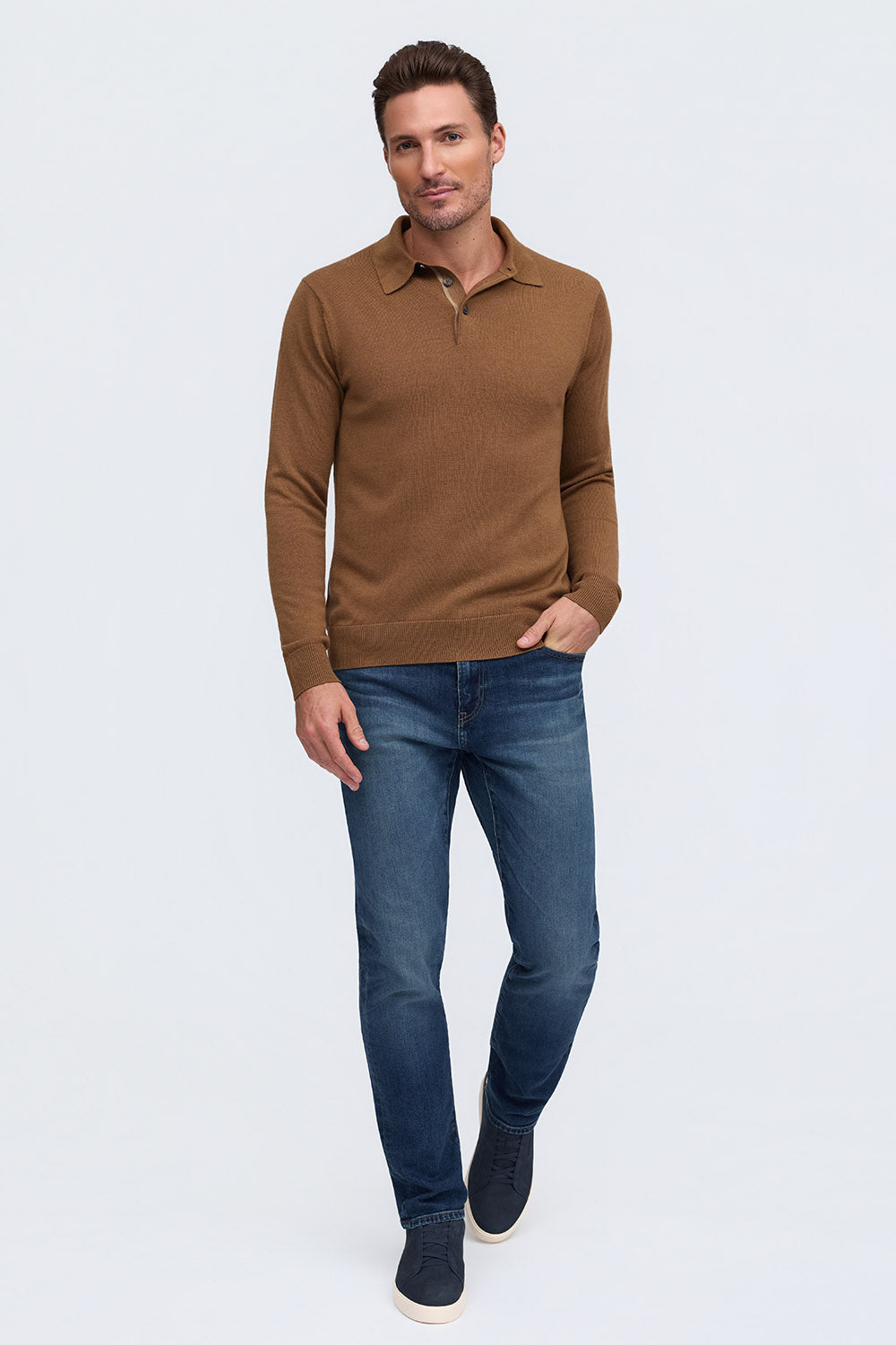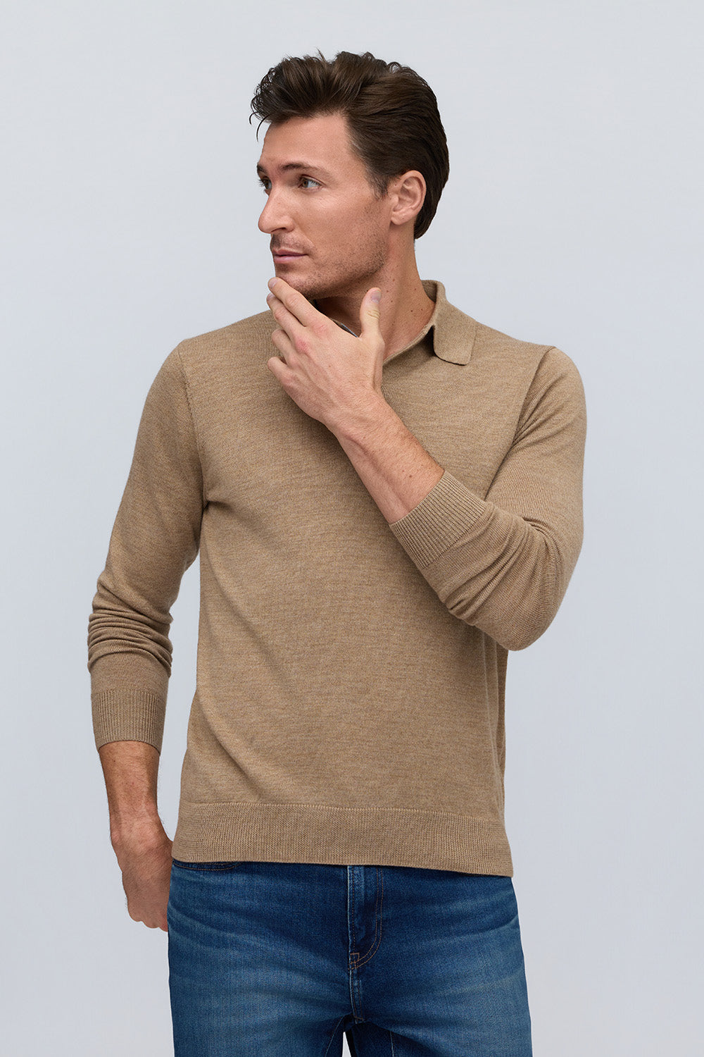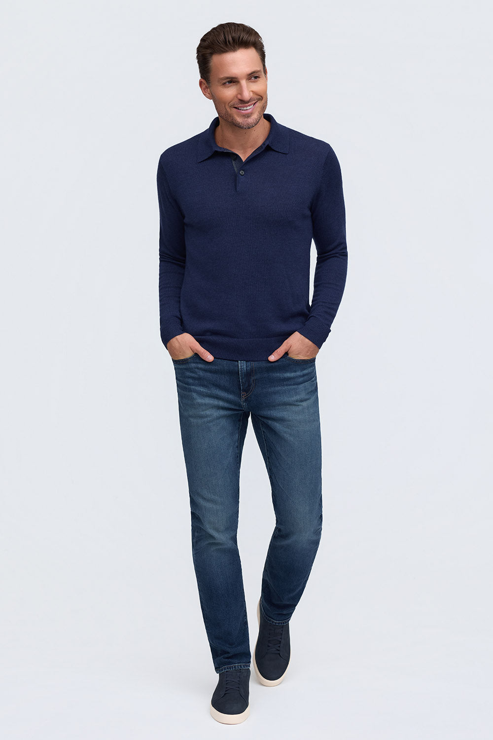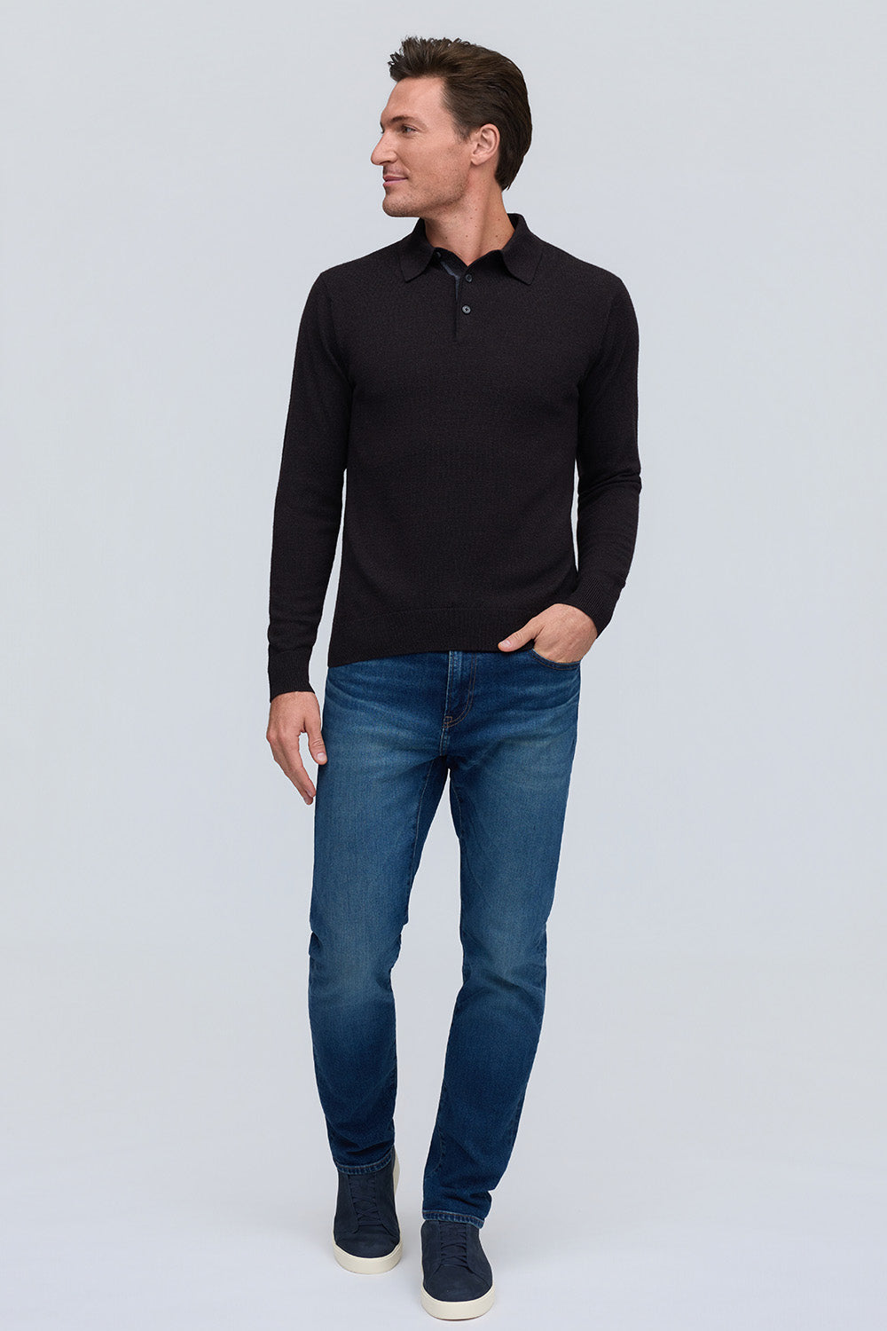 Need a versatile addition to your wardrobe? The Logan is it! This classic long-sleeved polo sweater has trim color details on the inside placket for an added touch of style. Made from luxurious 100% Extrafine Merino Wool is an essential piece and can be worn for any occasion. Dressed up or down, you will be comfortably confident in your fashion choice.